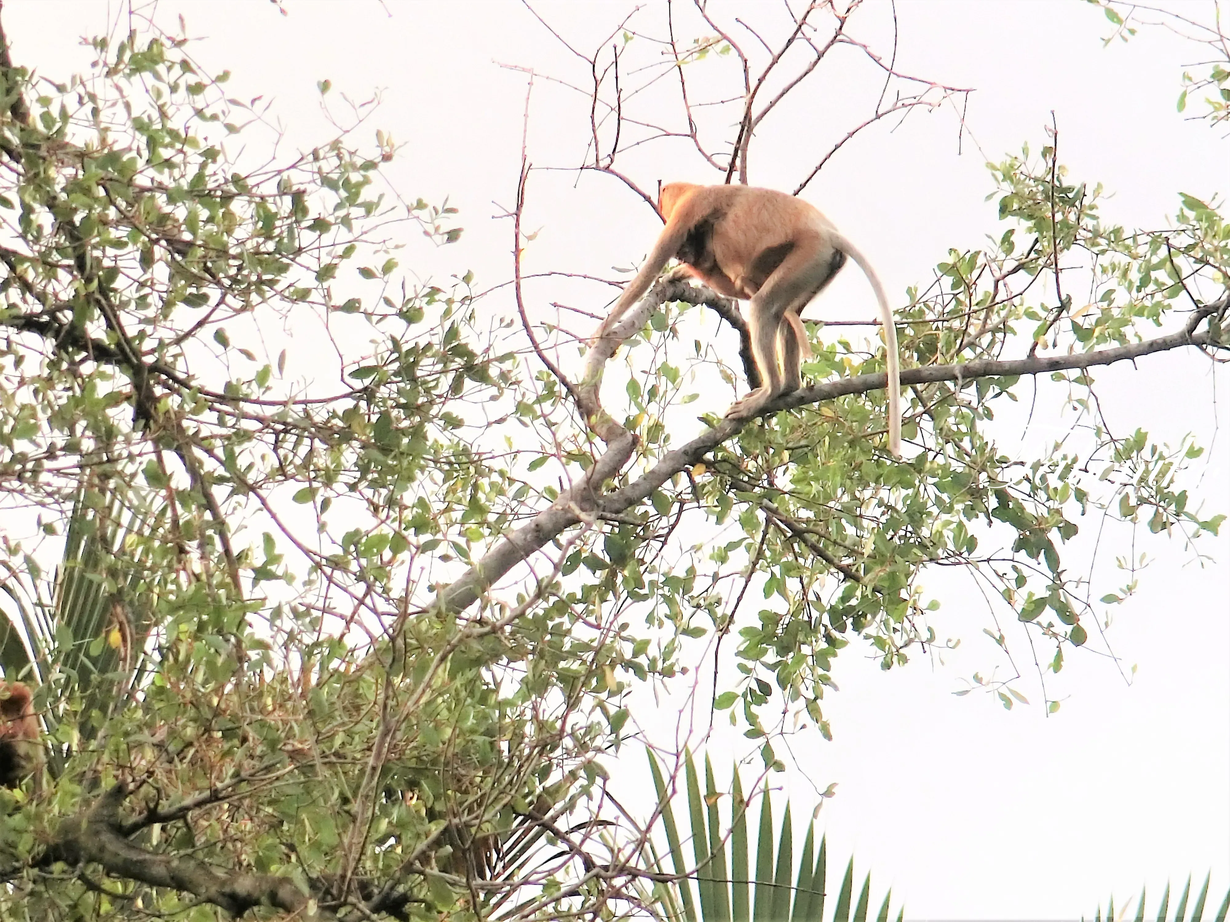 There are 7 groups proboscis monkey here but when I could only saw 1 group that day. It seems that the monkey rarely appear in the training day. Raining is the uncontrollable factors but I was deeply moved because I saw the proboscis monkey for the first time!