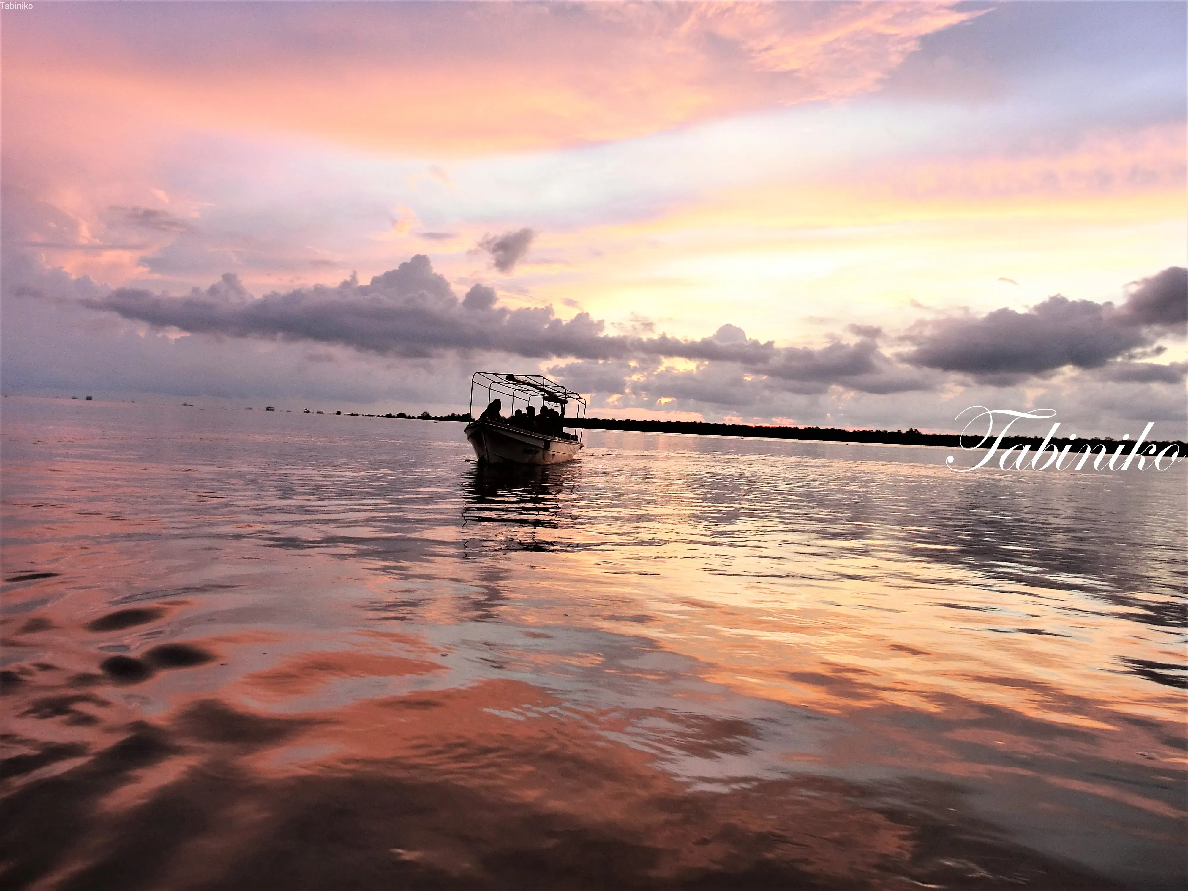 Normally after watching the monkey, will go back to the lodge and take dinner but that day we could hardly see the monkey monkeys even the staff tried hard to look for them until getting dark. Therefore, the staff decided to go for fireworks directly before we went back to lodge. We also enjoyed the sunset on the ship, then we went for fireflies. Lastly, returned to the lodge for buffet dinner. By the way, sunset of Kota Kinabalu was very beautiful and romantic ☆ 彡