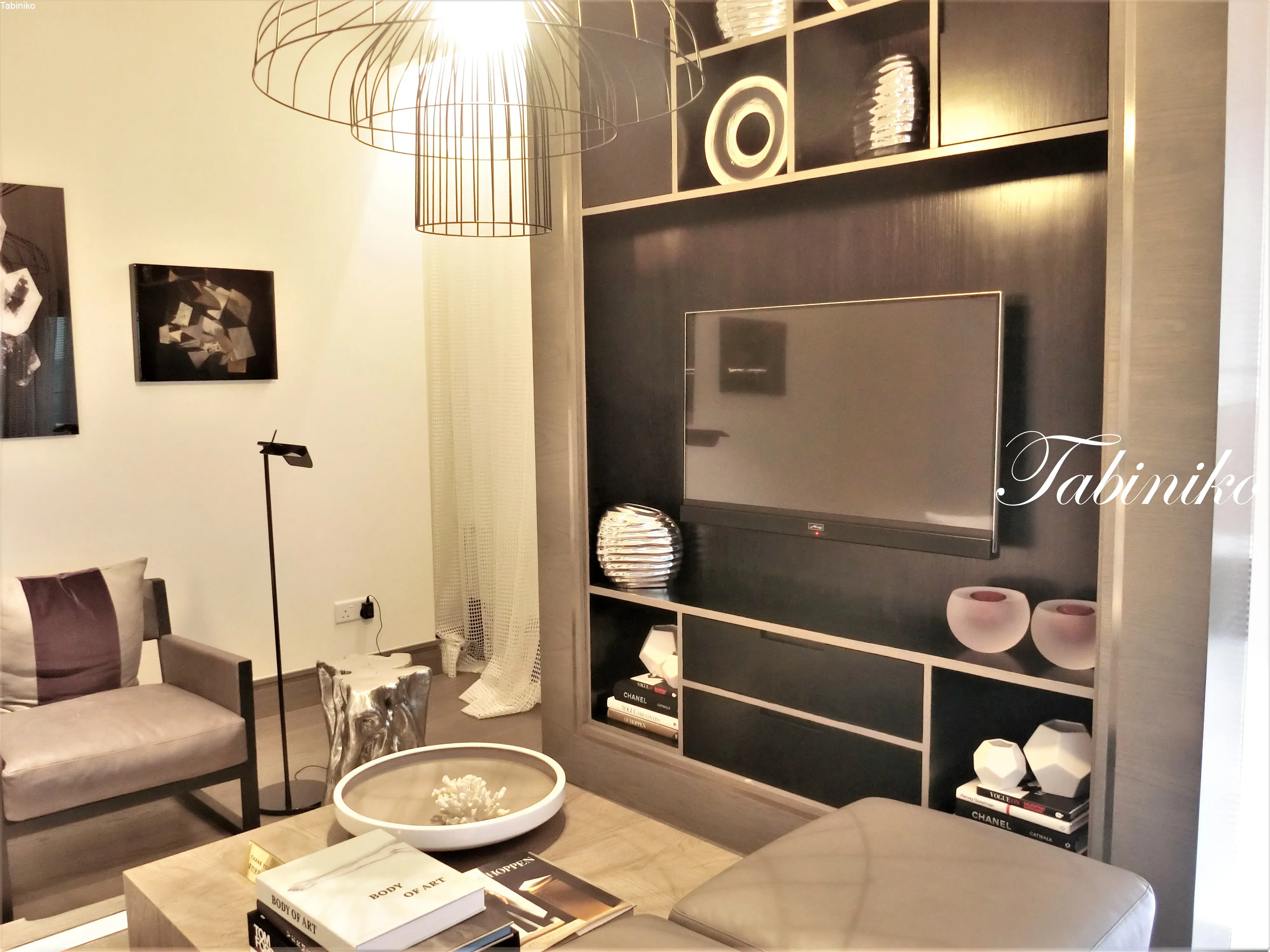 Master bedroom. A bathtub in the middle of a BIG toilet. Double sink, separate shower room and marble-like walls (please check the material on site). Relax your mind and body in the specious toilet. Please focus to the interior! As mentioned earlier, there are towers A, B and C. Tower A is designed by Steve Leung, a leading Hong Kong architect, interior and product designer, who blends modern, water and wood-inspired concepts into the interior. Tower B, on the other hand, is designed by world-renowned British interior designer Kelly Hoppen, who also has her own interior brand, Kelly Hoppen Interiors. It’s a brand I’ve heard of in Japan! The concept is spring and city.
