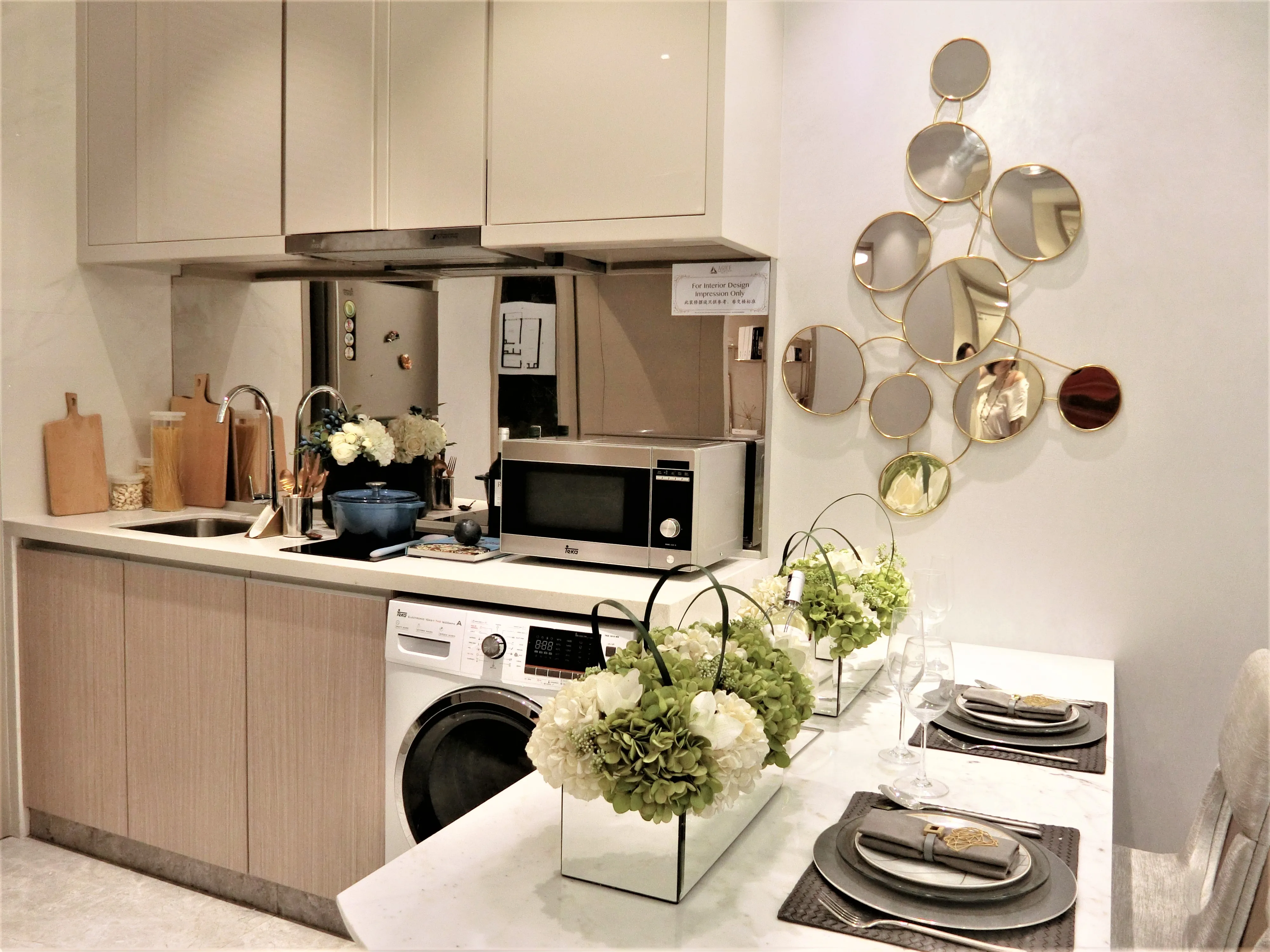 It will be sale with basic electrical appliances and furniture attached (need to be confirmed at site). Tableware, lights and some furniture are only for decorations and are not included.