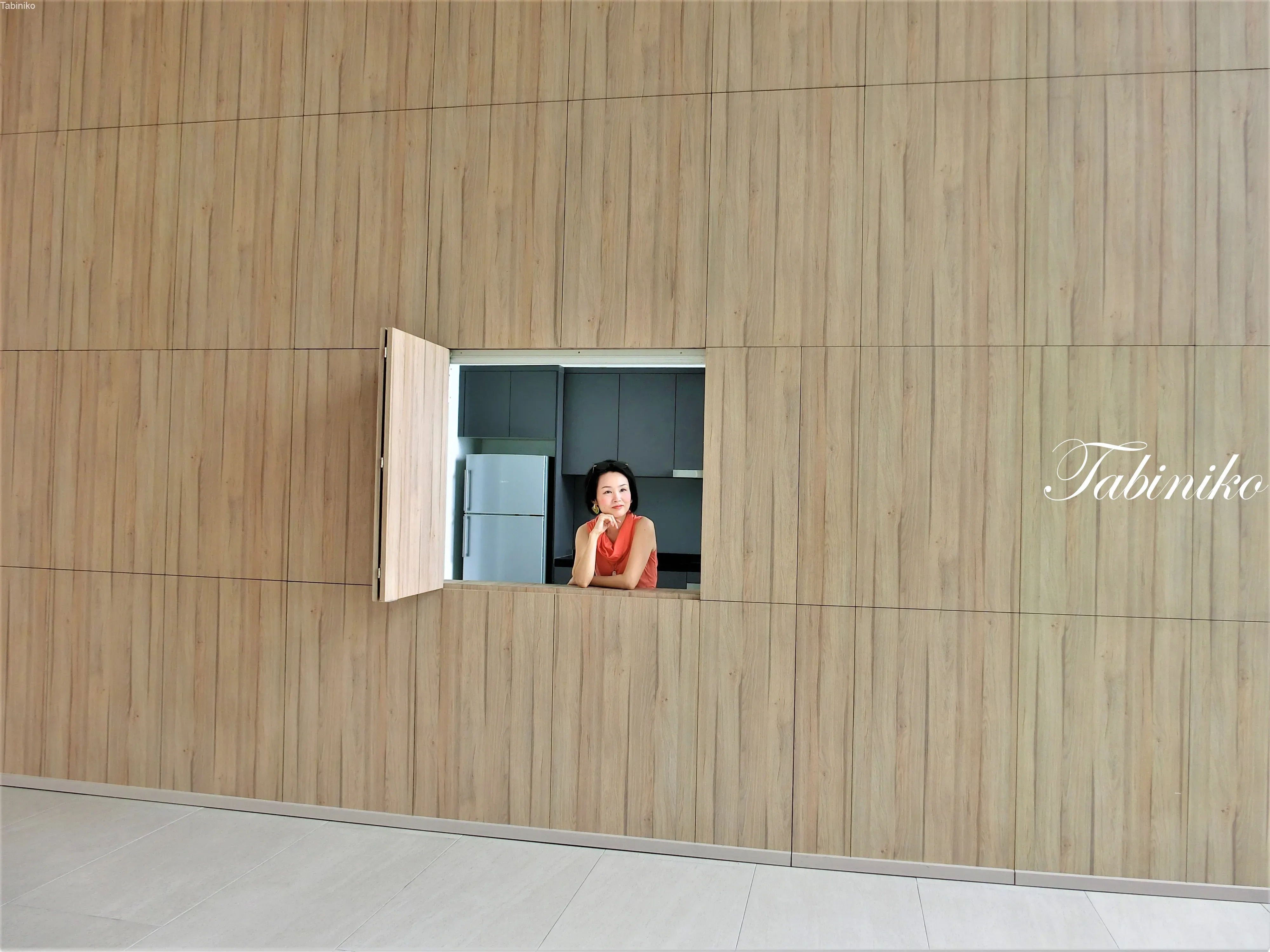 The party room at the 7th floor and the kitchen inside can be hidden like this. It’s too wide!!!