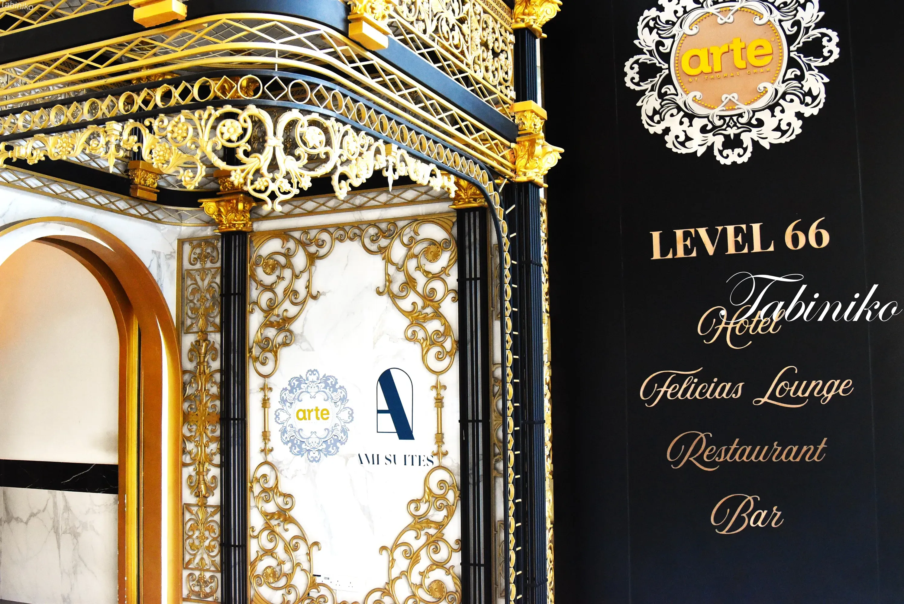 The elevator hall that goes to the hotel, lounge, restaurant, and bar is also very luxurious!
