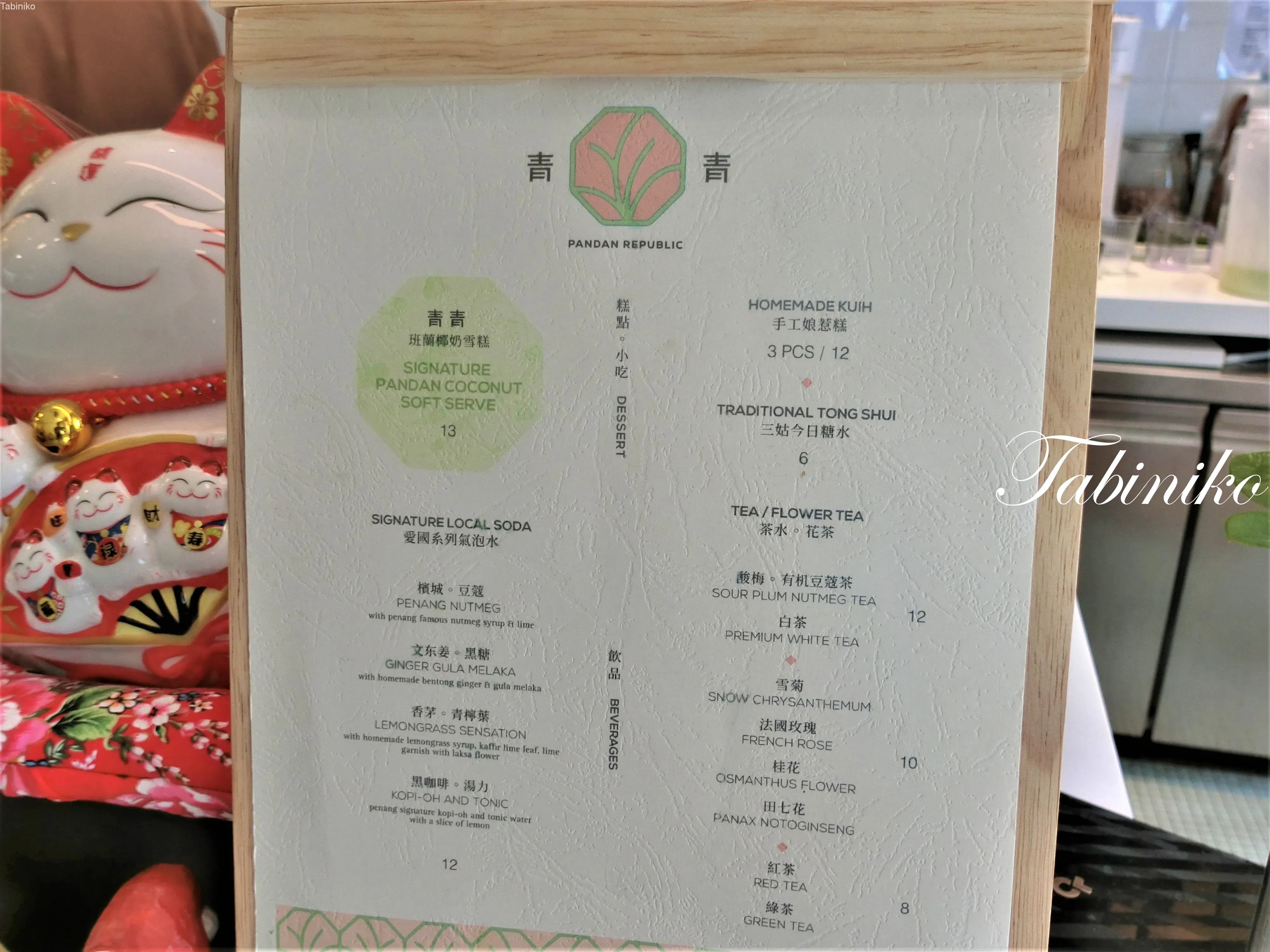 Please check the picture above the pure white color ice cream, its a coconuts + Pandan combination ice cream. Signature Pandan Coconut Soft Serve (班蘭椰奶雪糕), RM13/pcs. Wow, the supple texture from the smooth ice cream paste will make you feel super fresh. You can find the ingredients — Pandan leave everywhere in Malaysia. Like in super market. Other like Chendol and Nyonya Kuih etc. The first impression when I got in this shop, it provided me an illusion that I in one of the fancy cafe shop in Japan. This shop original was an old type traditional building shoplot type, 2 storeyed. You also can enjoy coffee at the 2nd floor. Of course, they also selling cake, some Nyonya dessert 3pcs/RM12, soda drink, traditional Tong Shui (Chinese dessert), RM6/pcs etc. Especially their Signature Local Soda (爱国系列气泡水) like 檳城豆蔻(Penang Nutmeg), 文东姜黑糖(Ginger Gula Melaka), 香茅青檸檬(Lemongrass Sensation), 黑咖啡湯力(Kopi-Oh and Tonic), all RM12/pcs.