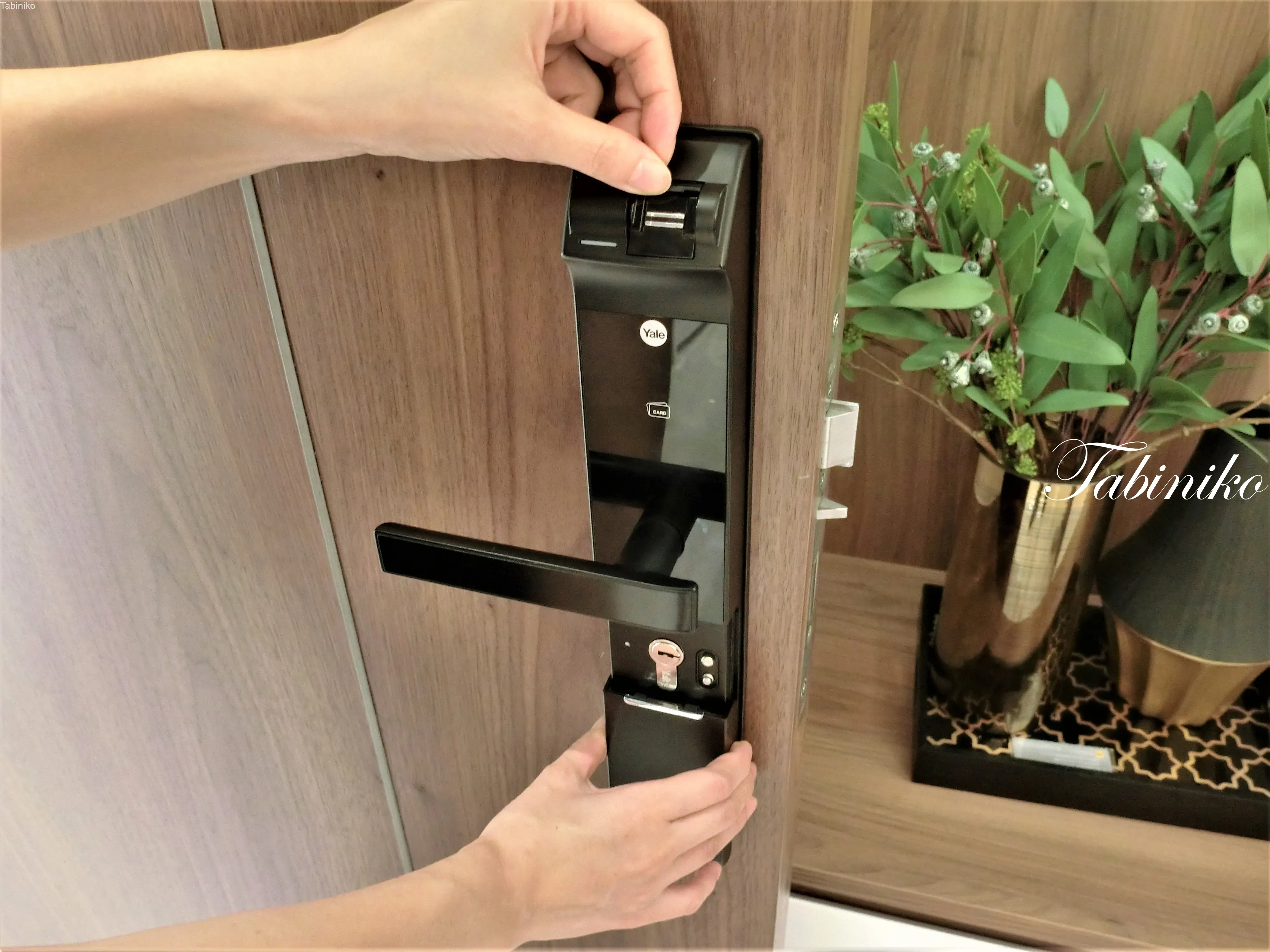 The door key can be fingerprint-authenticated in addition to the conventional plug-in type key.