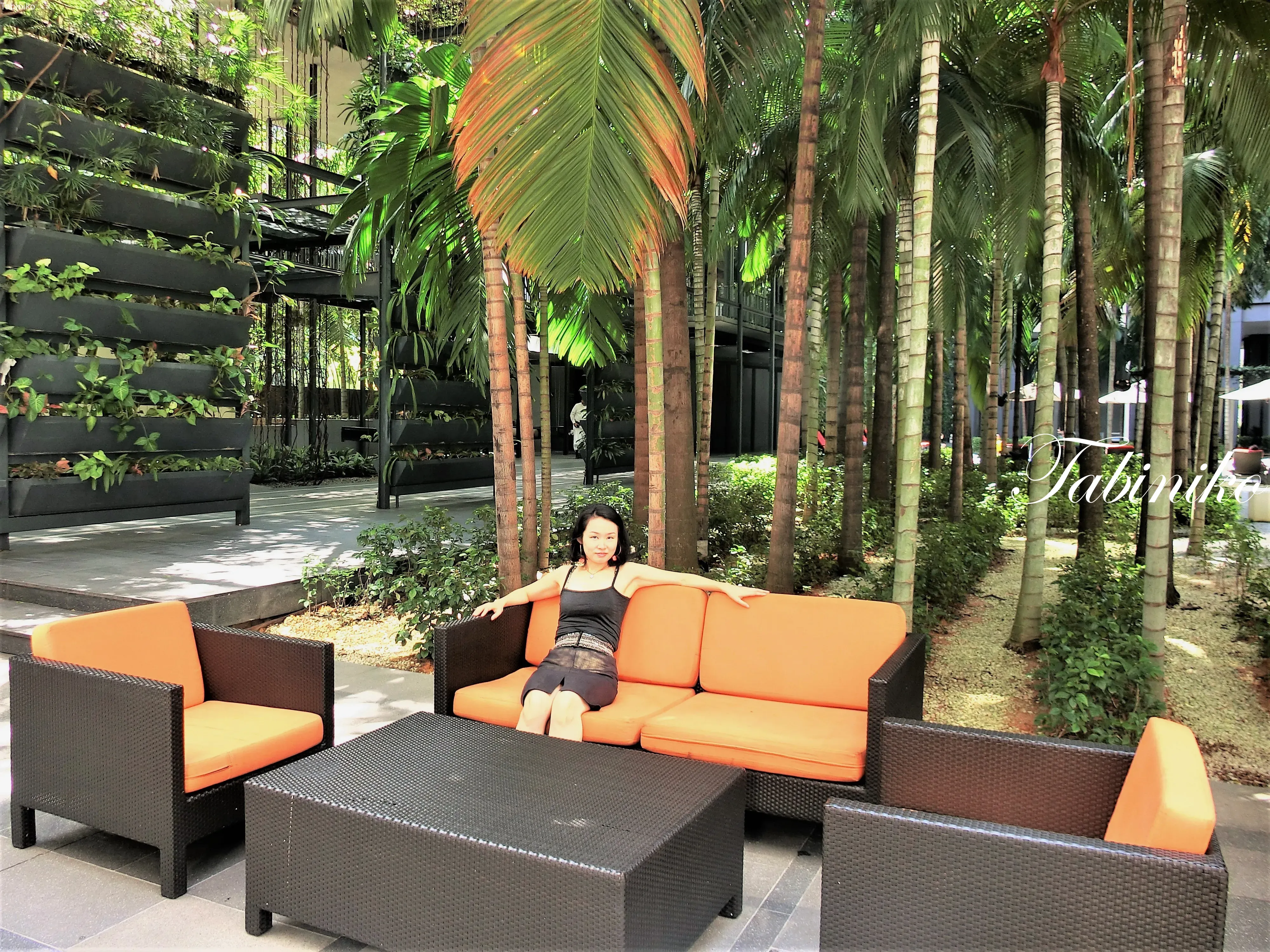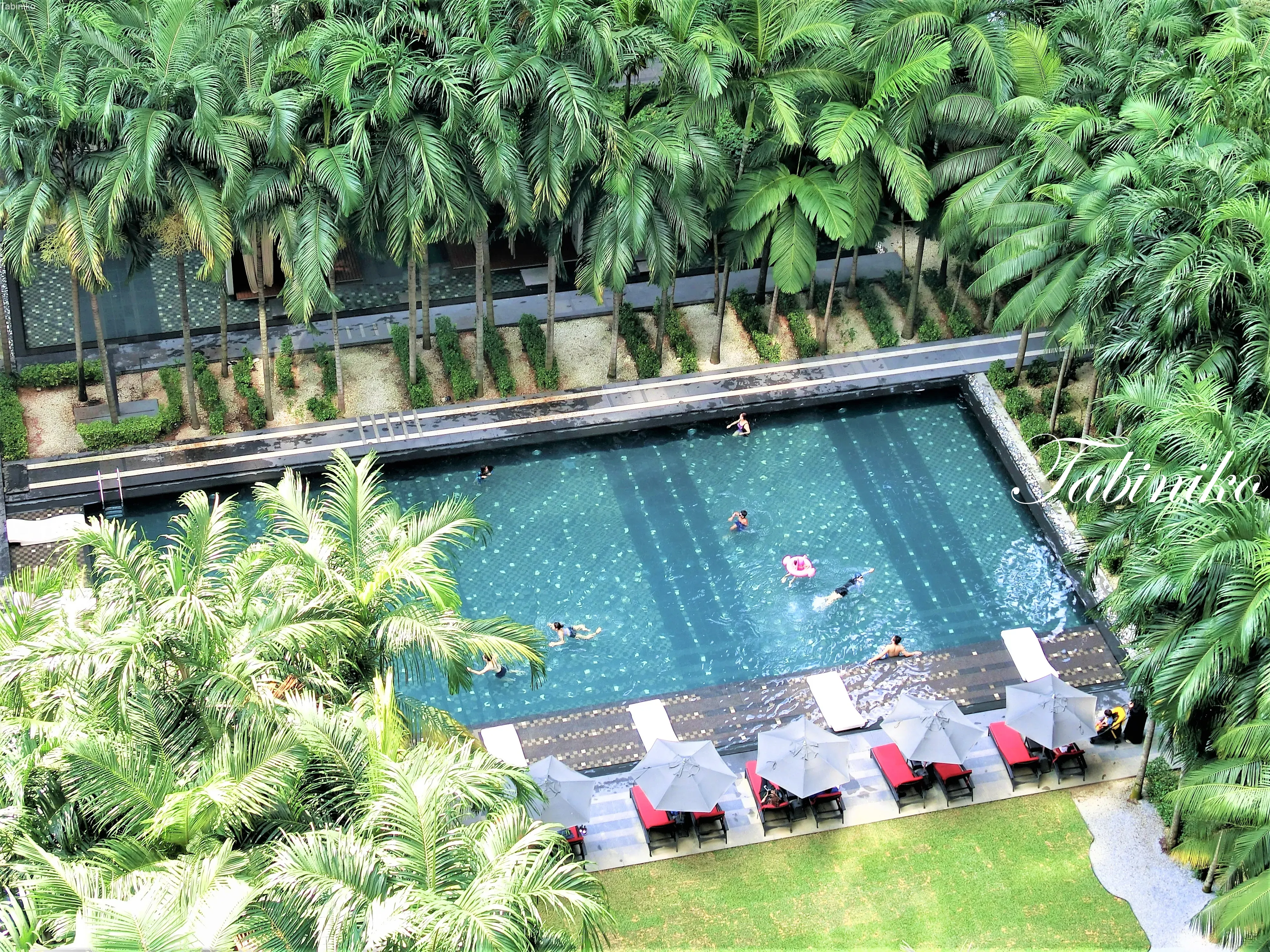 Well, the green environment inside E & O Residences is lovely beautiful and healing. I felt surprised with the lush greenery even inside here, coconut tree beside the pool and also can view the Petronas Twin tower.
