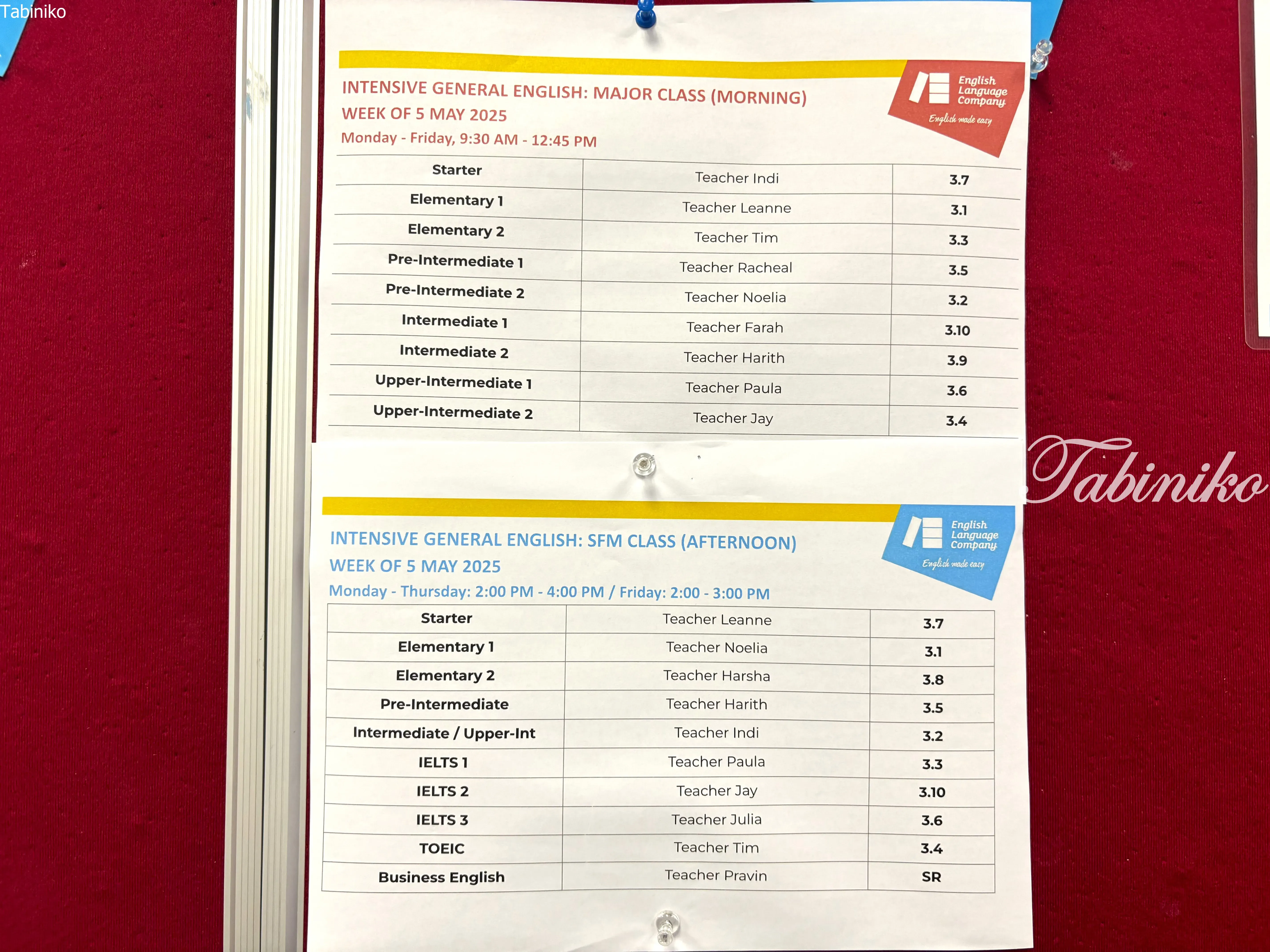 General English (3 hours) + Business English class (1 hour) + Additional English study class (1 hour)