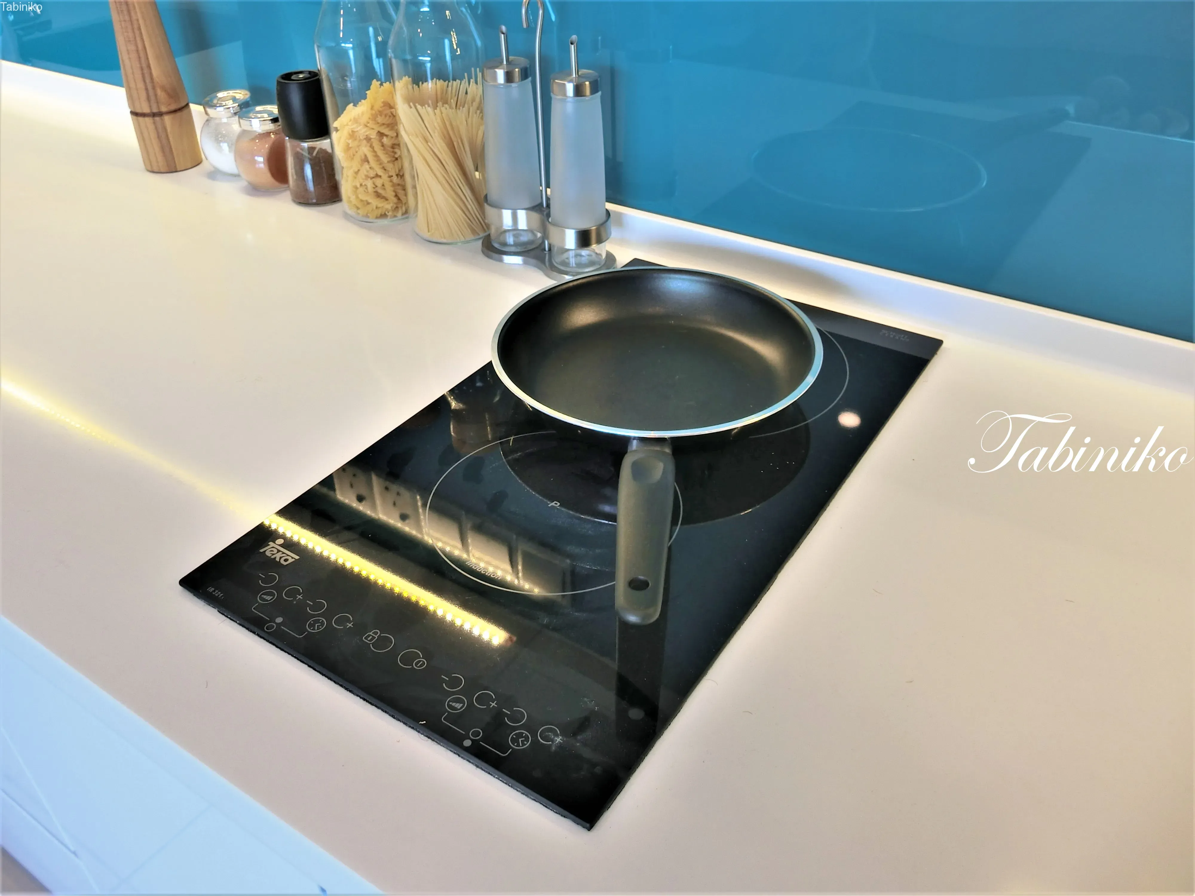 There is a counter in the kitchen.