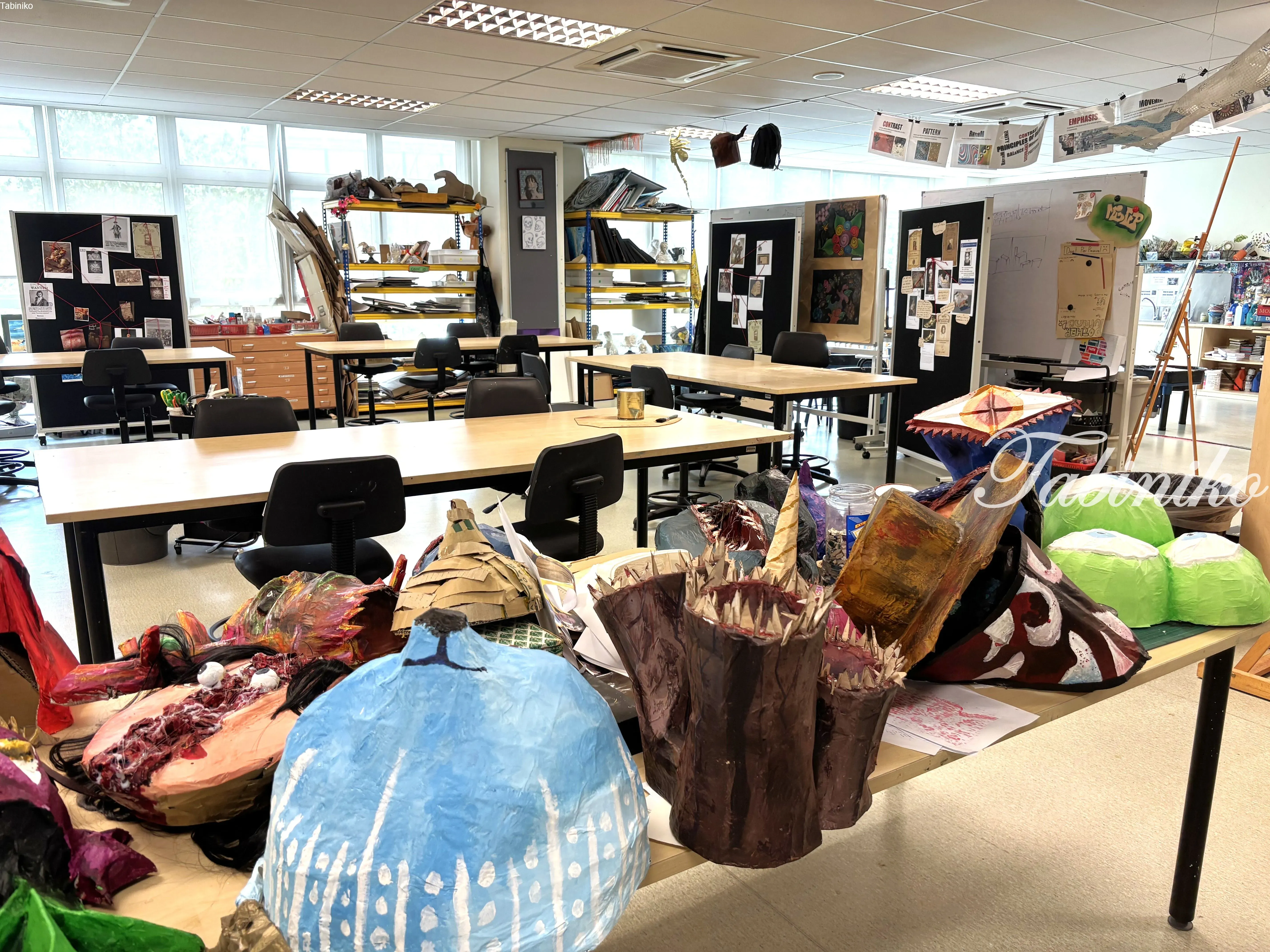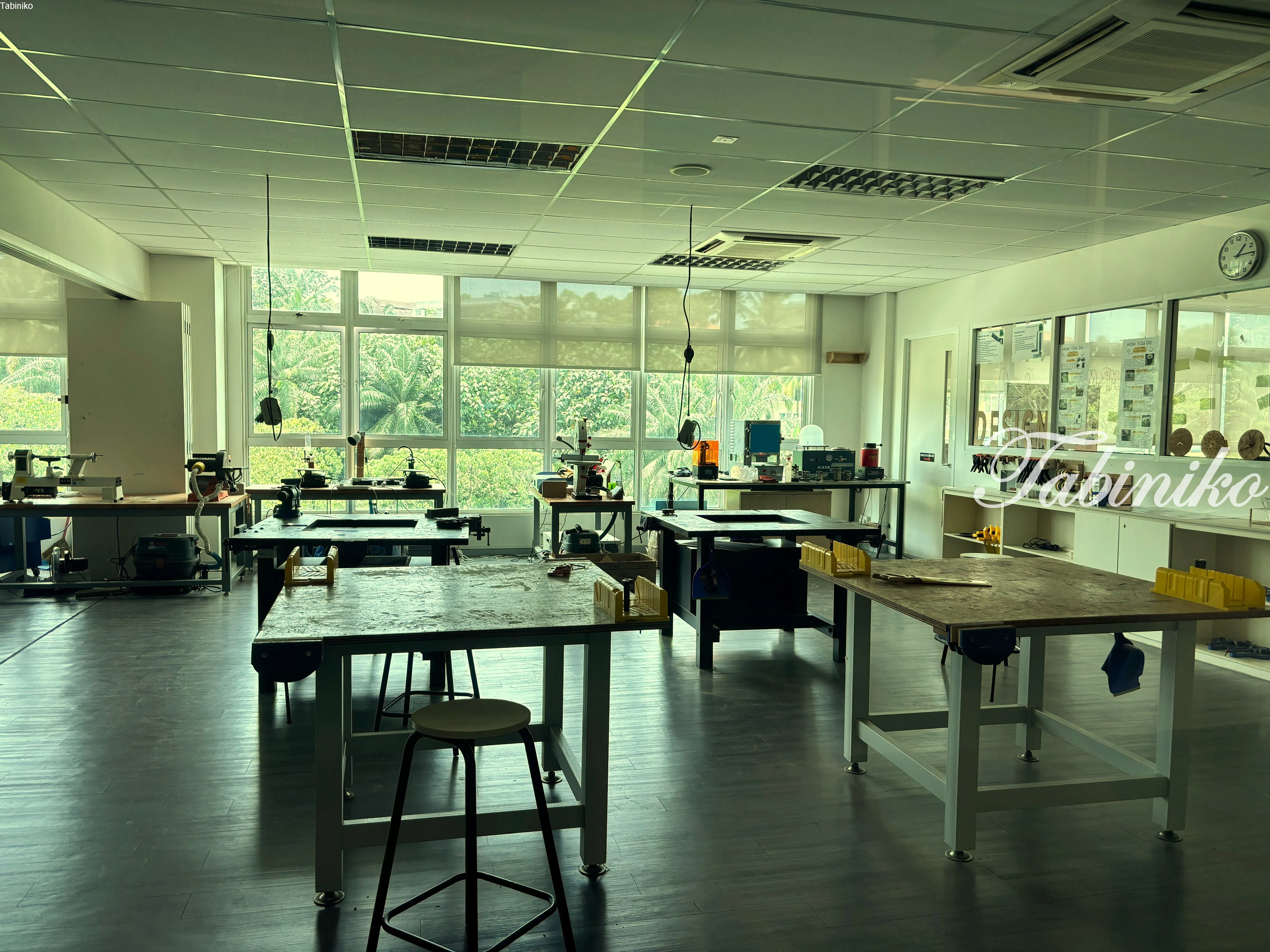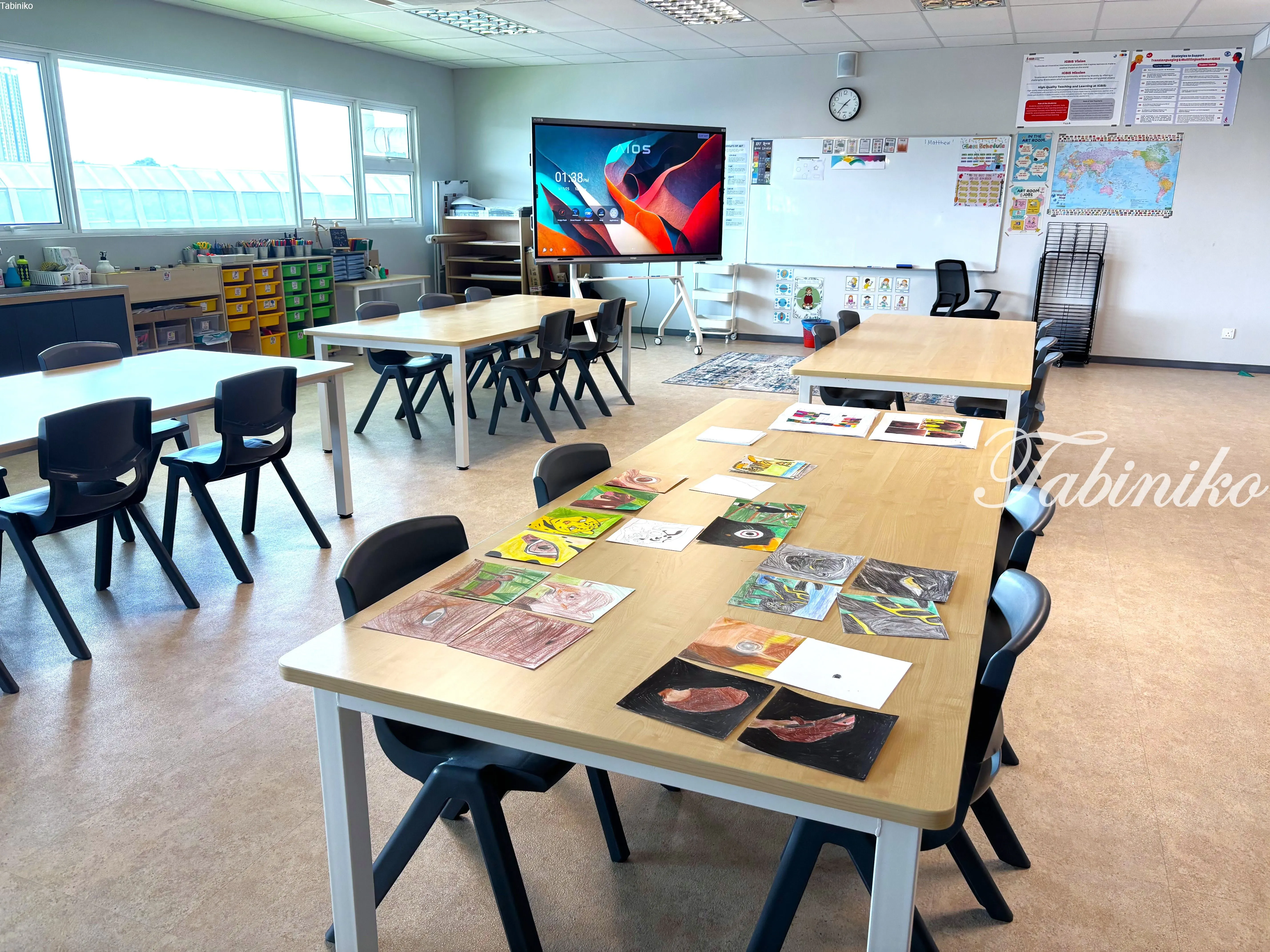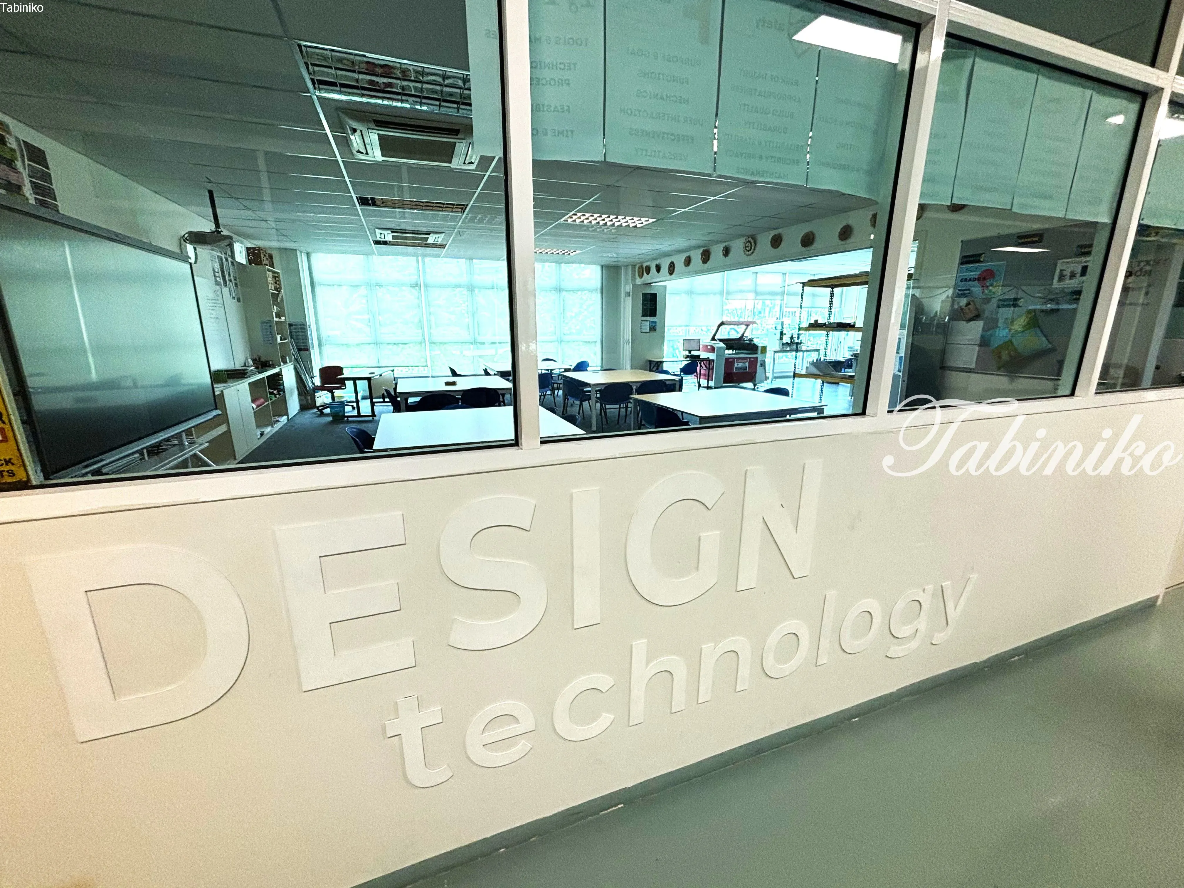 The Design Technology classroom is equipped with a variety of tools, and impressive student projects are on display. Students can create all kinds of things, from car designs to wooden games, making it look like a lot of fun! (^▽^)