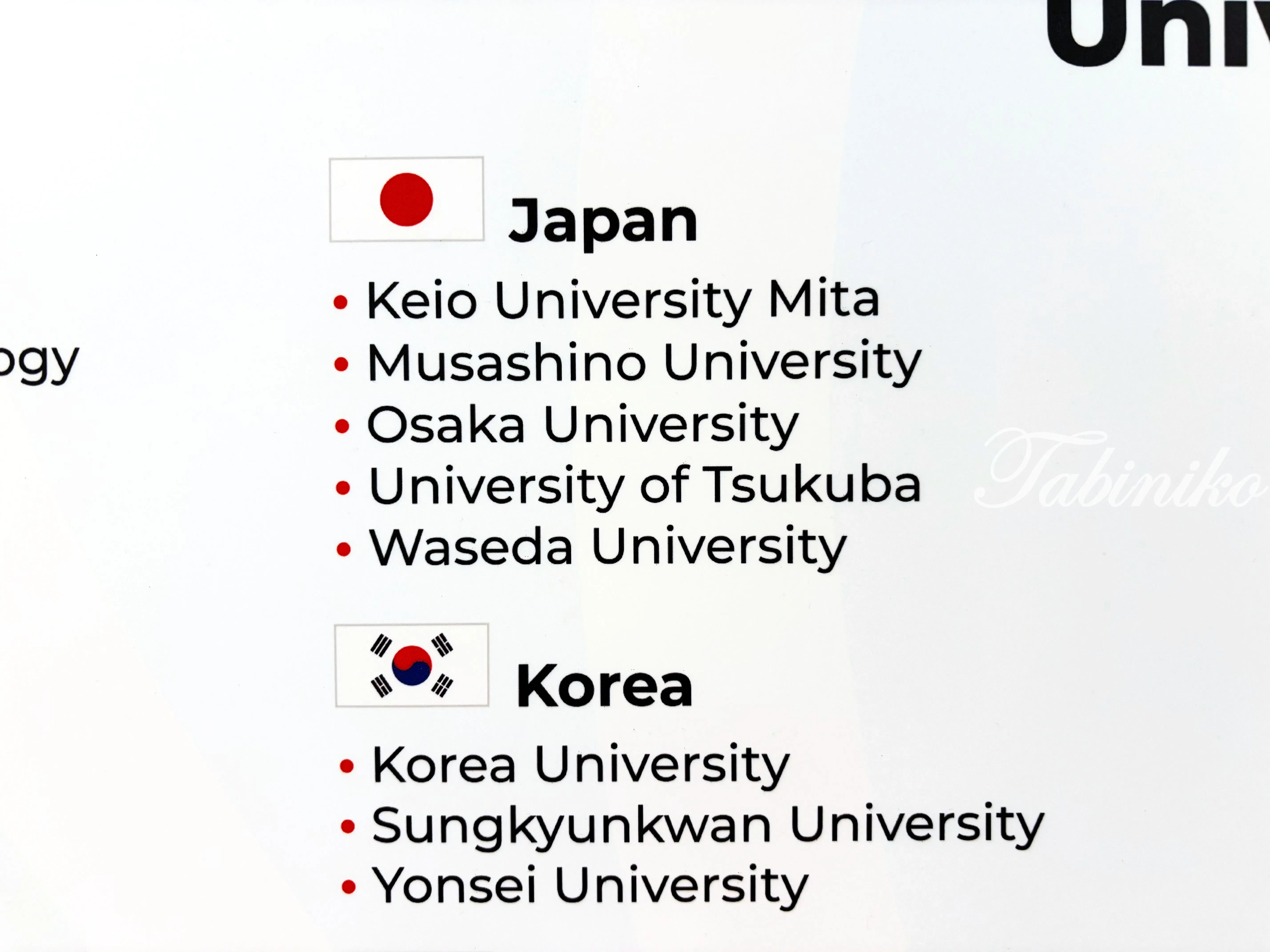 Japan: Keio University, Musashino University, Osaka University, Tsukuba University, Waseda UniversitySouth Korea: Korea University, Sungkyunkwan University, Yonsei University