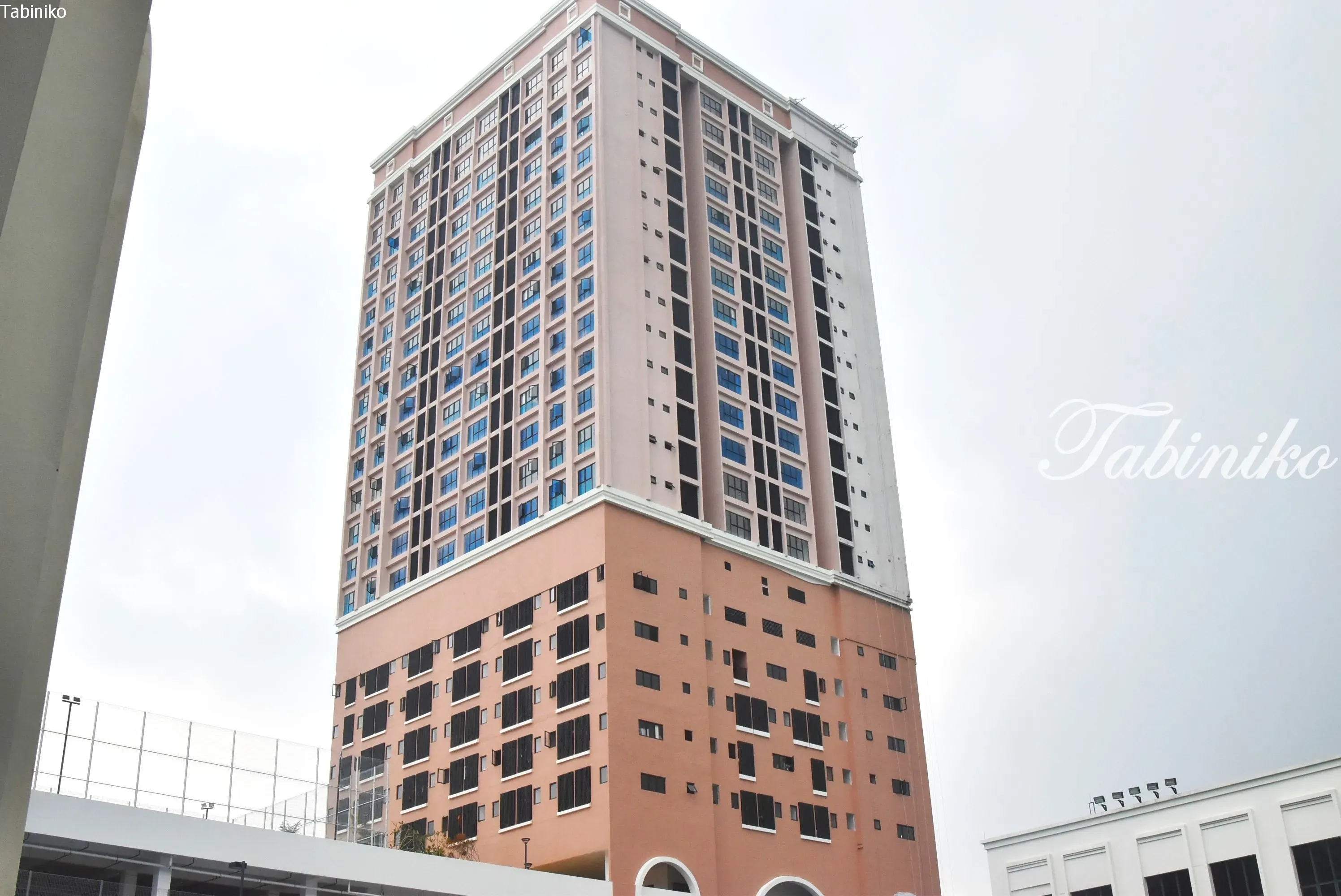 We were not able to tour the student dormitories. Although they are not shown in the photos, there are also apartments and shop lots on the same premises.