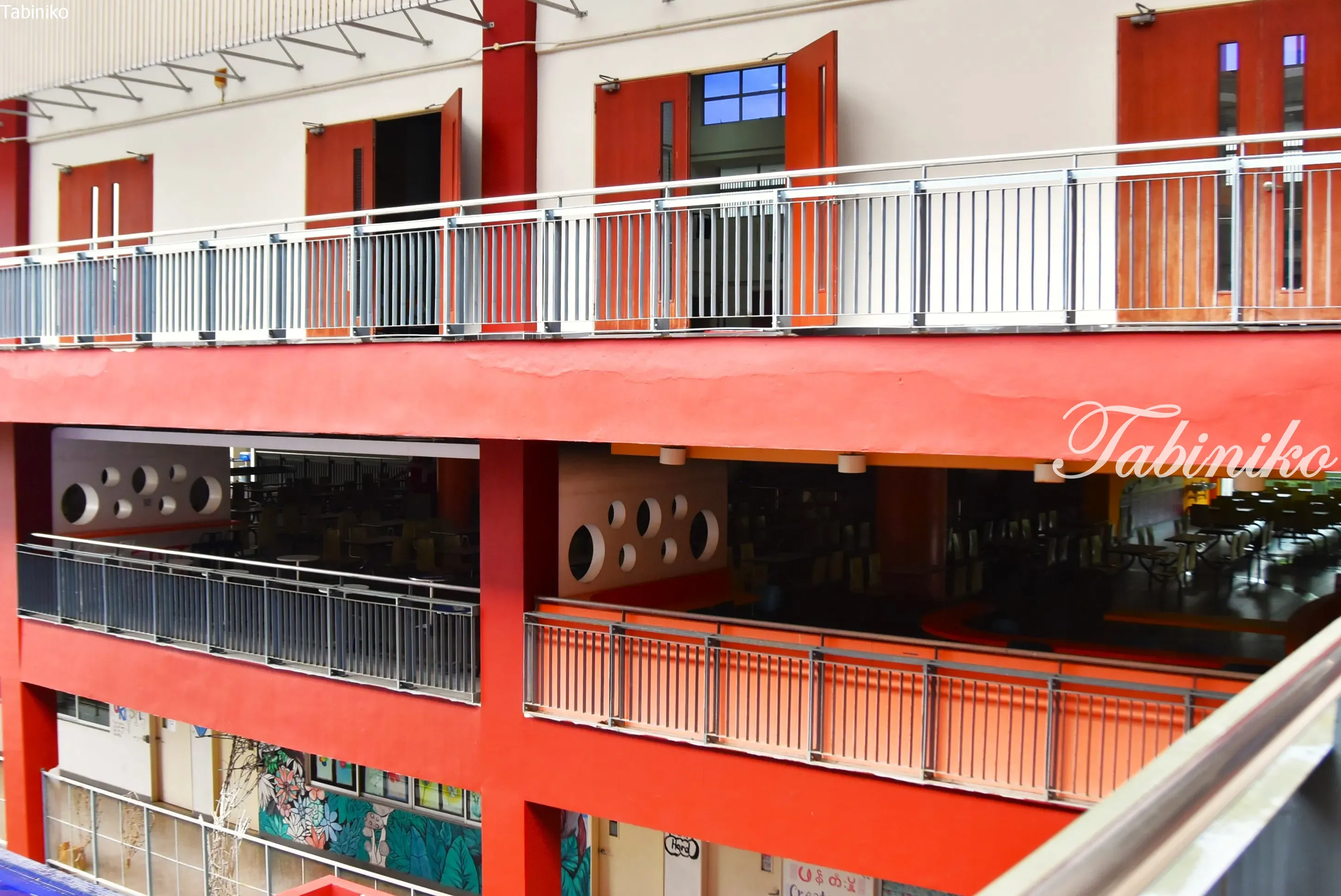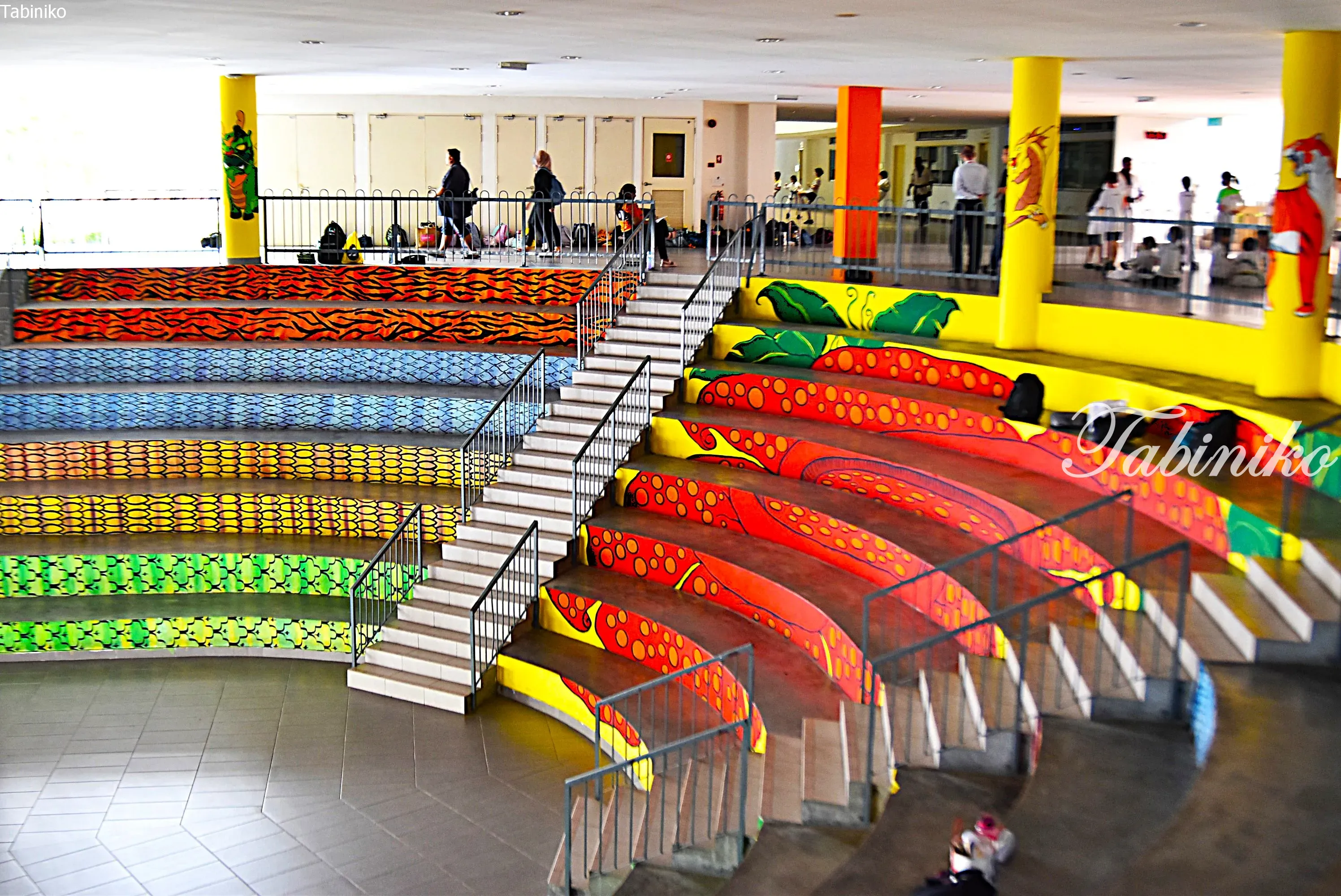 The hall at the far end of the entrance is also fully glass-walled, making it very bright. The hall displayed many student artworks.
