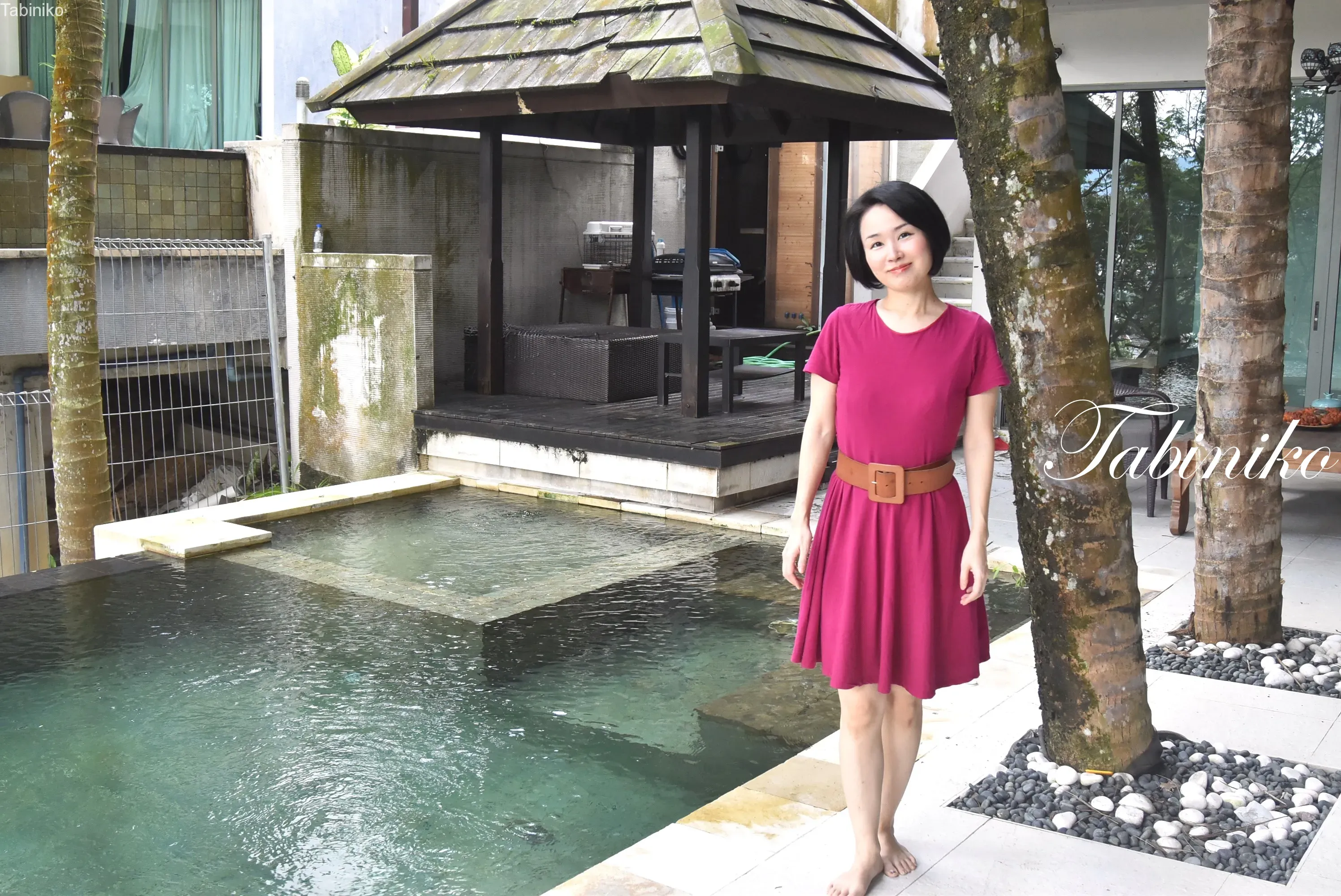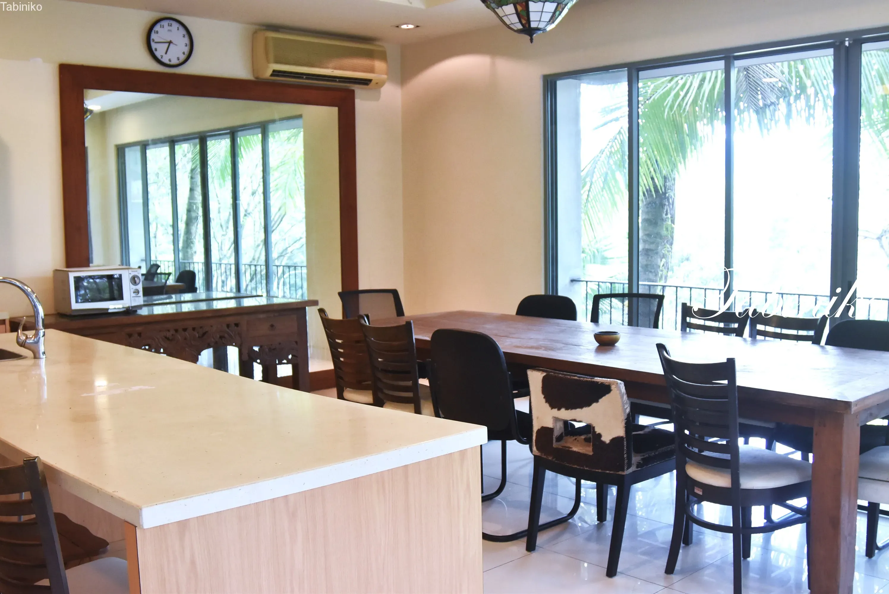 Well then! ! ! The sweep window next to the dining kitchen leads to the pool. Next to me is a palm tree. The back is a barbecue area. It’s a tropical resort house (^▽^)