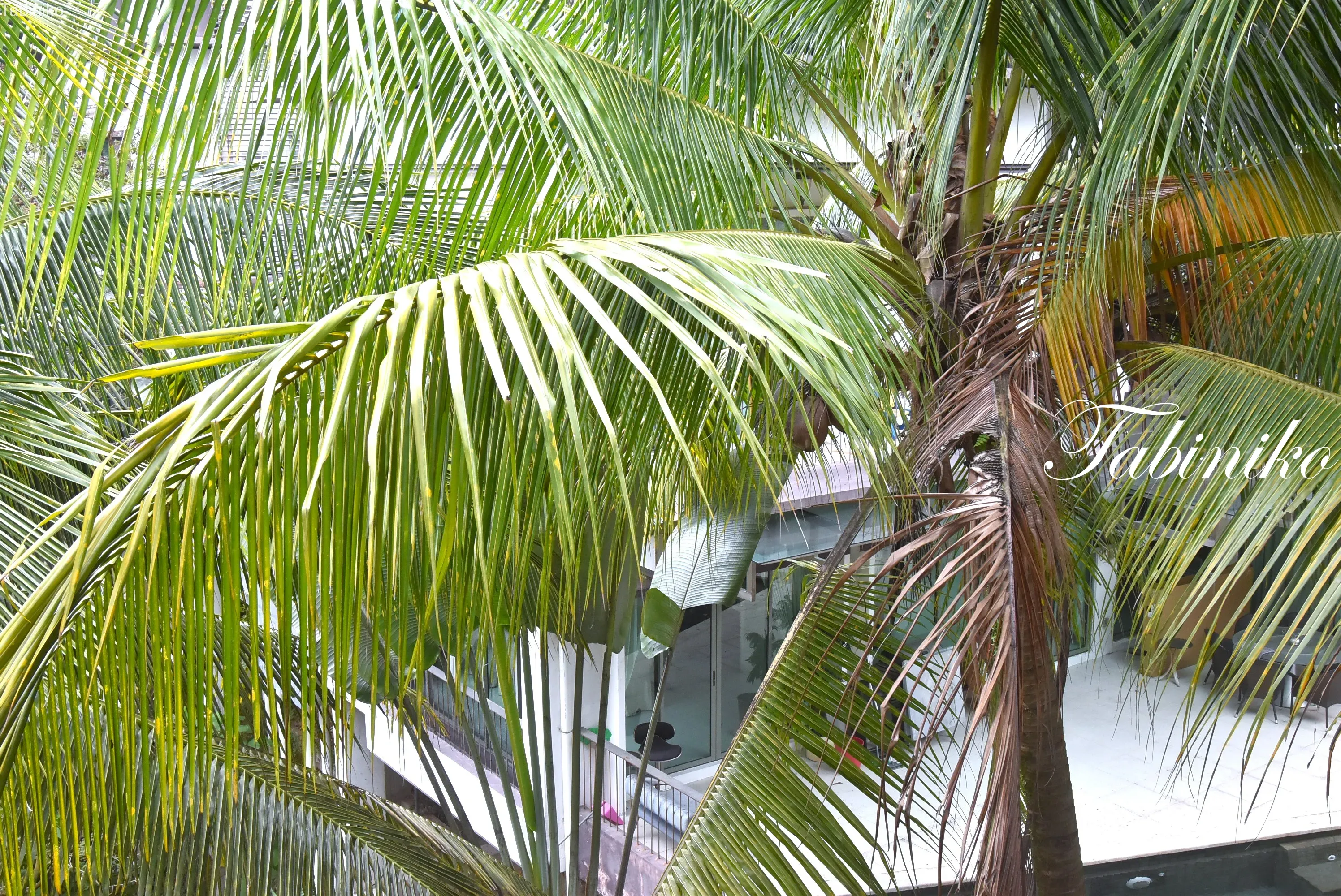 It is very bright because it has a king size bed and two walls with windows. There is a veranda on the right window, and the front of both windows is healed by palm trees. It feels good to always be able to see the blue sky and the greenery of tropical plants from your own window! ! !