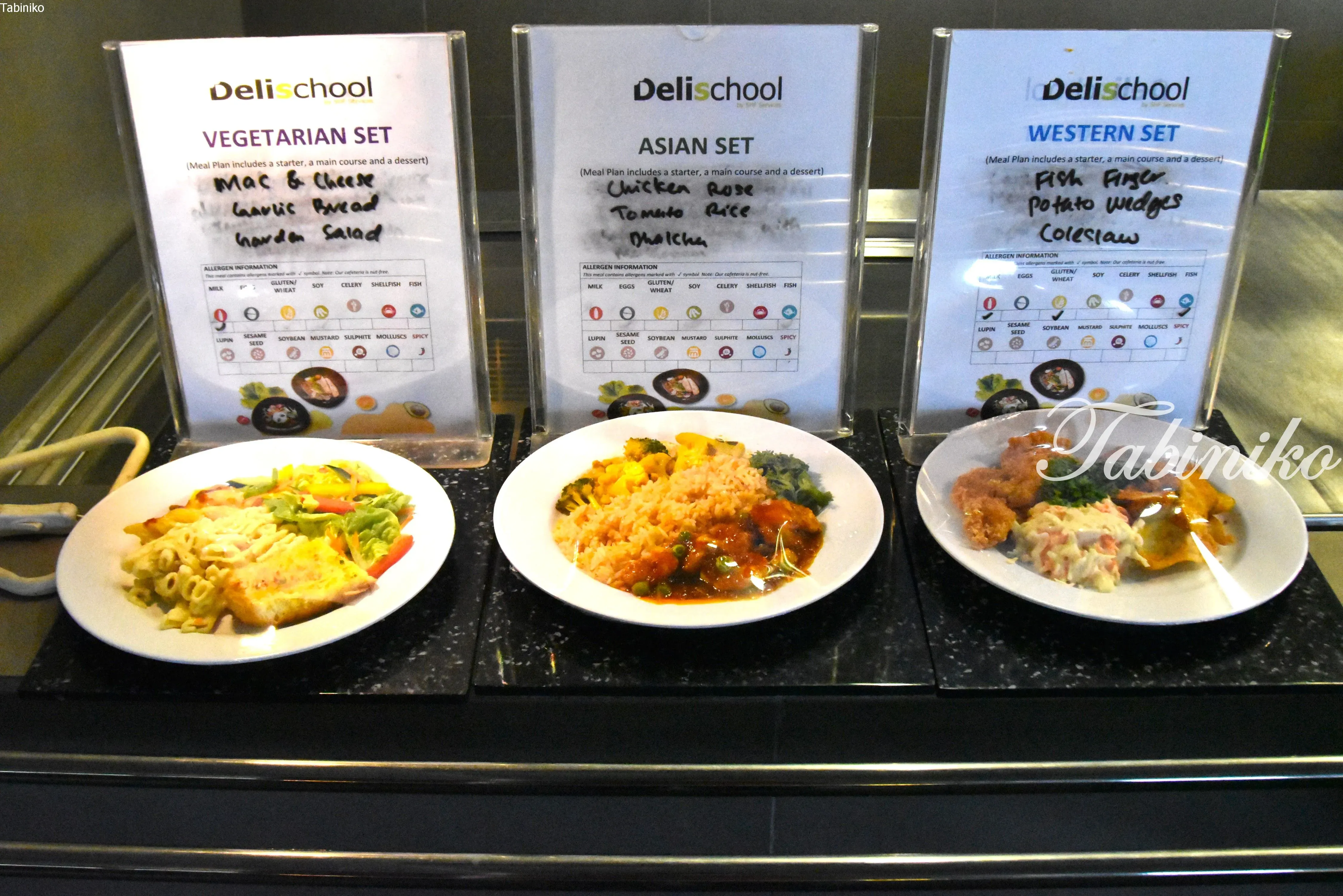 For lunch, students can choose from three options: a Vegetarian Set, an Asian Set, or a Western Set.