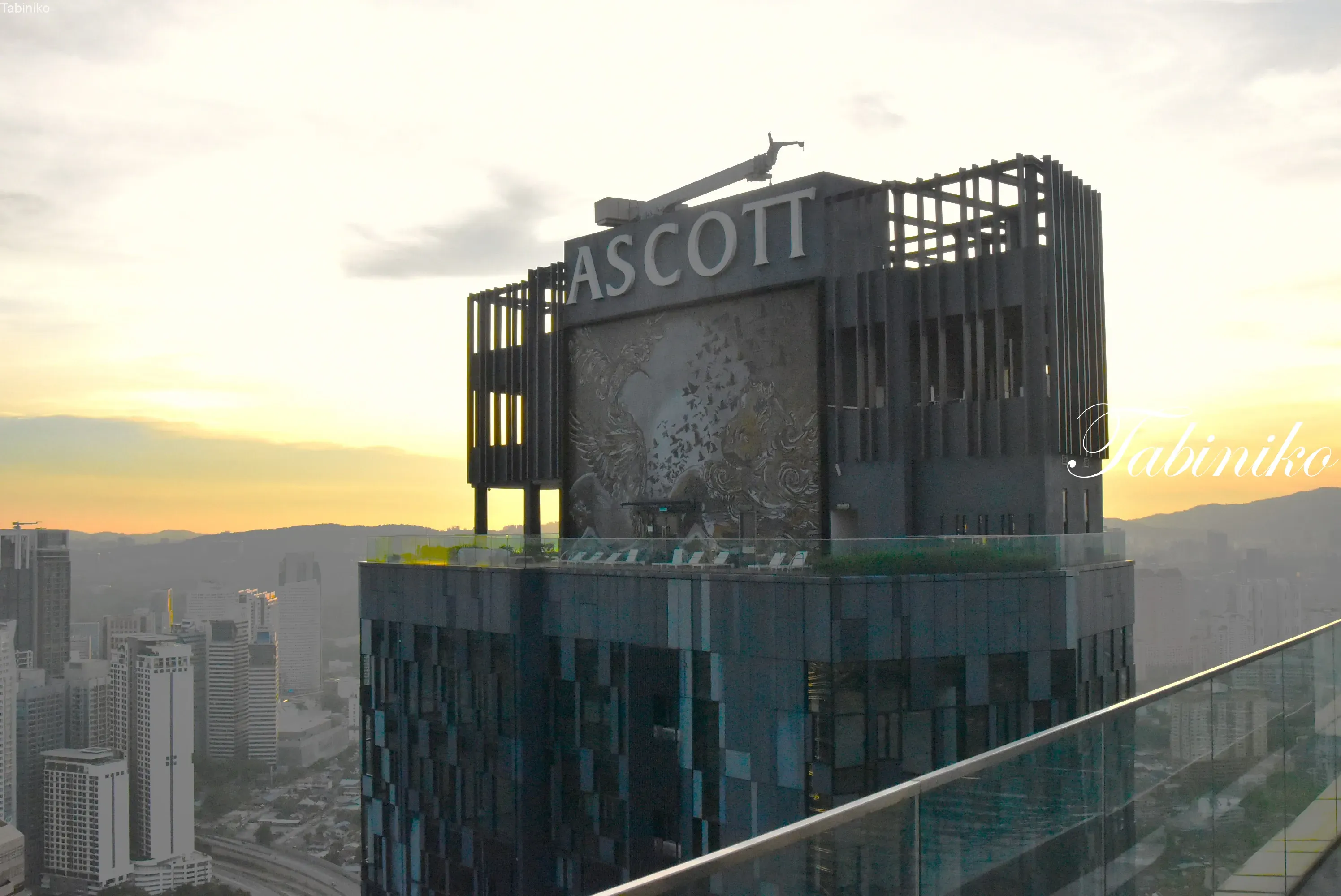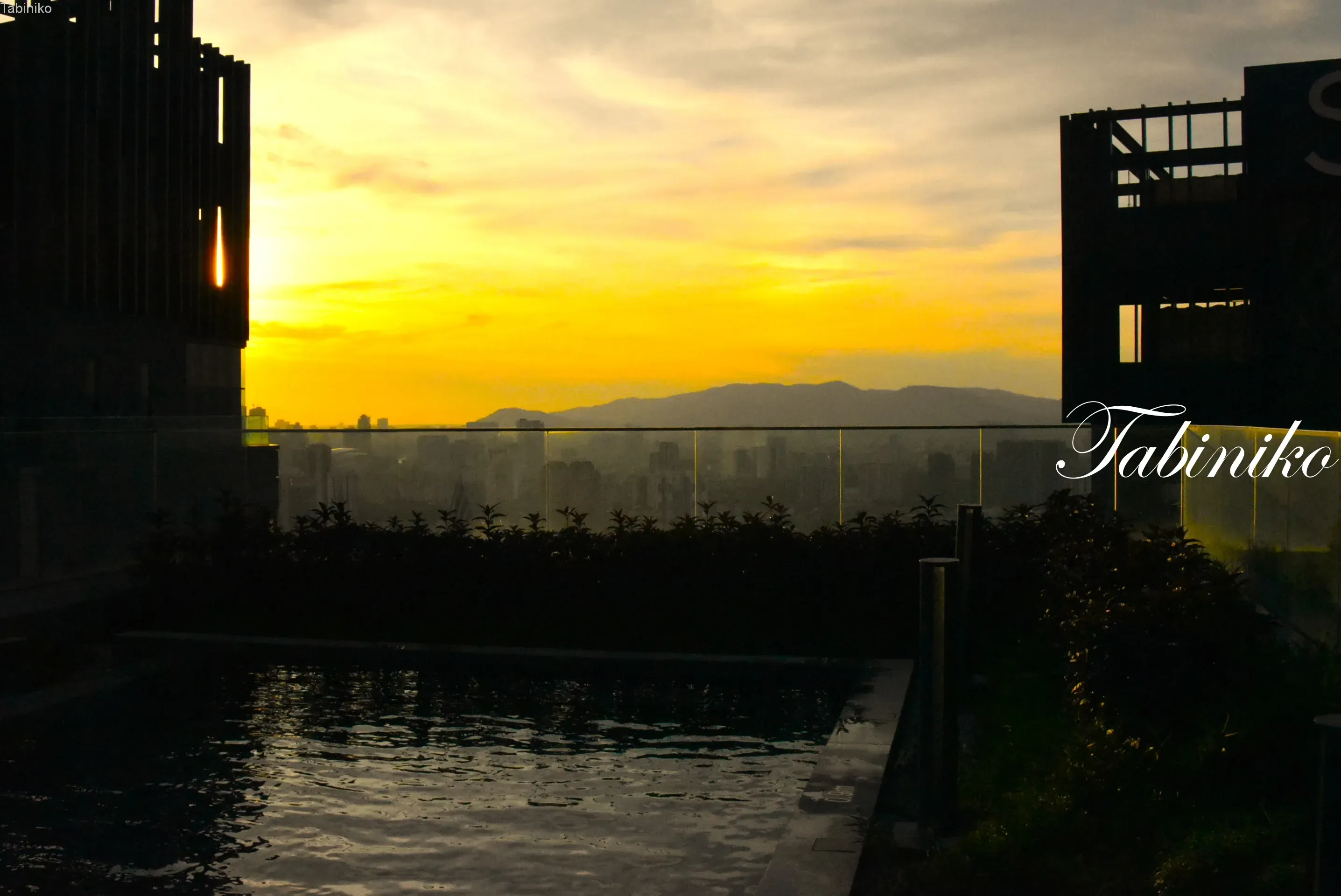 The sunset is a little hidden, but the city of KL at sunset is also very nice. Is the mountain in the background the Genting Highlands? ?