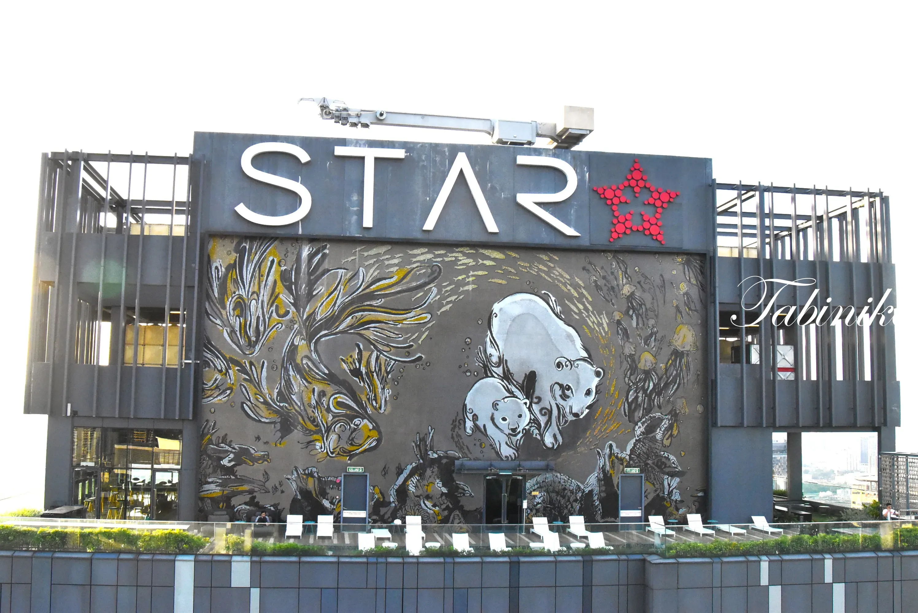 In front of the entrance of Star Residence 2. Star motifs are incorporated in various places.