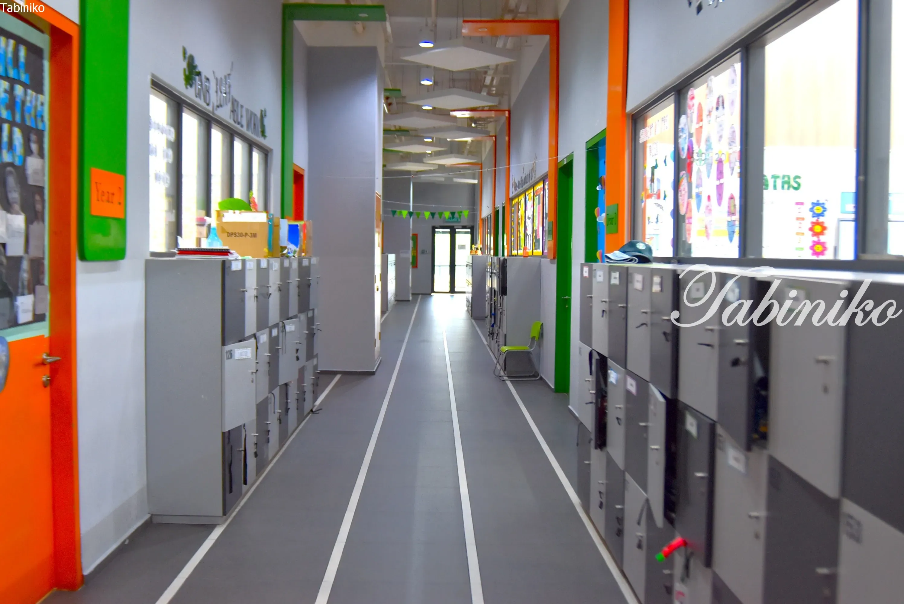 I thought the hallway was very interesting! It’s colorful, and it looks like an athletics track.