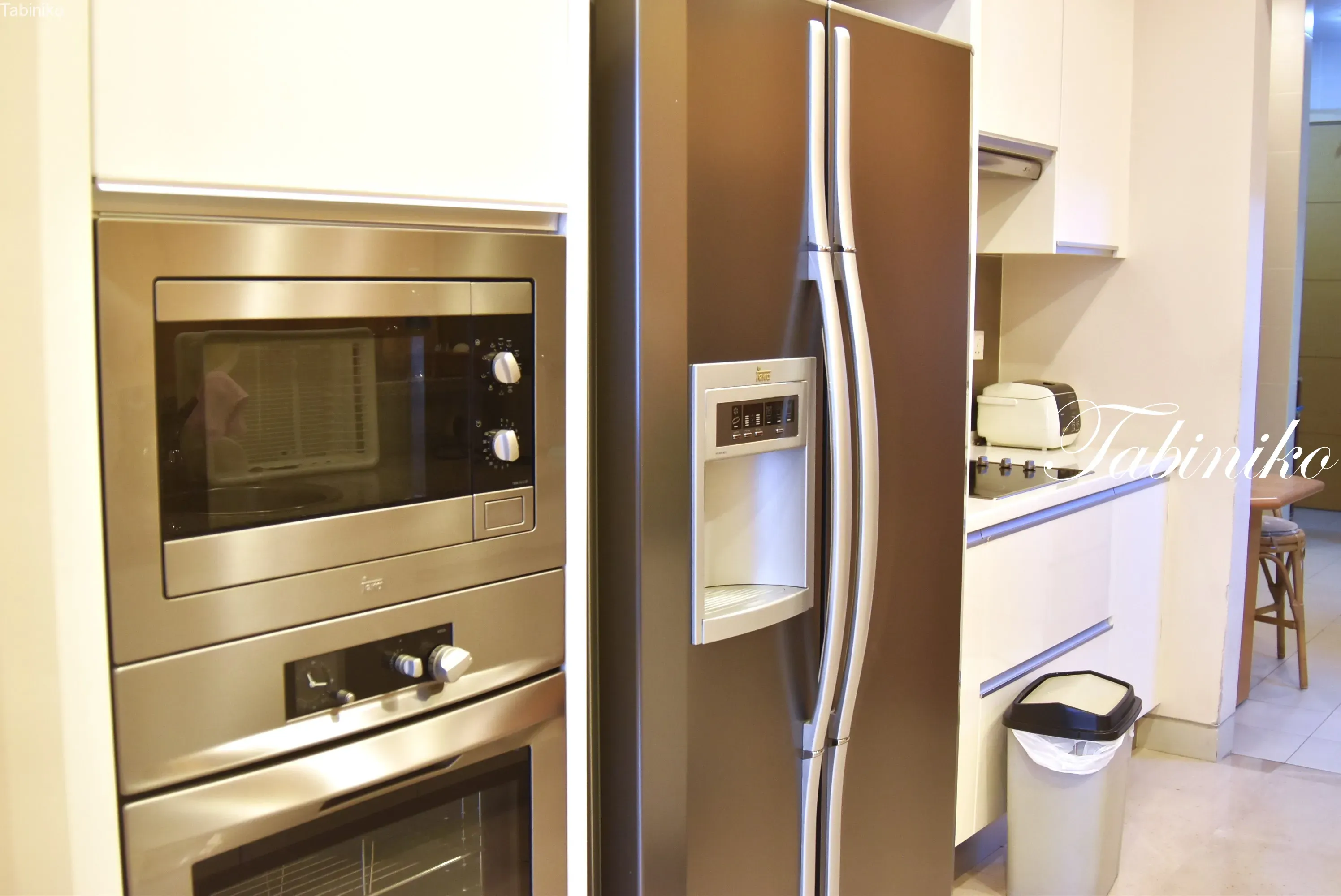 This is a wet kitchen. There is also an oven here. There is also space for a large refrigerator.