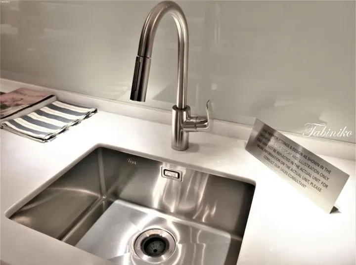 The kitchen has a cabinet + sink + oven + microwave + refrigerator. In addition, it comes with a disposer! You can handle kitchen waste smartly. There is a lot of storage in the cabinet, which is a helpful point for housewives. It’s better to check locally which one is included in! In Malaysia, when buying a new property, if there any doubt, please ask locally.