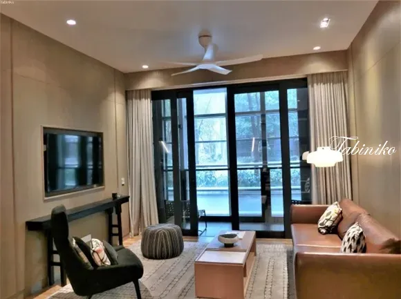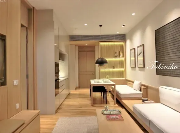 The size is 124 ㎡ / 1335 sqft, so it is wide. The largest room in The Conlay. Although not shown in the photo, there is a small entrance space when you enter the entrance door. When you enter, you will see the kitchen first, and there is also a counter kitchen!