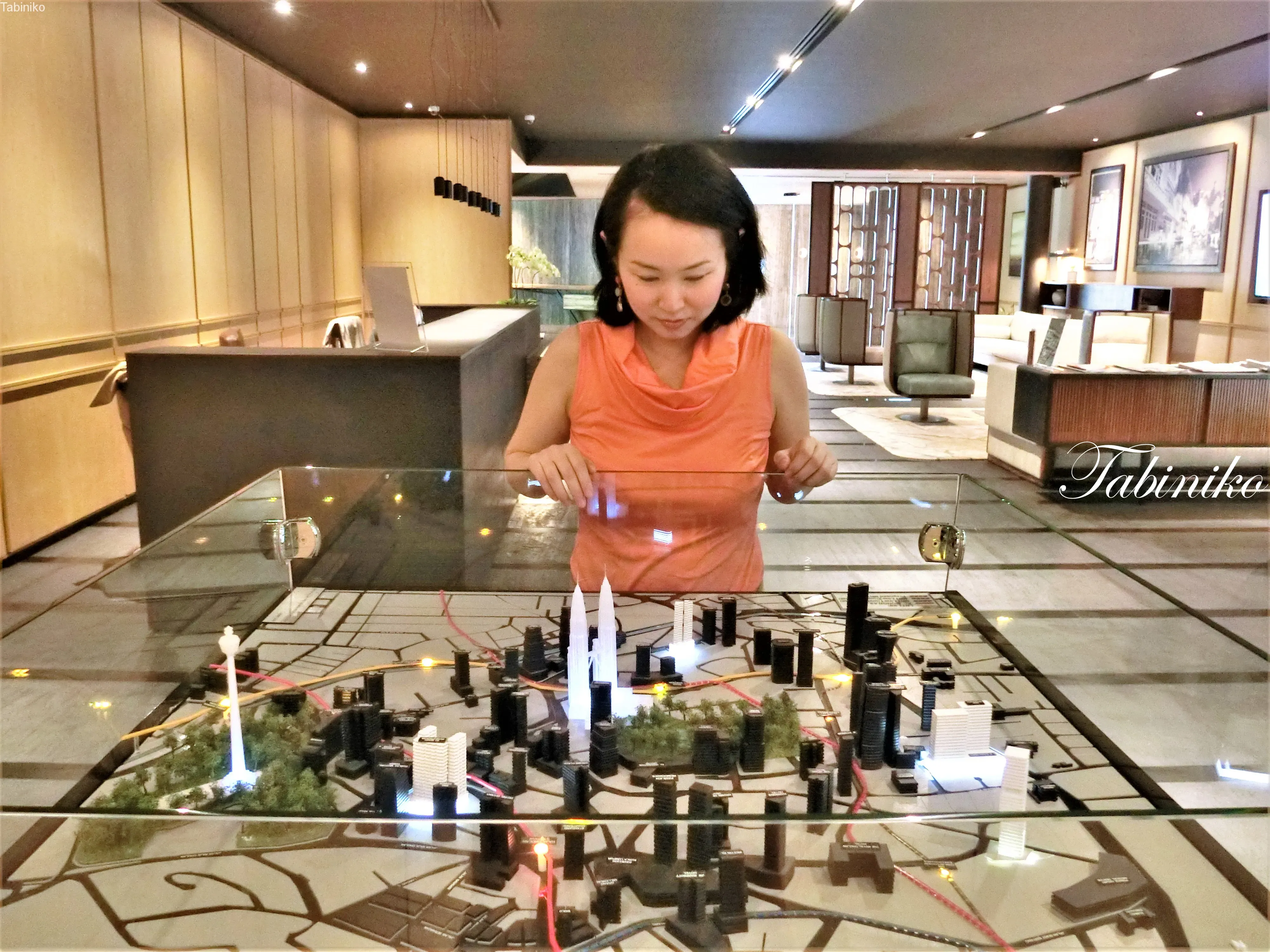 By observing the surrounding area on the model, you can see that the property is close to the Petronas Twin Towers, KL Tower, and the bustling Bukit Bintang district.