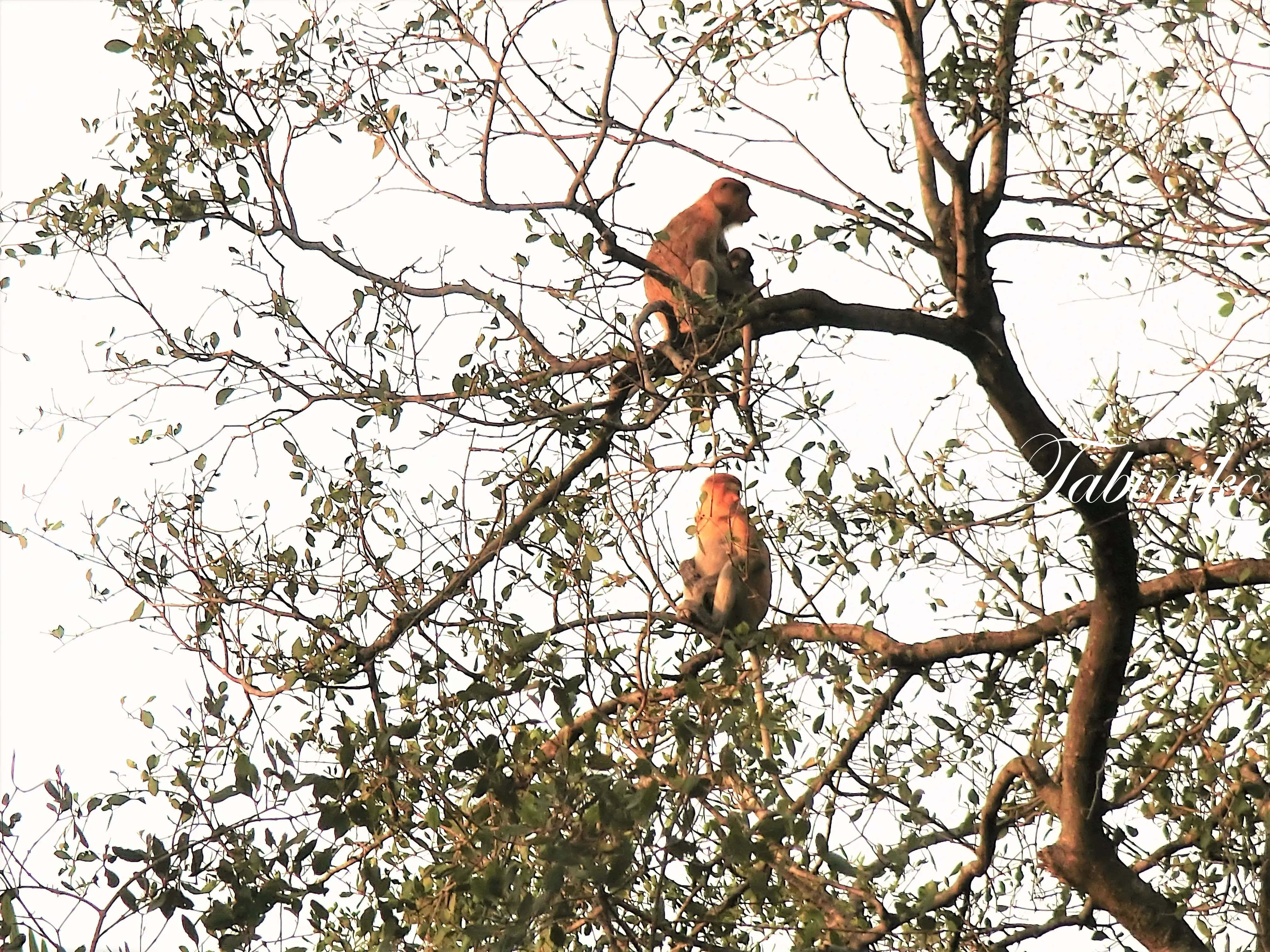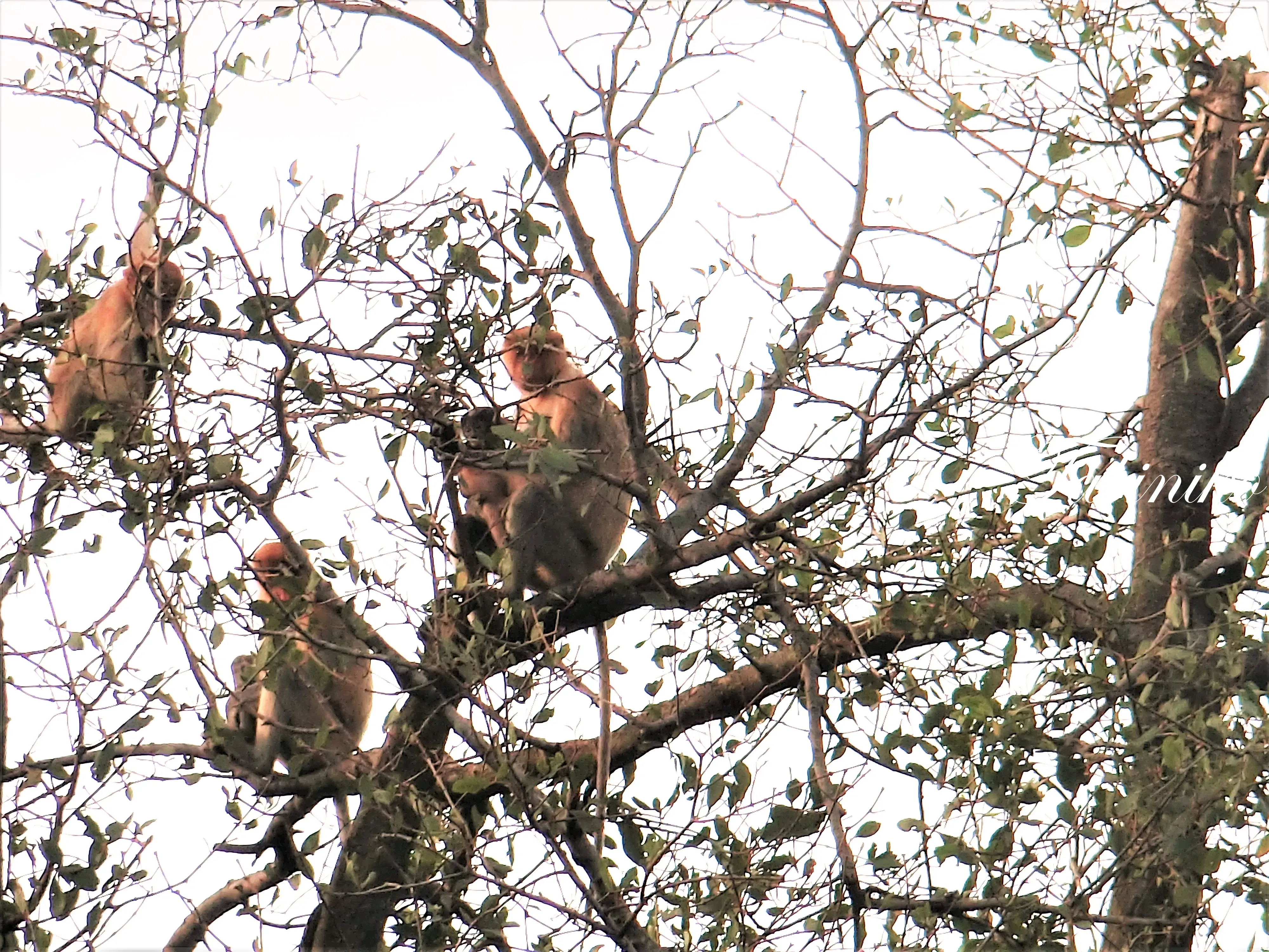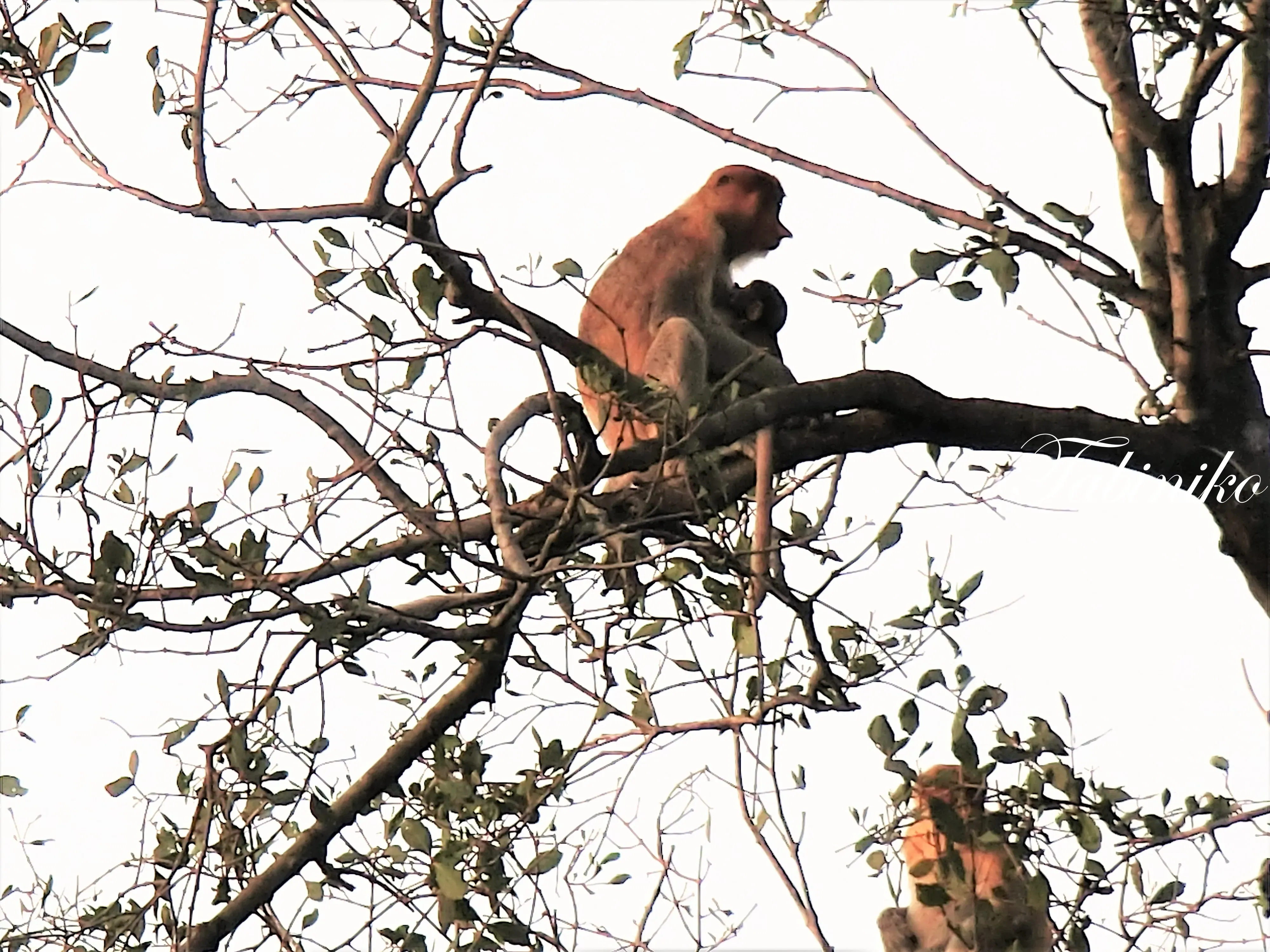 いました!いました!テングザル初対面で激爆感激です!野生なので近くでは見れませんが、やっぱり野生は見ごたえがありますね! 夕方にマングローブなどの葉を食べに出没します。