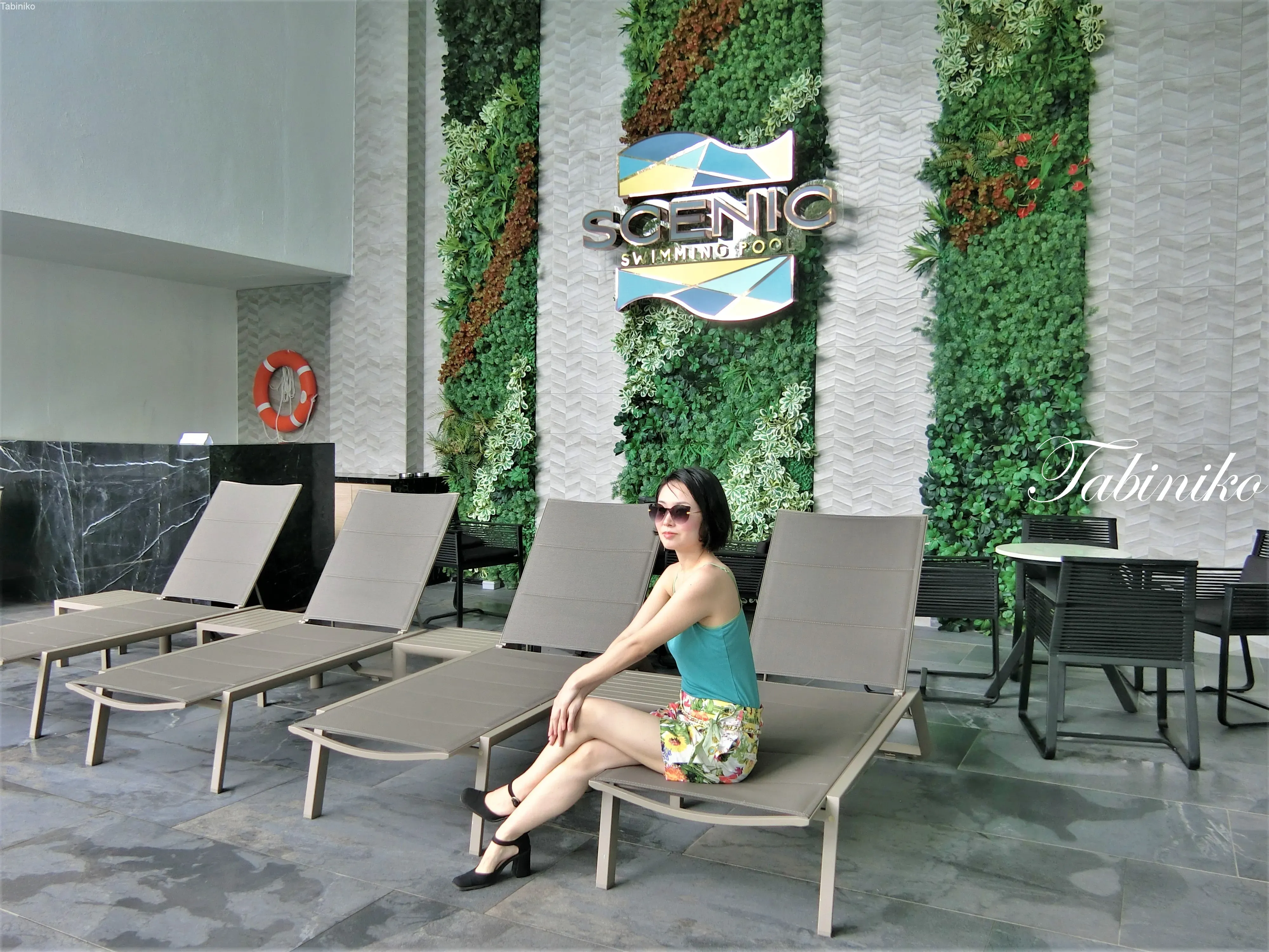 グリーンに囲まれて、ホテルのプールでのんびり出来ますよ。