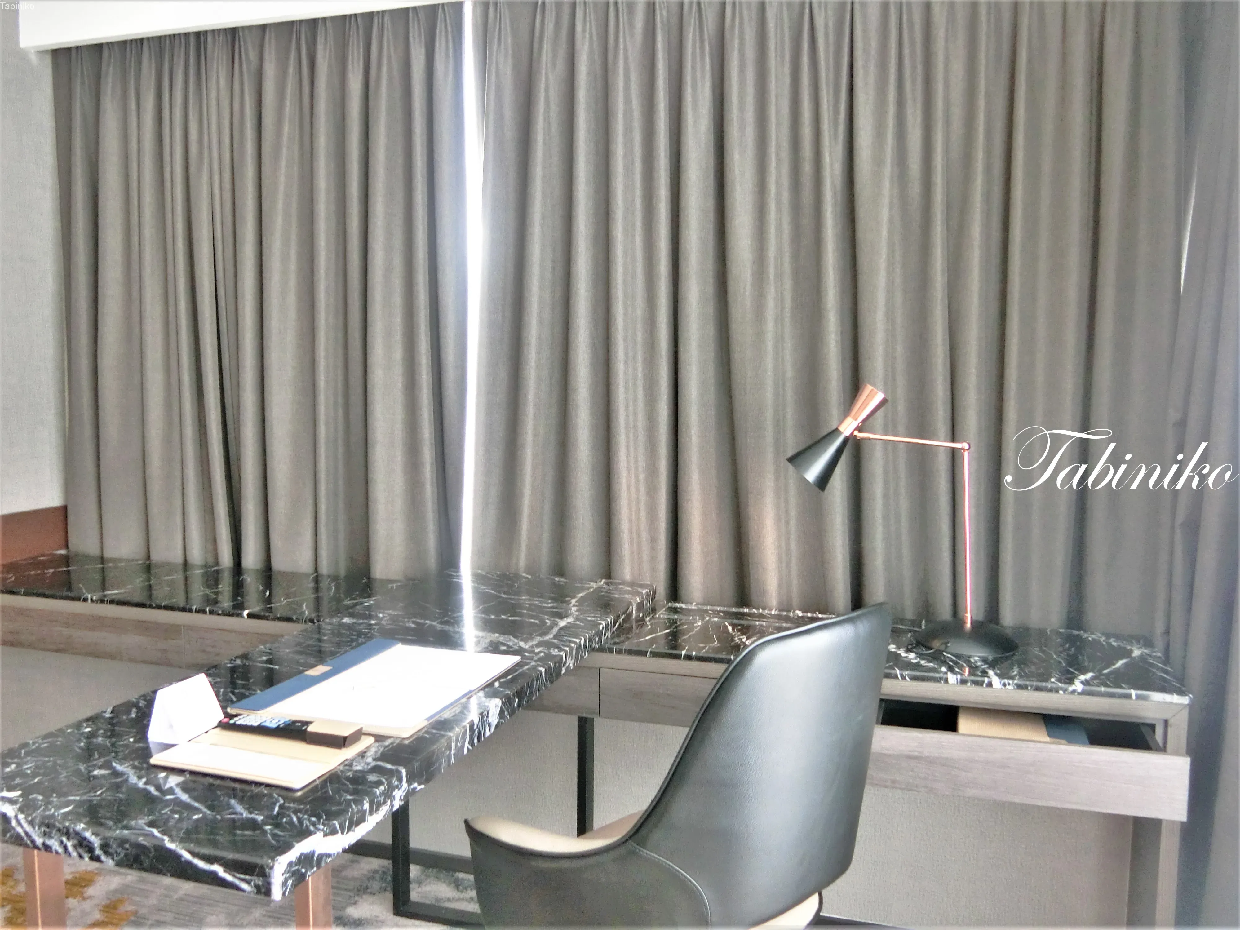 上品なインテリアで、とても綺麗なお部屋です。シックな空間の中に大理石の机やゴールドがさり気なく使われていて、高級感があり、カーペットの柄がとても映えてオシャレ!上質な空間で、家族でゆっくり出来るのでマラッカで宿泊される際にはおススメのホテルです。
