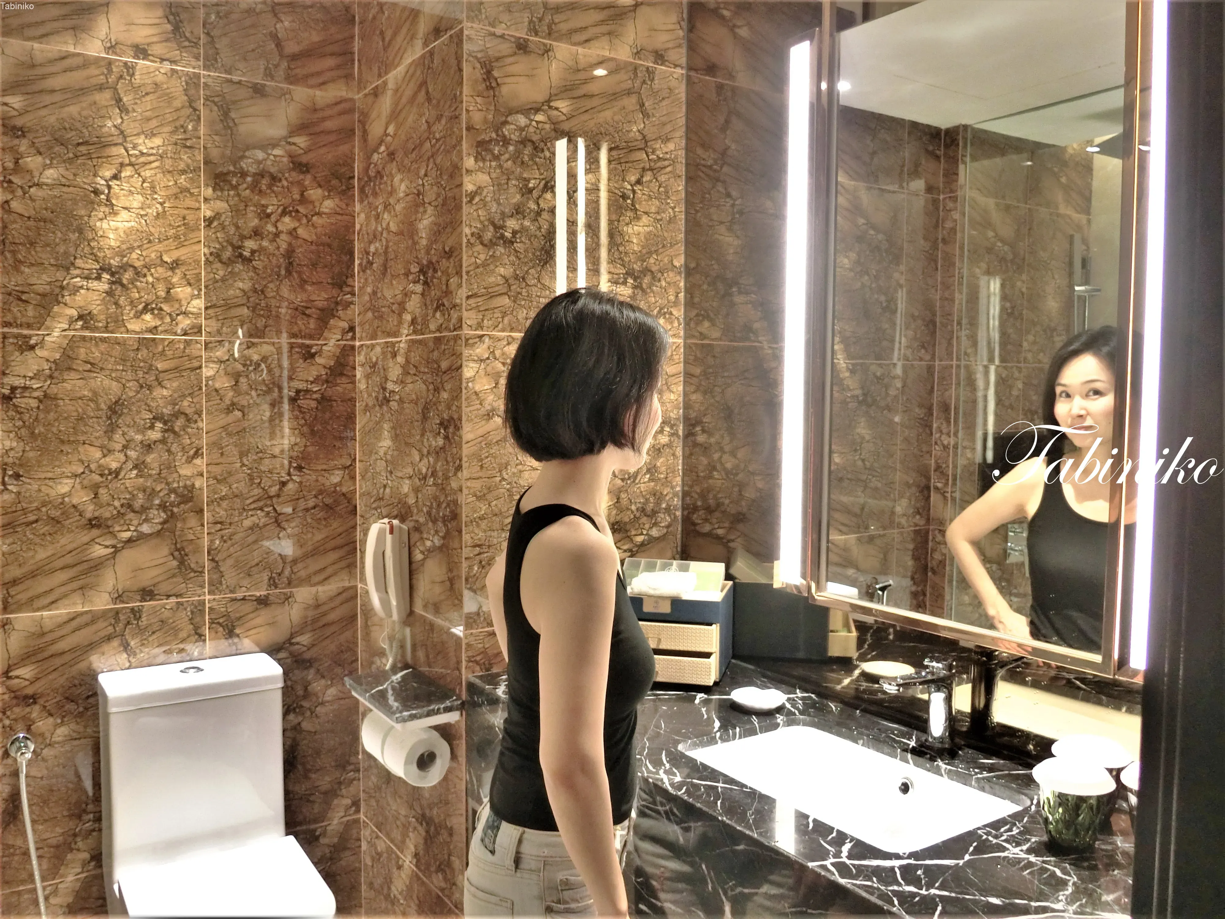 鏡の両脇にライトが付いていて、バスルームが明るくてお化粧もしやすくていいです。