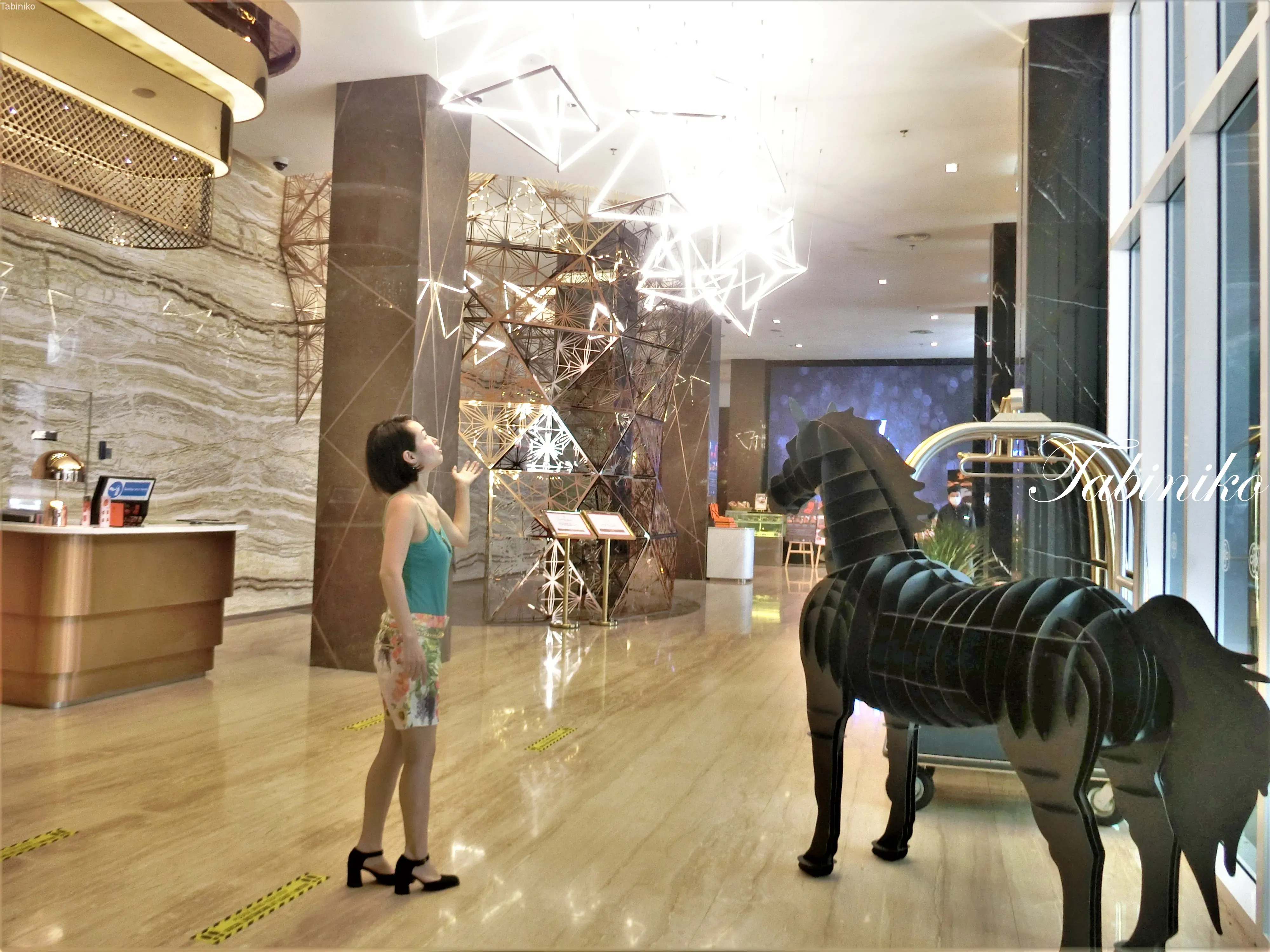大理石の床と壁で高級感がある受付。ホテルに着いてからチェックインして客室に入るまでが一番ワクワクしますよね!!!
