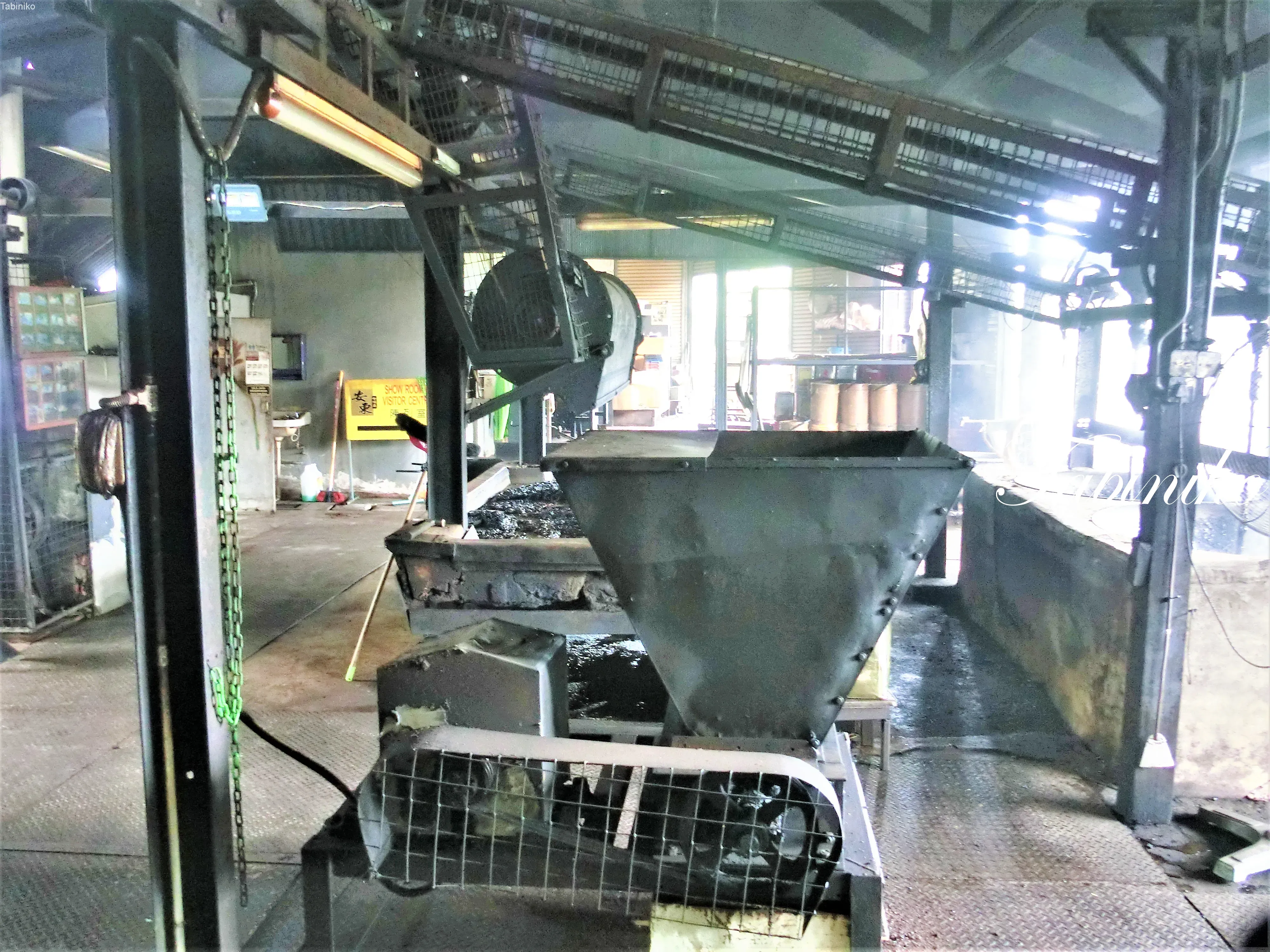工場の中は焙煎の蒸気と熱気がすごいです。昔からの伝統が継承されていているんですね。ずっと継承されていって欲しいです。年季が入った機械達がフル活動。