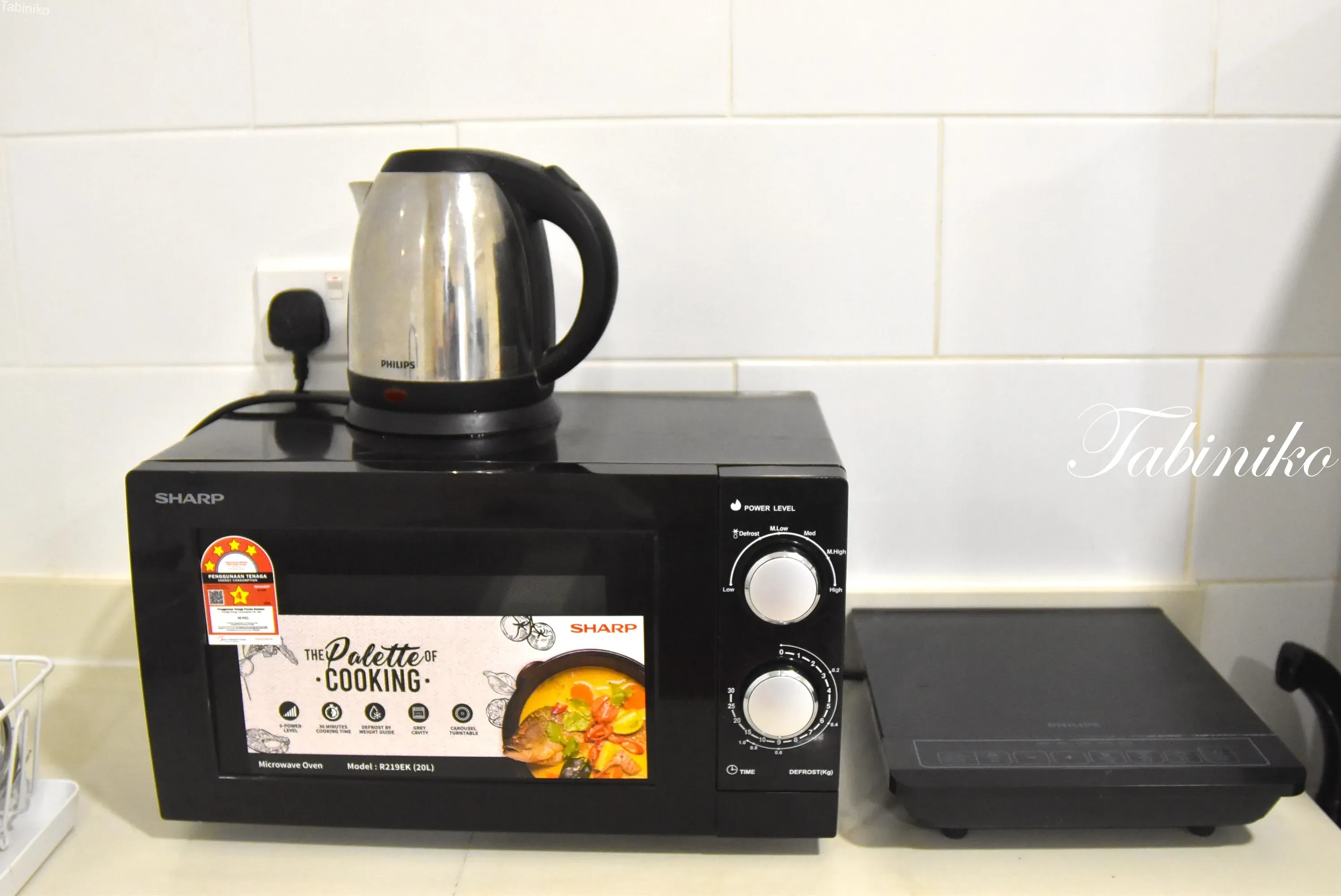 私たちが泊まった部屋は1日からホテルとしても泊まれるので、洗濯機、電子レンジ、IHクッキングヒーター、電気ポット、鍋、食器、コップ、カトラリーなどがあり、ちょっとした料理を作ることも出来ます。