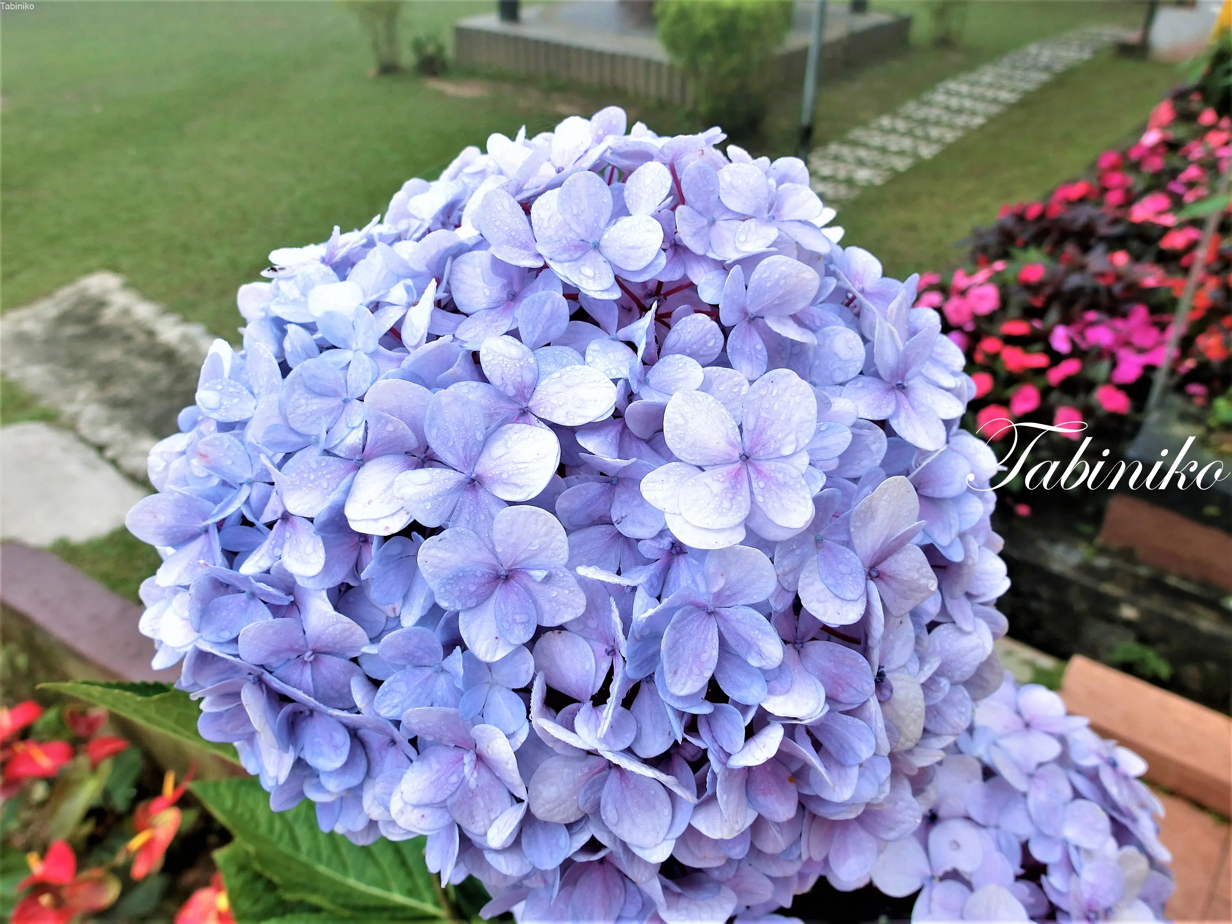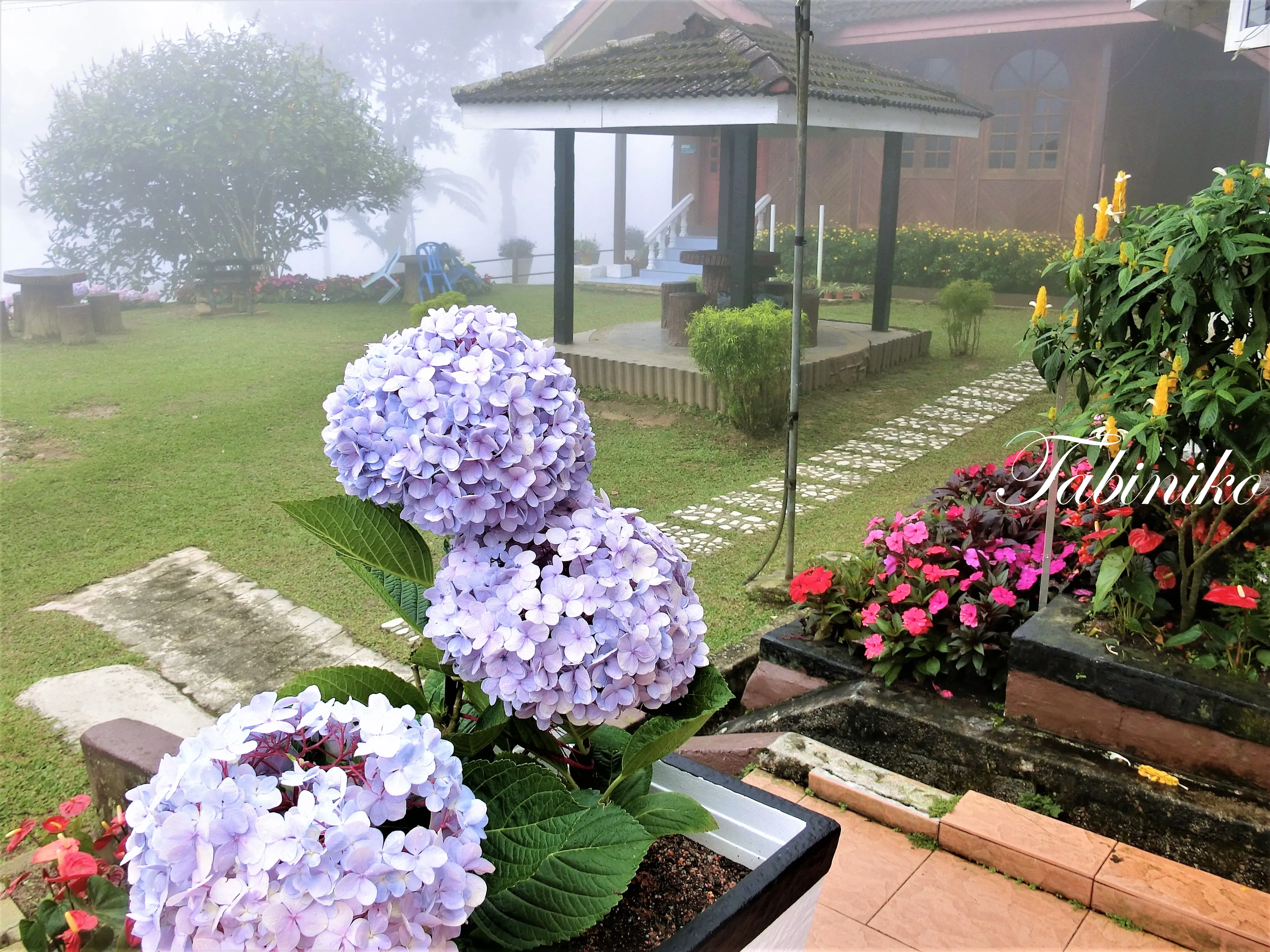 紫陽花がとっても綺麗に咲いていて、凄い大きい!!紫陽花もマレーシアンサイズです!