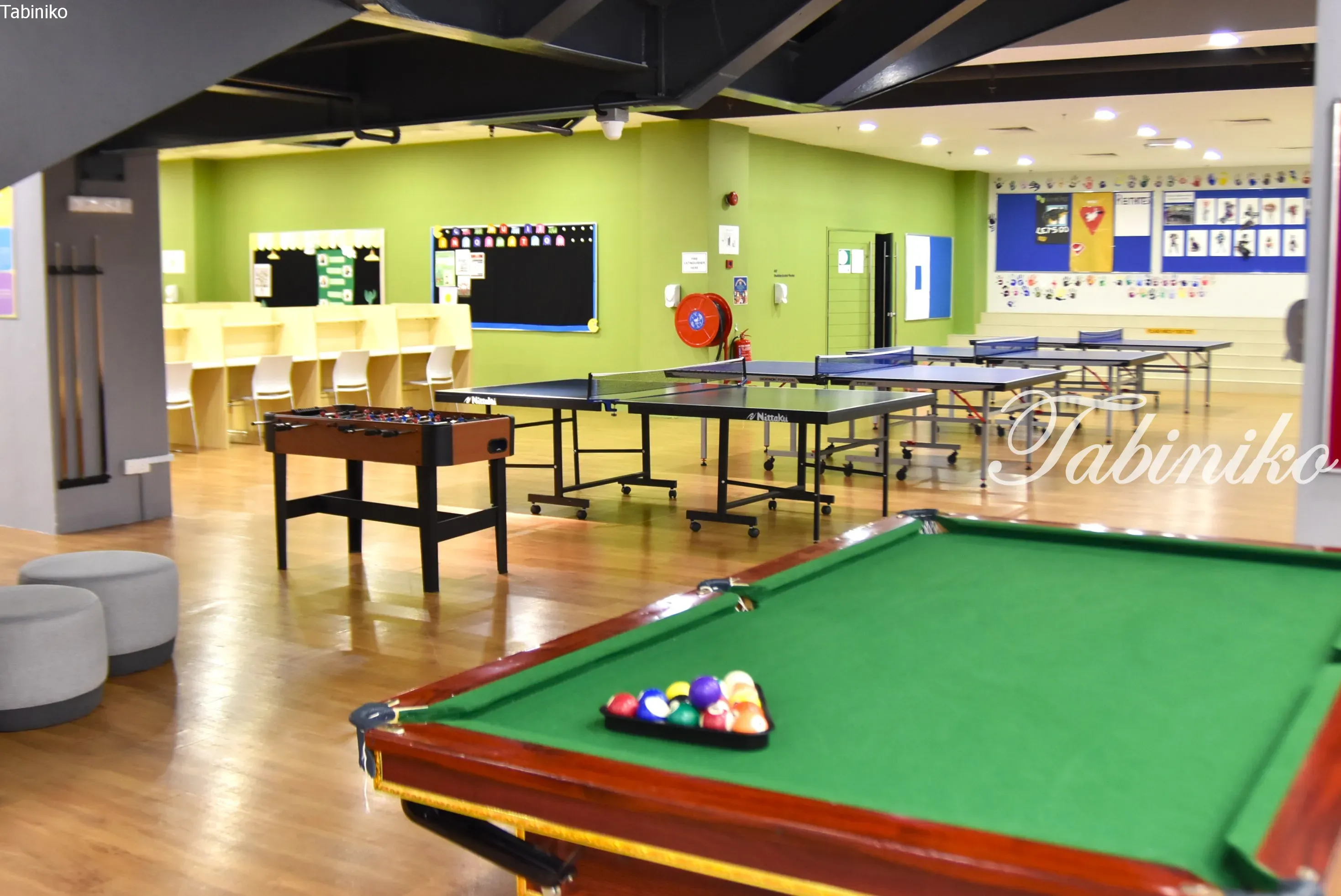 勉強出来るスペースの横には卓球台やビリヤードも。