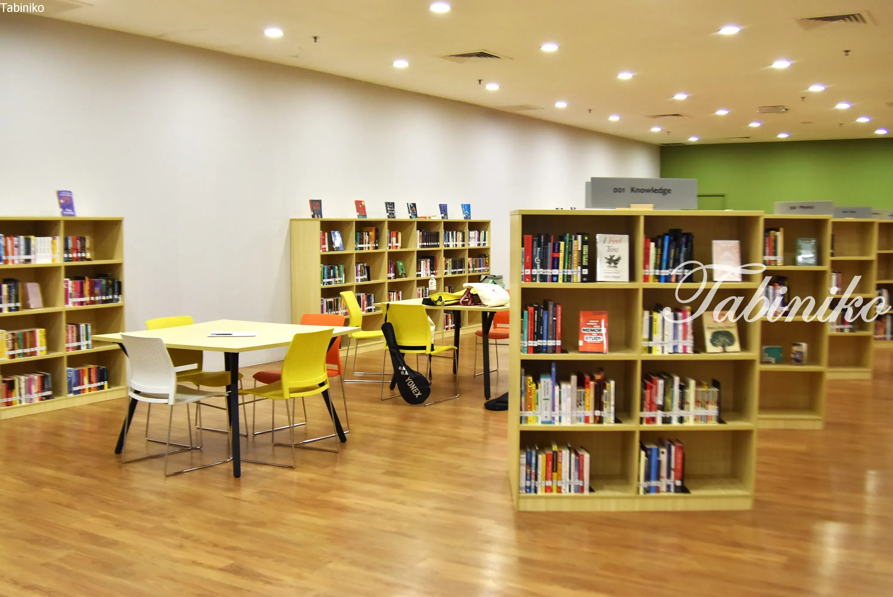 図書館は1回ロビーの奥にあって、オープンになっています。ebookがメインです。