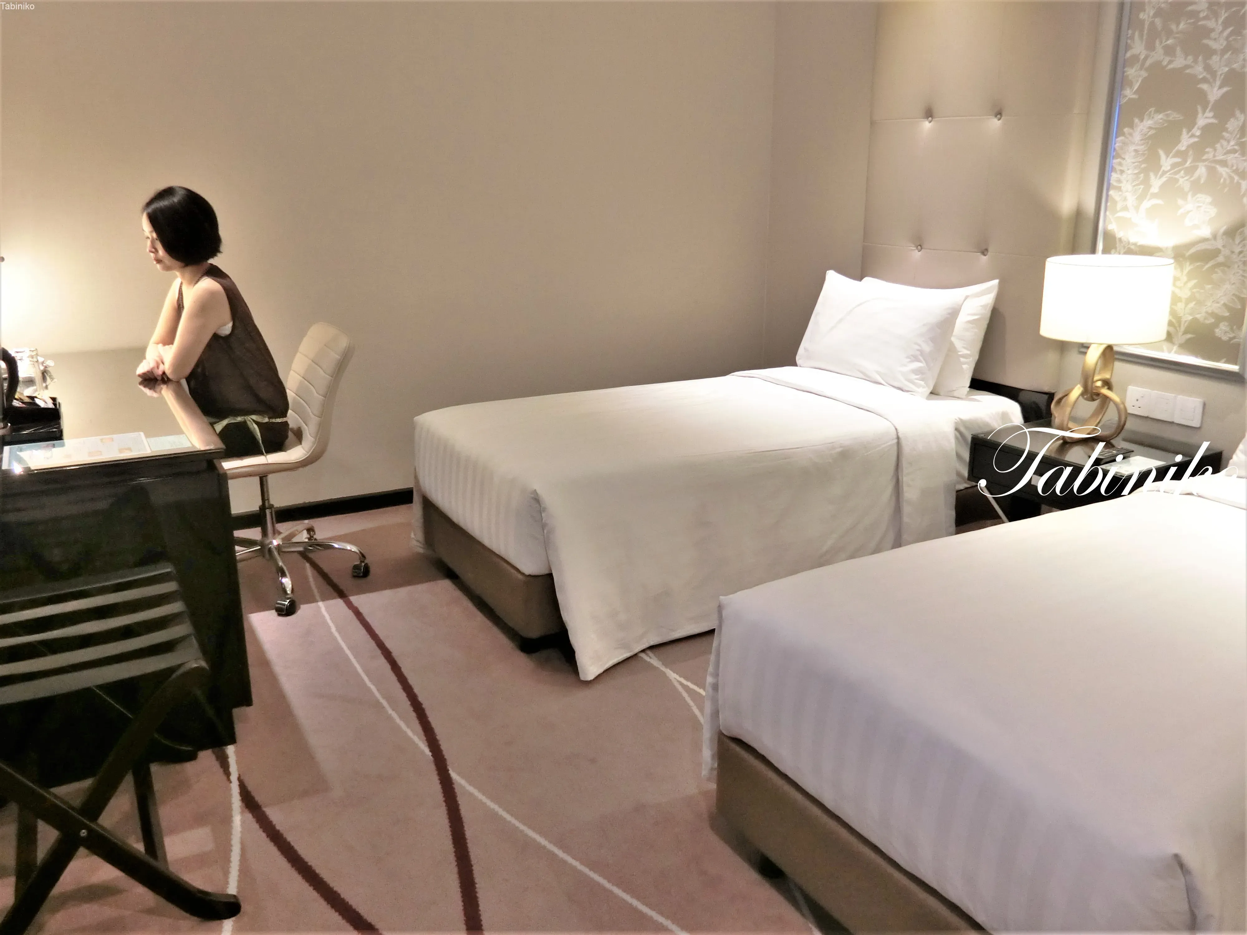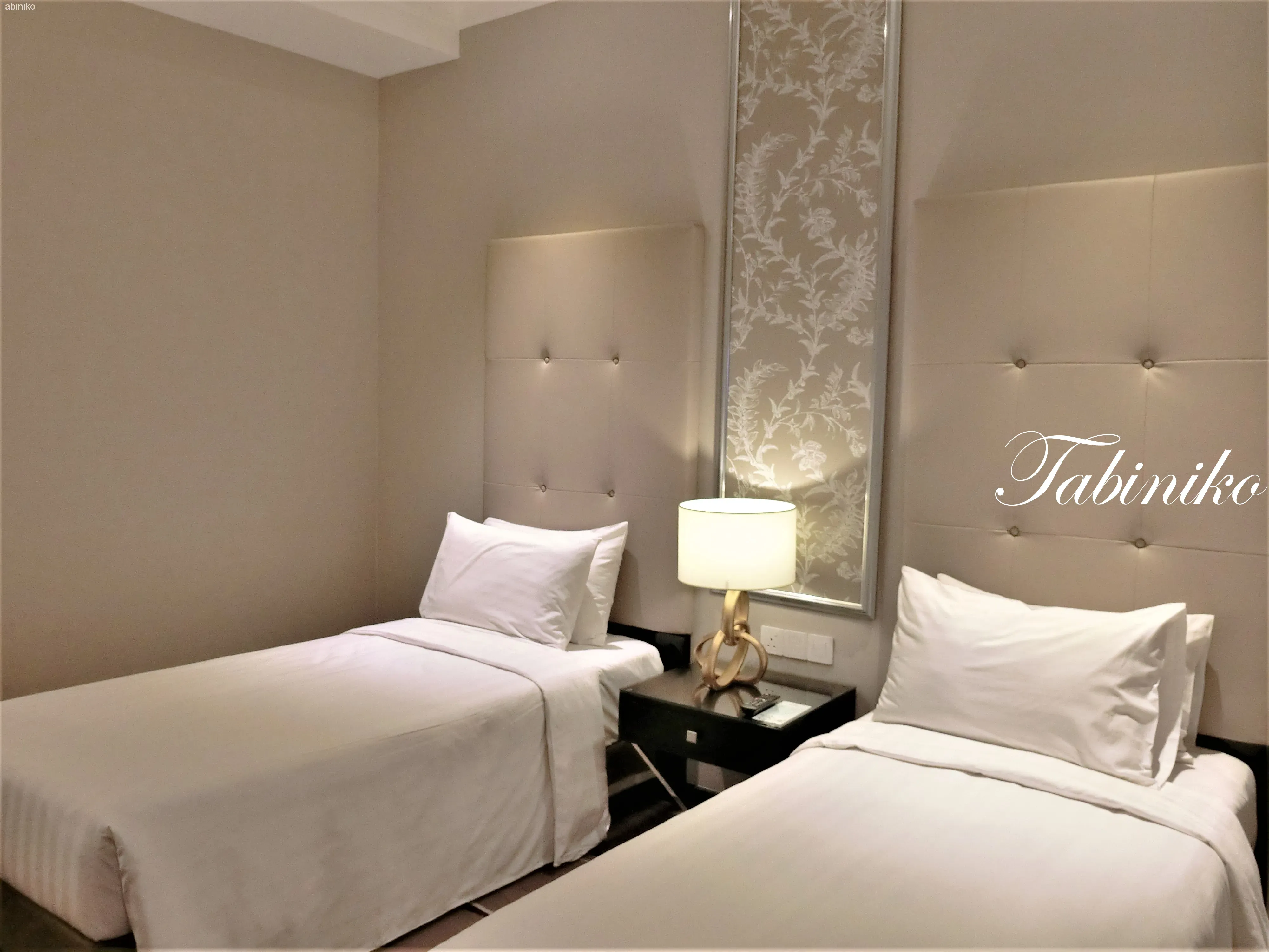 (1)Superior Room スーペリアルーム。2人+子供1人まで。シングルベッド2台、無料WiFi