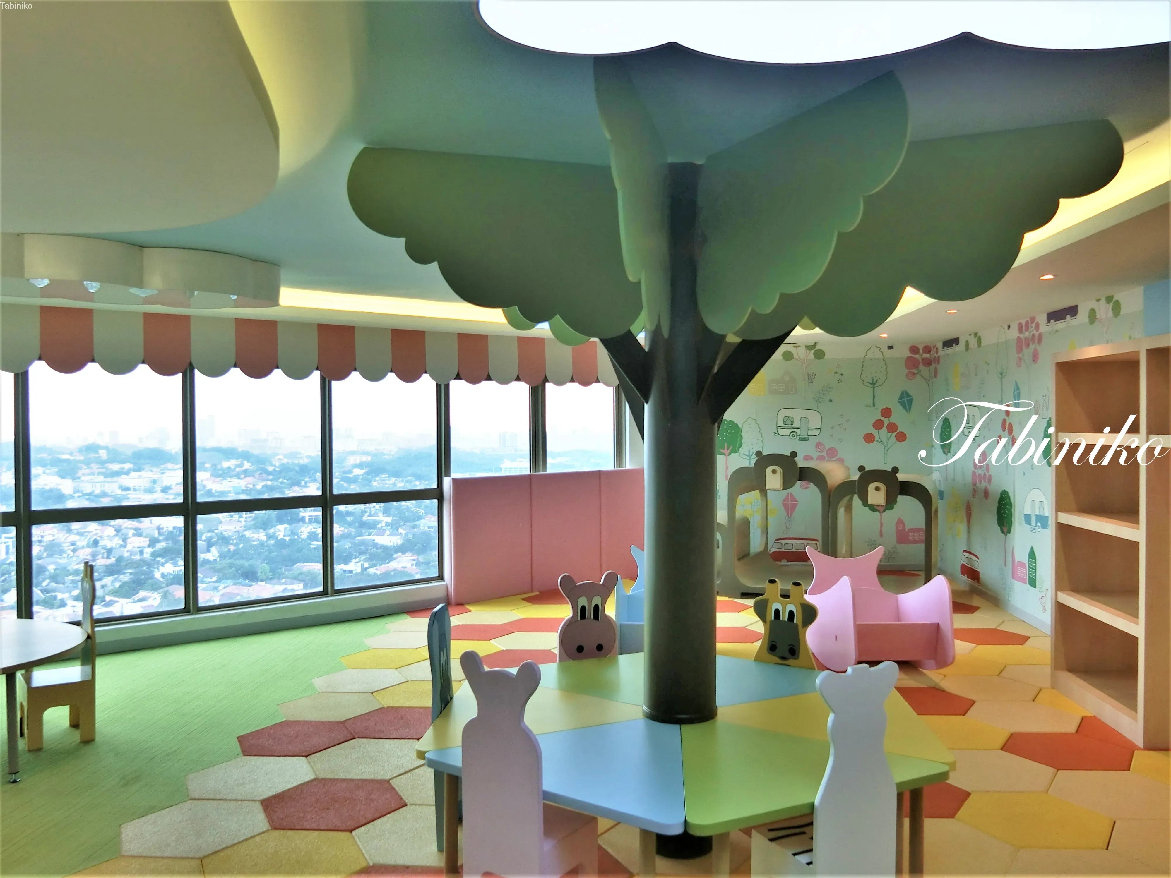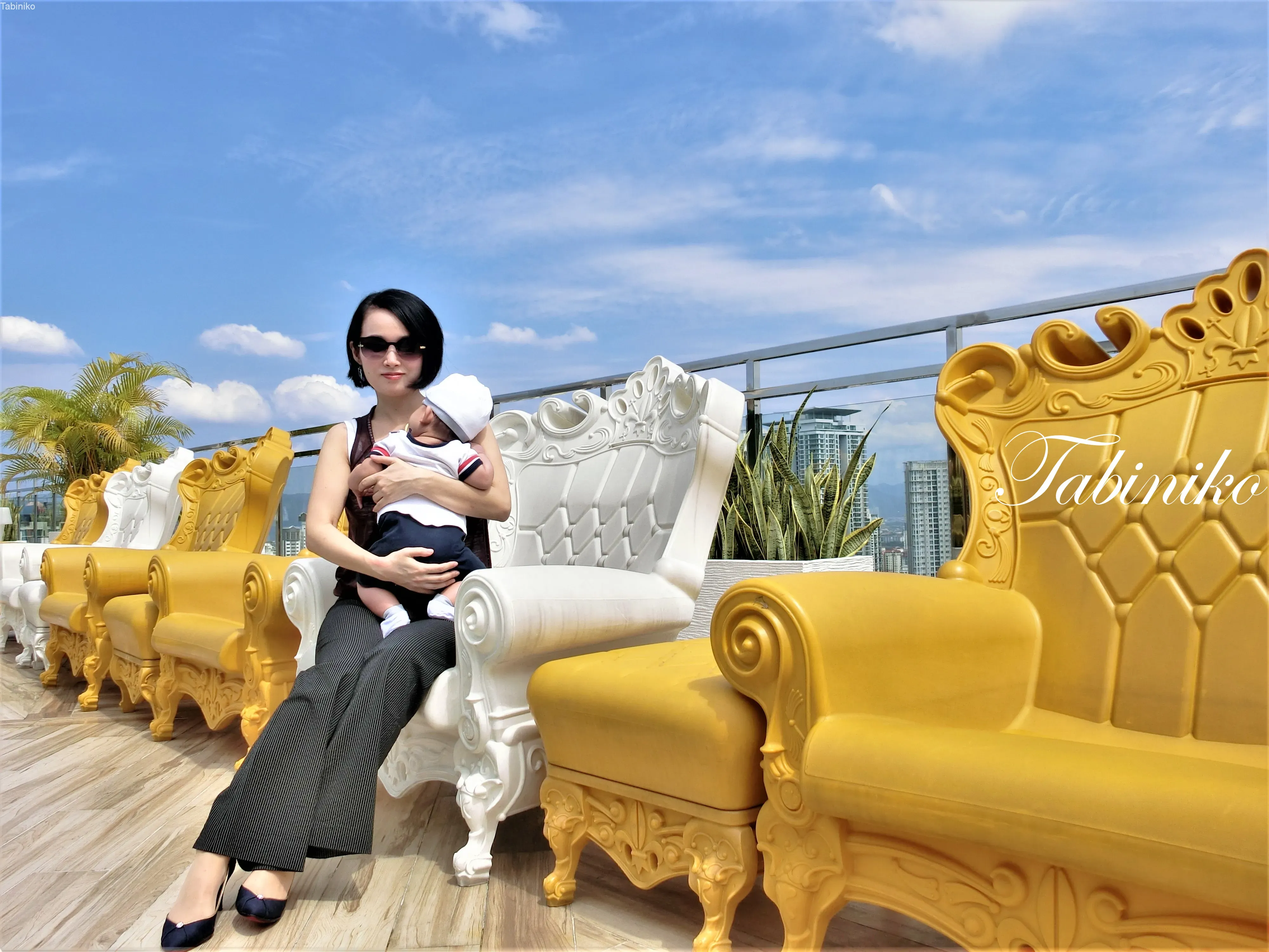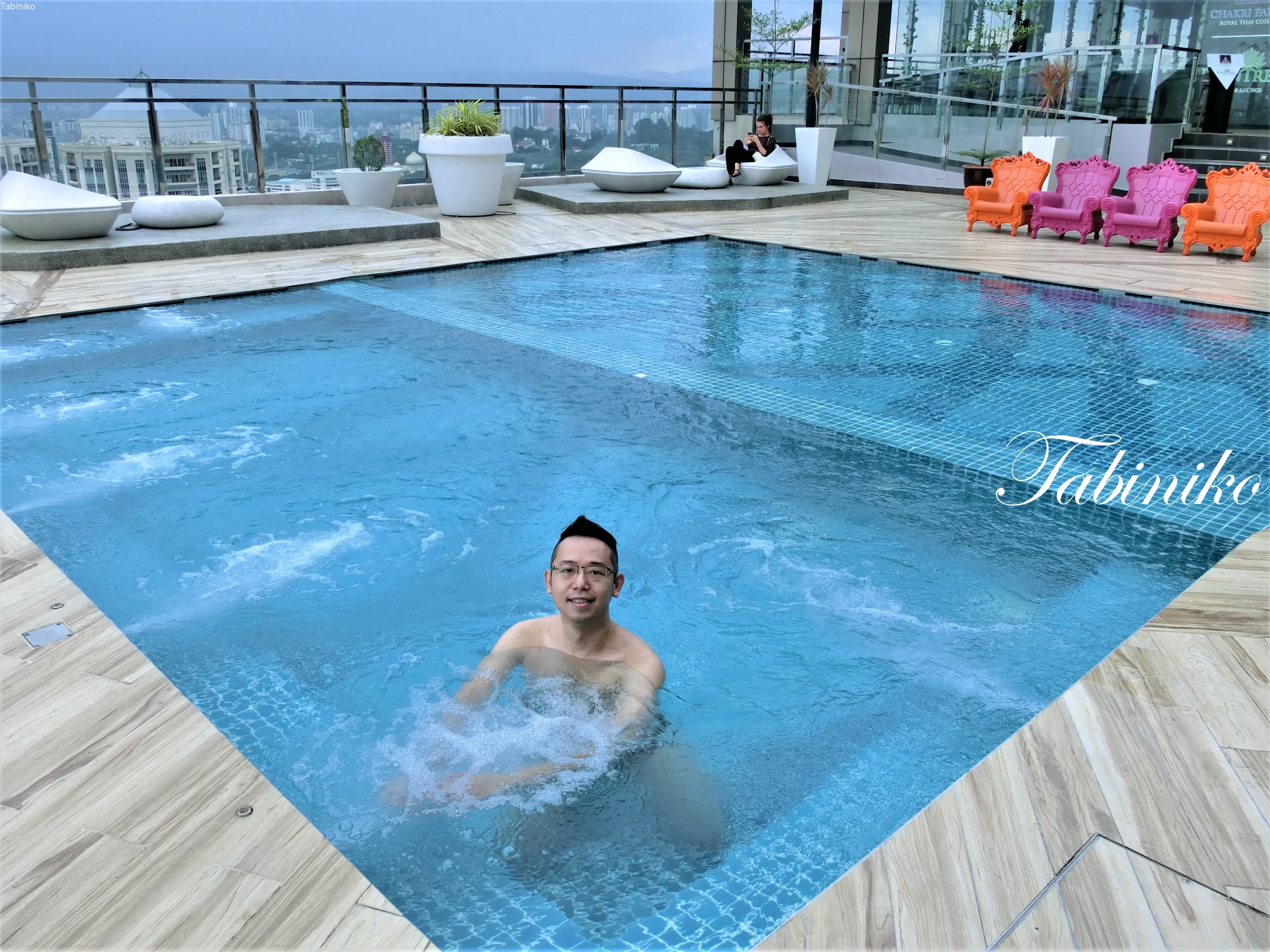 ホテルの屋上にあるプールからは皇居とその奥にはクアラルンプール市内のビル群が一望!!皇居の周りはグリーンが多いので癒されます。大きな青空の下で太陽を浴びながらのプールは気持ちいいです。大人用のプール、子供用のプール、ジャグジープールもあります。カラフルな王様のような椅子と素晴らしいシーティービューはインスタバエに超最適!