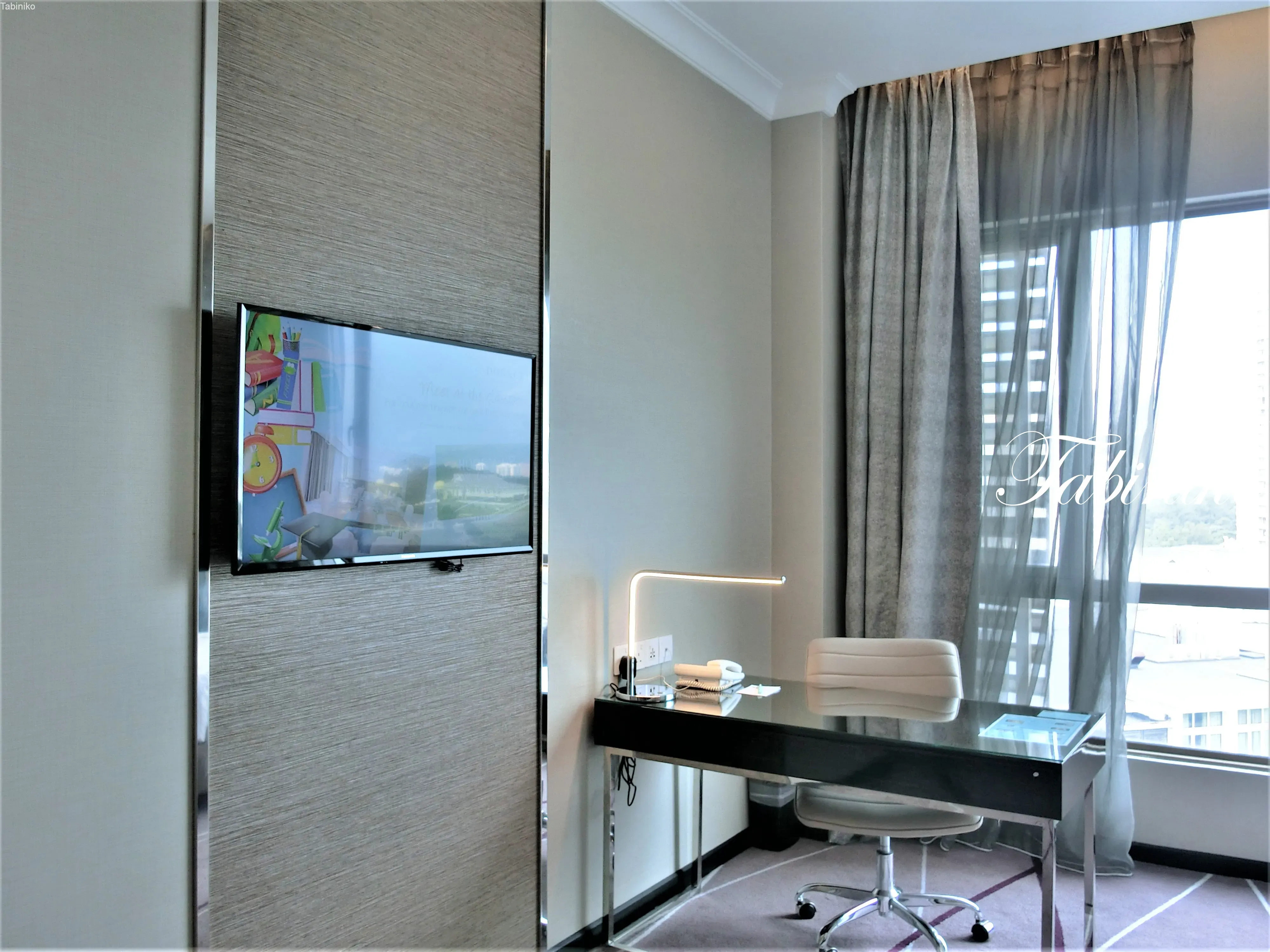 ベットの前にはテレビと仕事机。椅子も座り心地グッド!