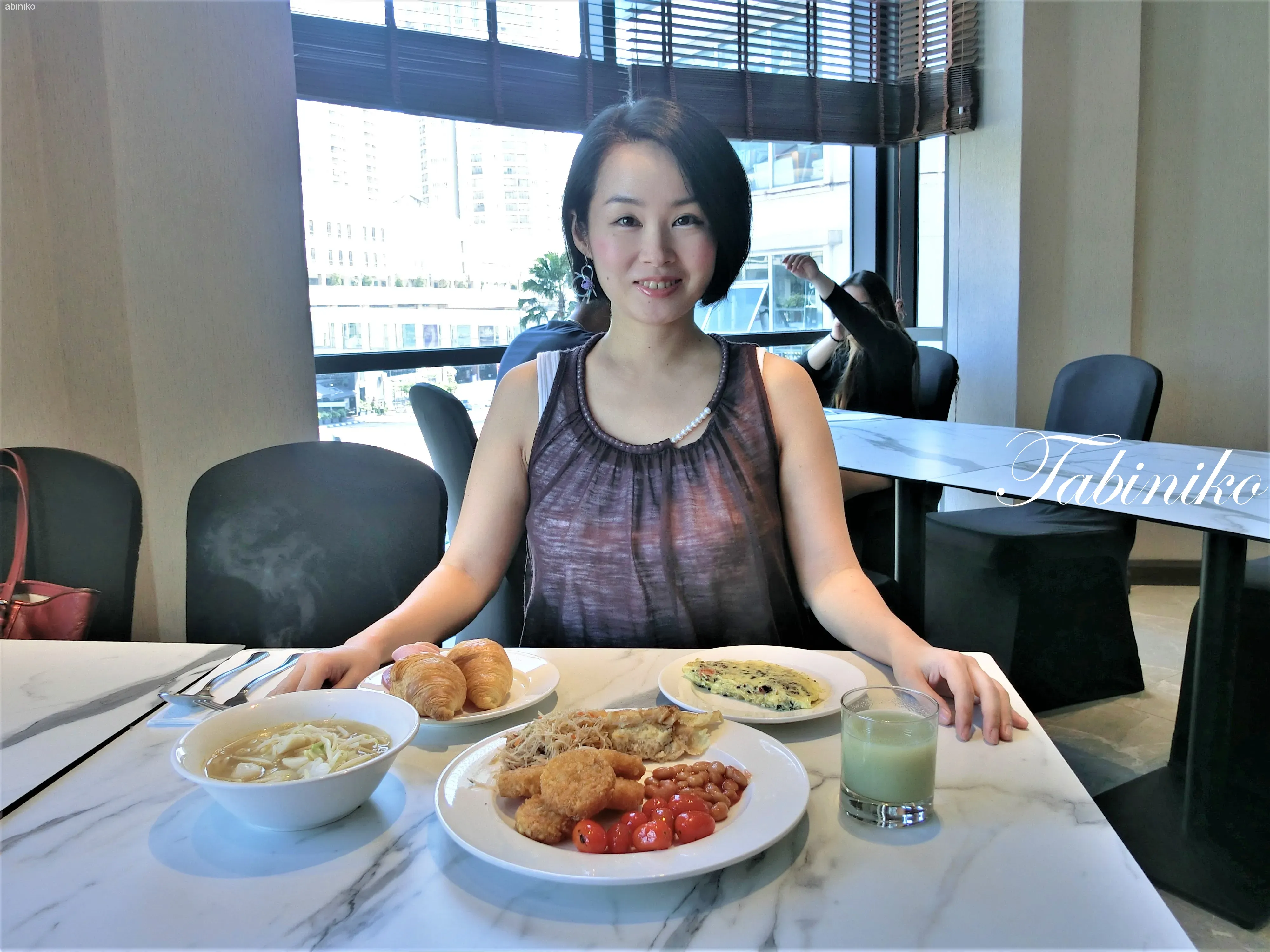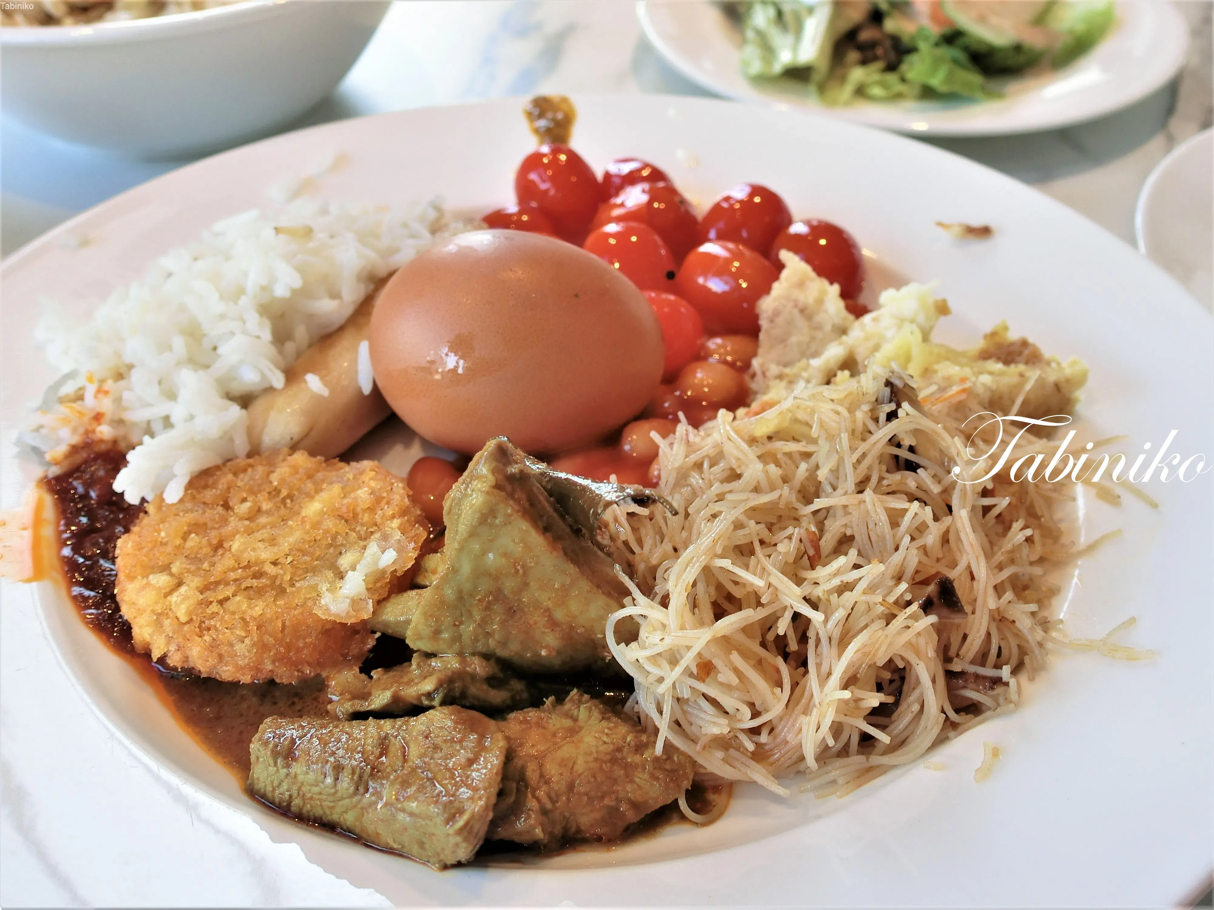 卵料理、トマトを煮たもの、ハッシュドポテト、トマトソースで豆を煮たもの、ローカルヌードル、ミーゴレン、カレー、パン、ハム、ヨーグルトなど色々あります。