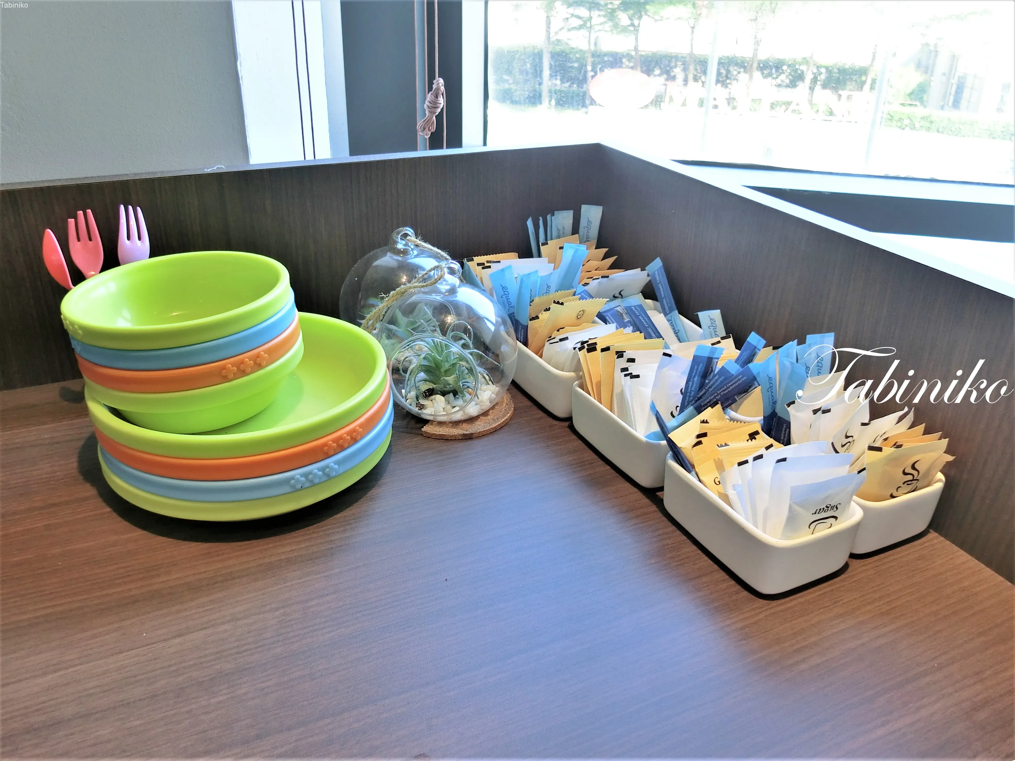 珍しくお子様用の食器!このホテルは部屋にも子供のグッズを用意してくれます。子連れにはありがたいです。