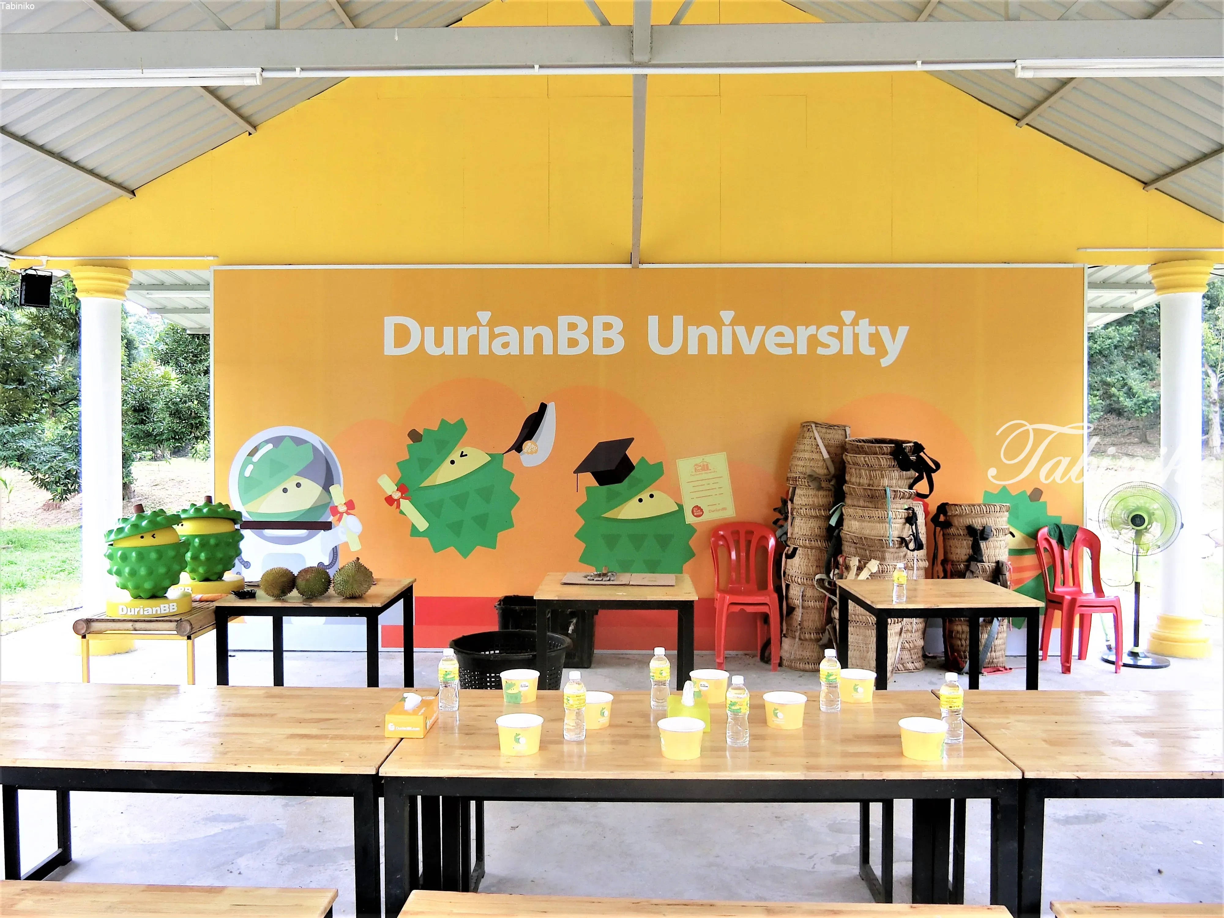 え、ドリアンBB大学?教室?どういうこと??TABINIKOチームが解説します。「DurianBB Univerity (ドリアンBB 大学)」は、宣伝効果を狙っての策略です。