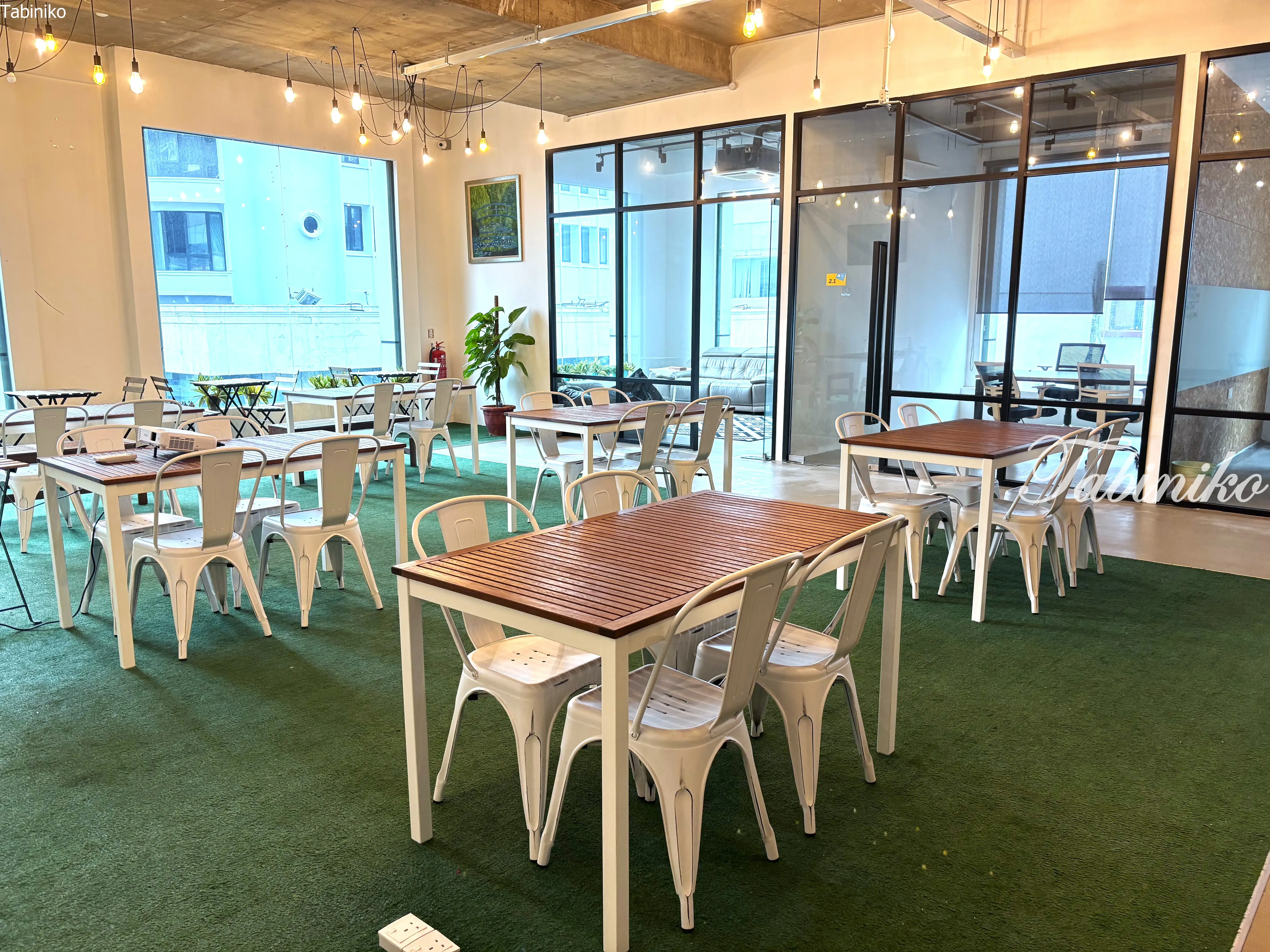 2階は、企業研修等でビジネスマンが英語を習う時に使うスペースで、ガラス張りのモダンな個室になってます。