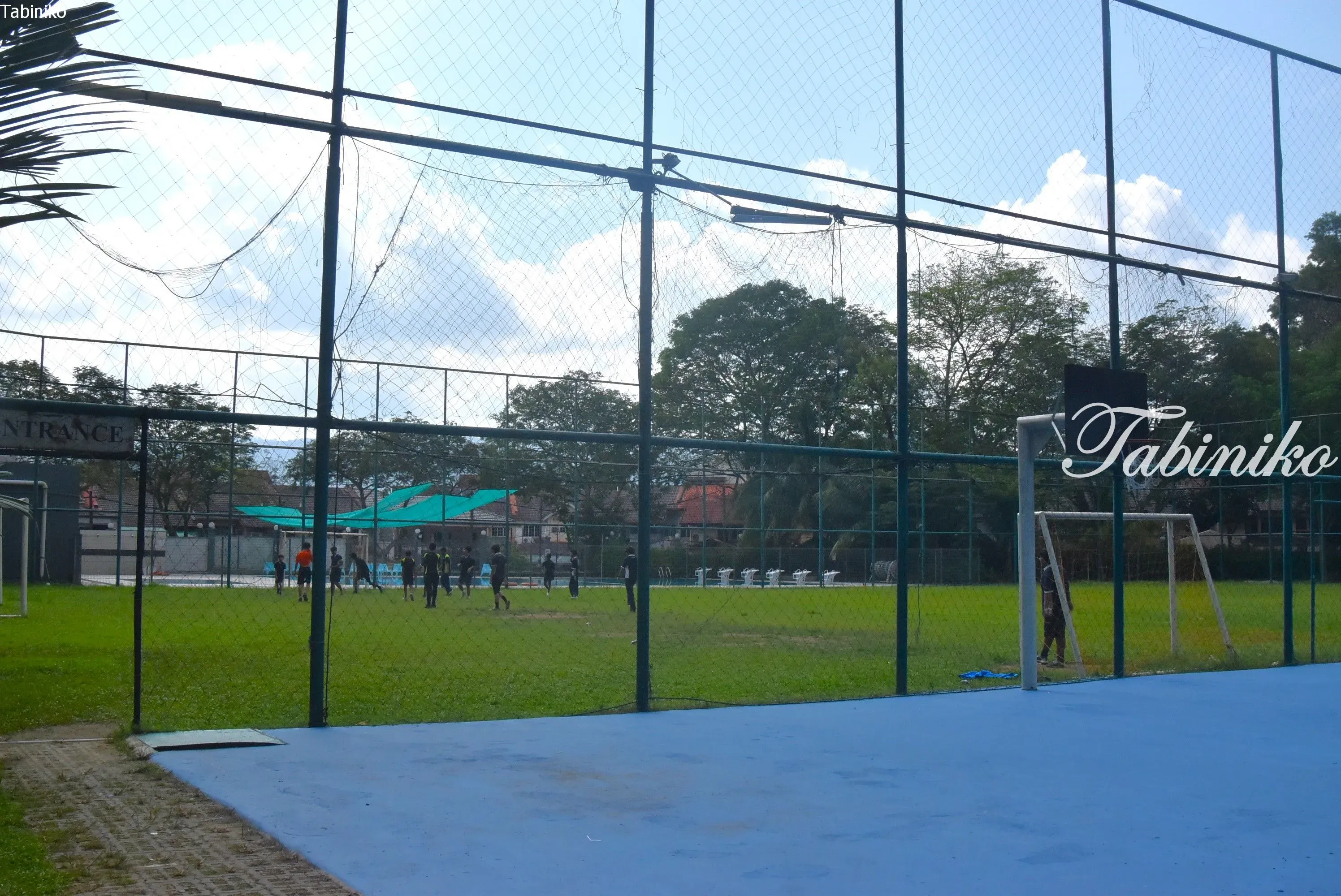 プール、芝生のグラウンド、バスケットボールコートもあります。