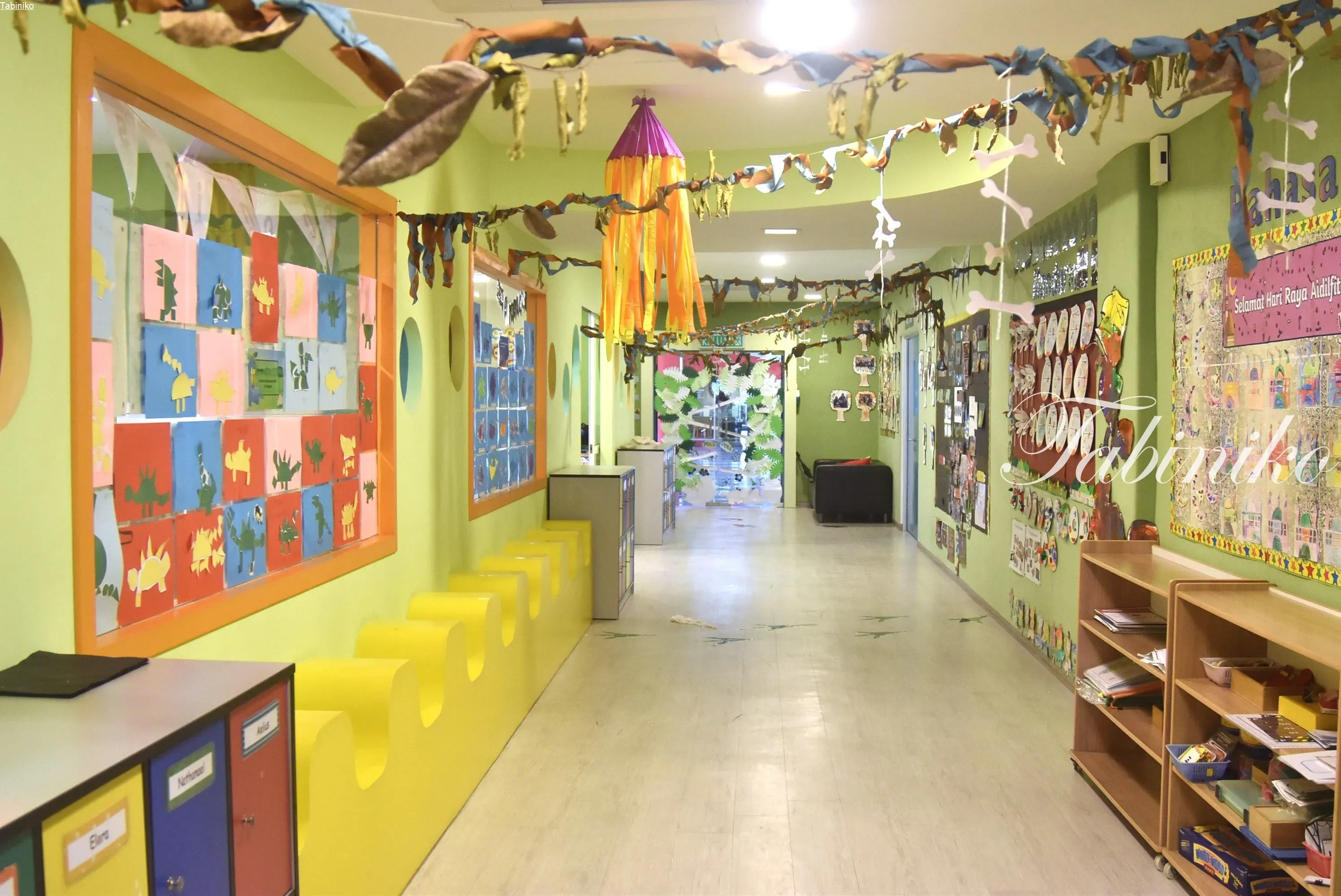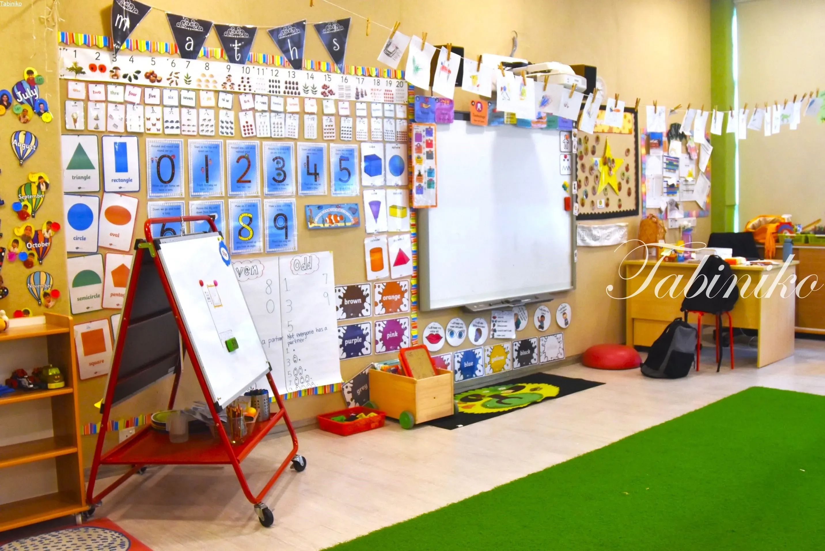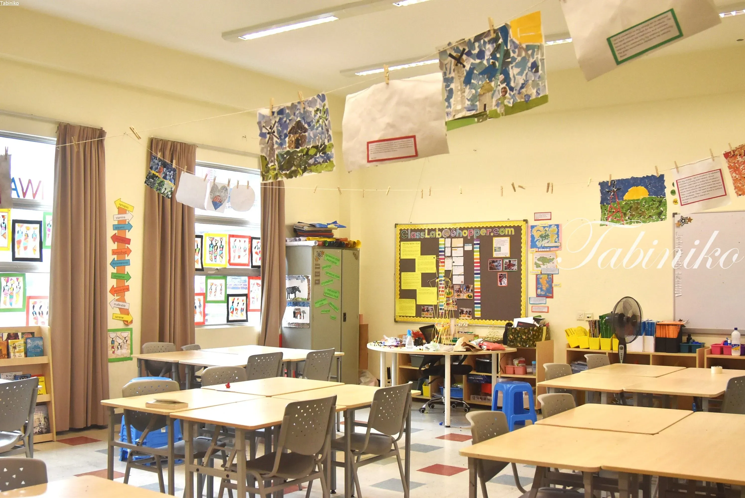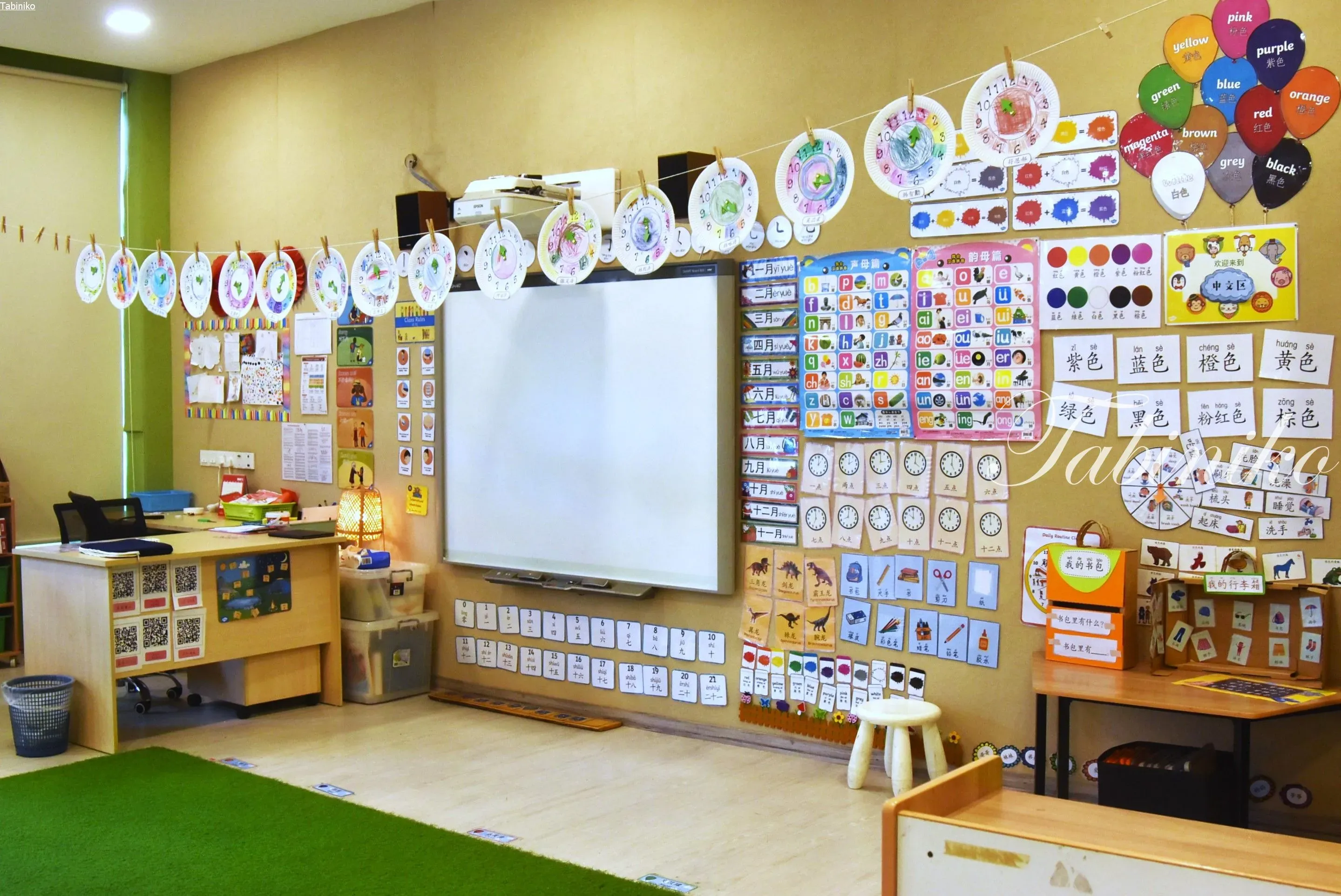 他のインターナショナルスクールも生徒の作品や単語などが壁に色々貼ってありますが、ヘルプ(HELP)インターナショナルスクールの壁には更に沢山貼ってあって、見ているだけでワクワク楽しいです(^▽^)