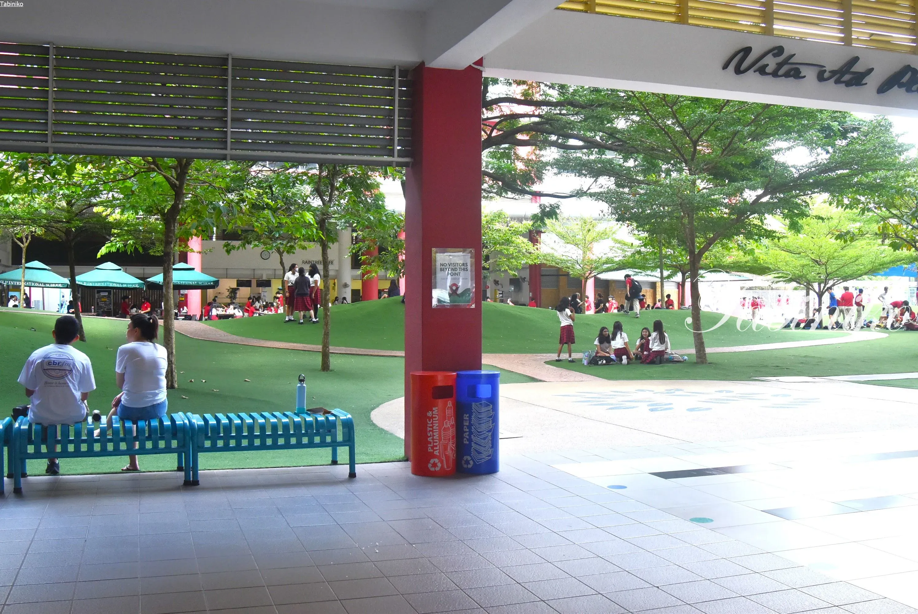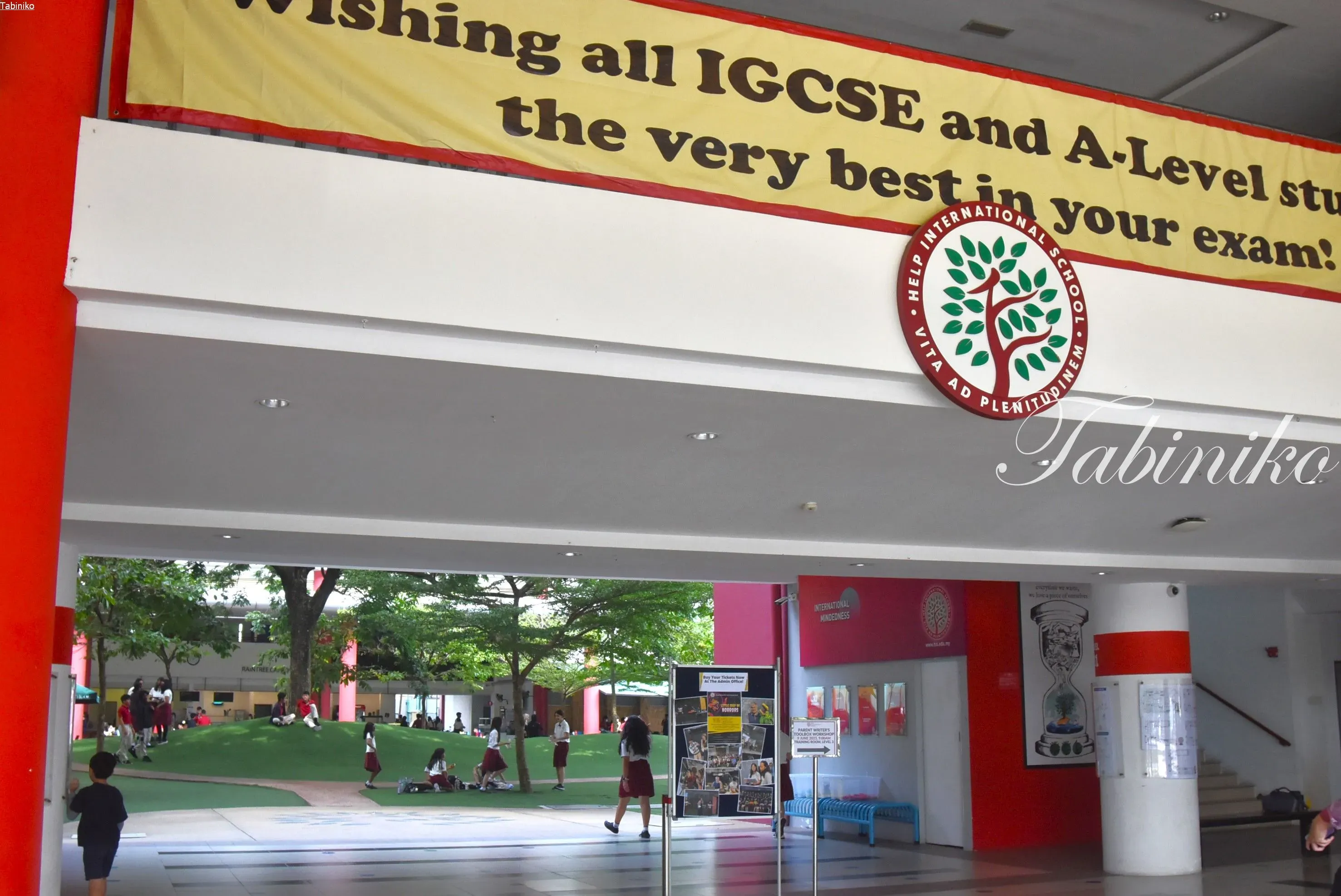 学校の中にはグリーンが沢山!!私が思うヘルプ(HELP)インターナショナルスクールのイメージカラーは赤&緑。校舎の赤い壁とグリーンがマッチした、広くて開放感のあるインターナショナルスクールです。