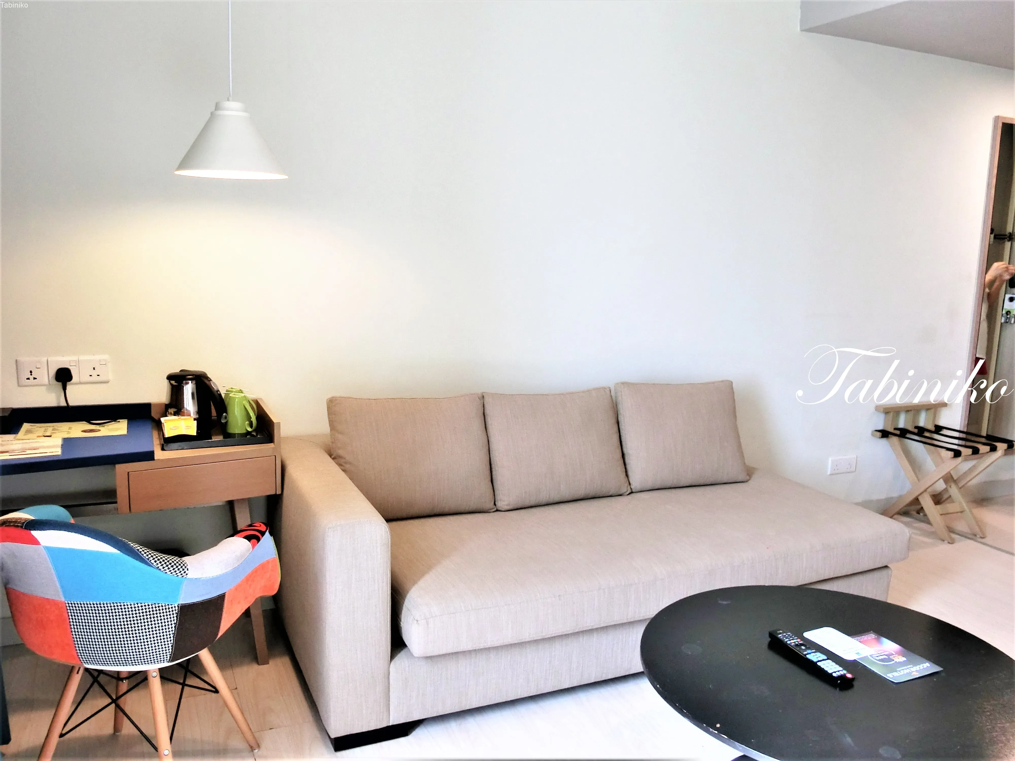ソファー付きのファミリースイートルームは3人まで泊まれます。