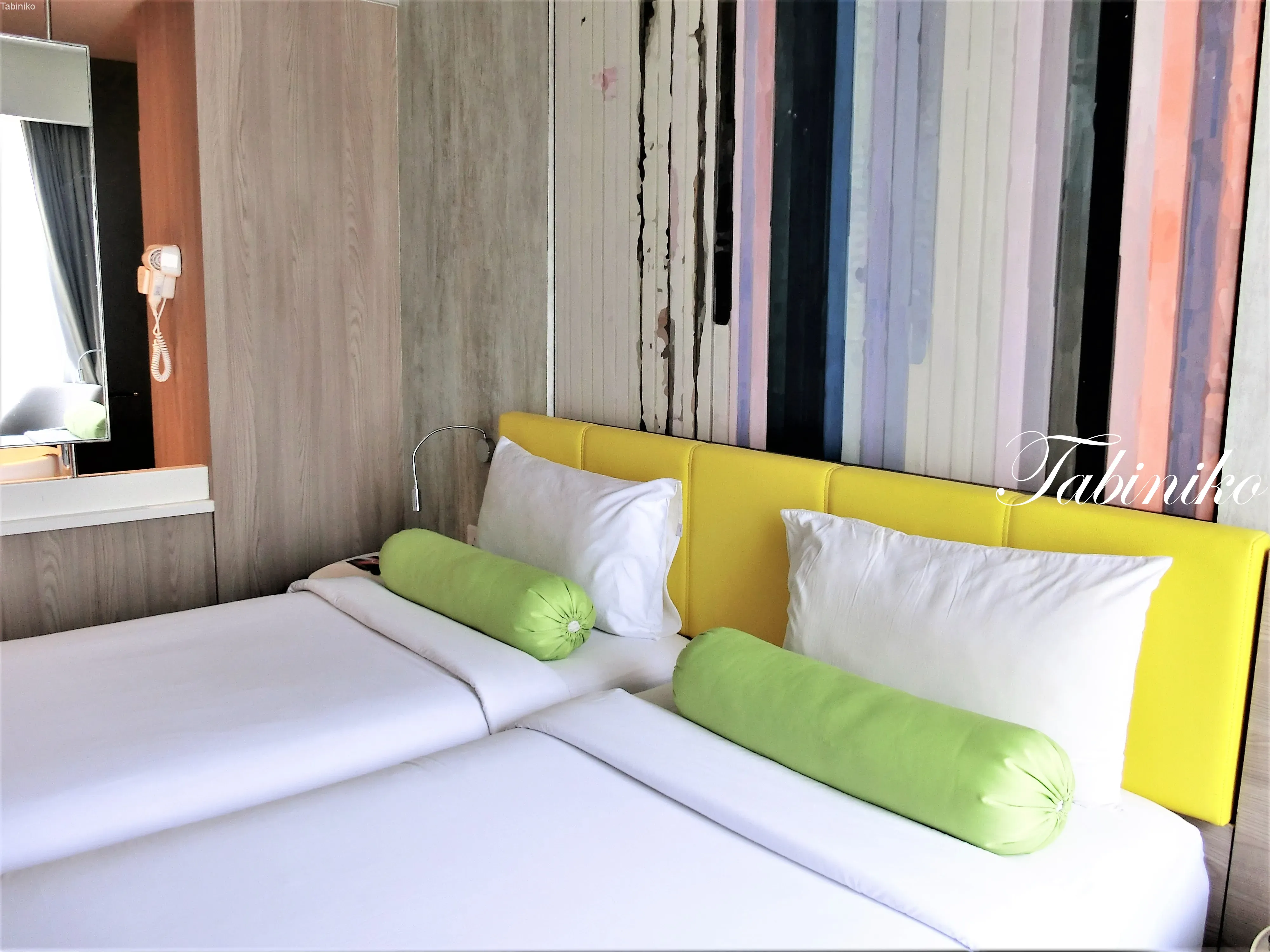 シングルベットもあります。お部屋はカジュアルポップな内装です。