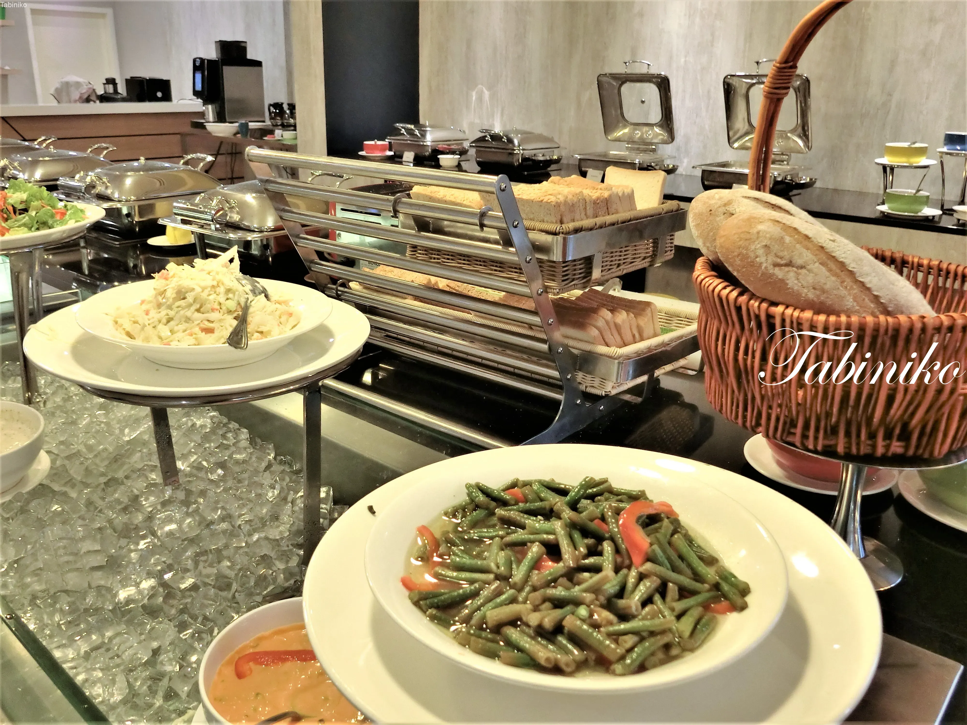 パンや野菜炒め、サラダ、ローカルフード等いろいろあって、しっかり朝ごはんを食べて仕事に専念できます。