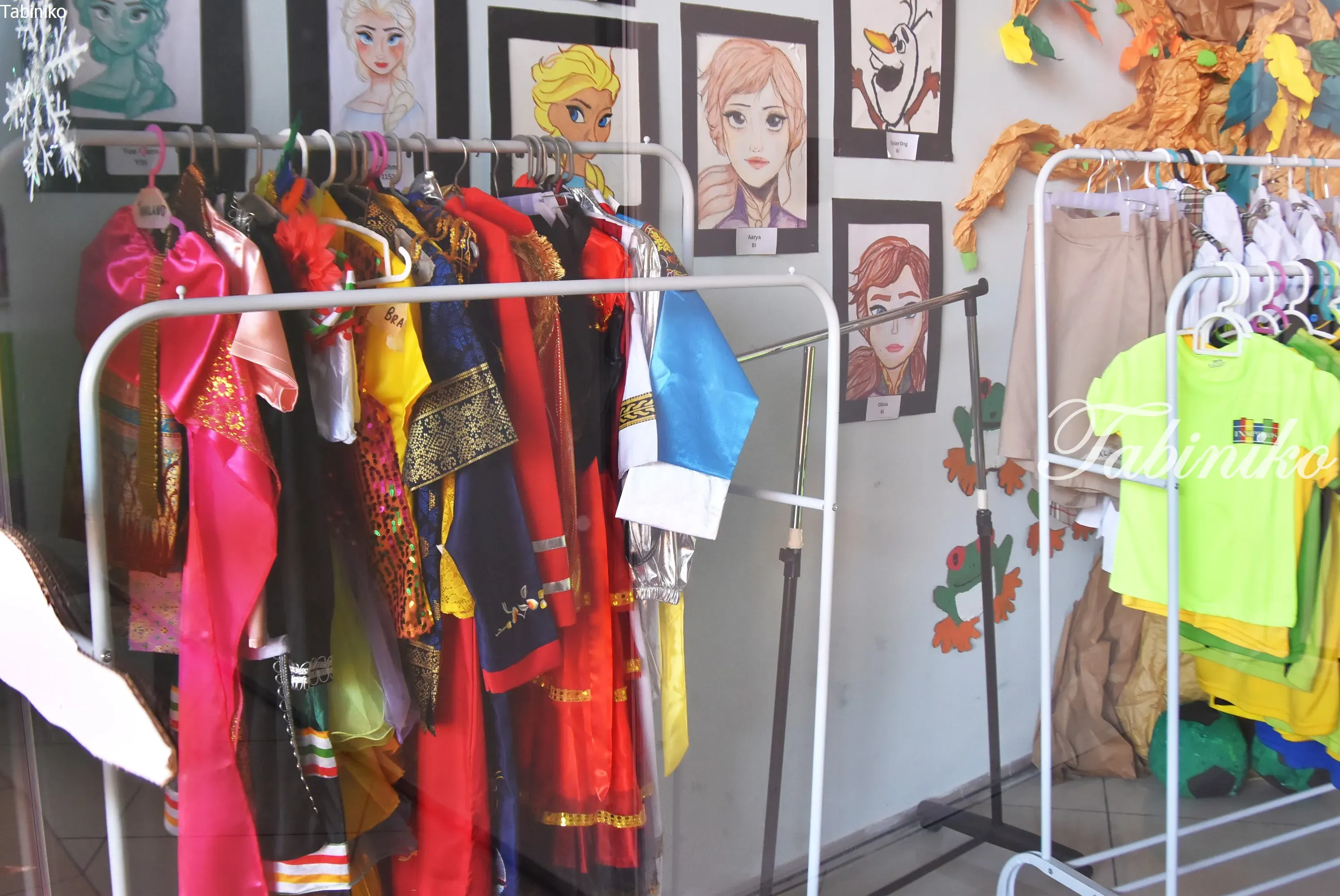 制服やユニフォーム。 毎年コンサートがあるのでそのコスチュームも置かれている部屋です。 息子の幼稚園でも、毎年卒業式と一緒に行われるダンスや演劇のコンサートがあるので、年に一度のコンサートはどこの学校も力を入れているイベントです。