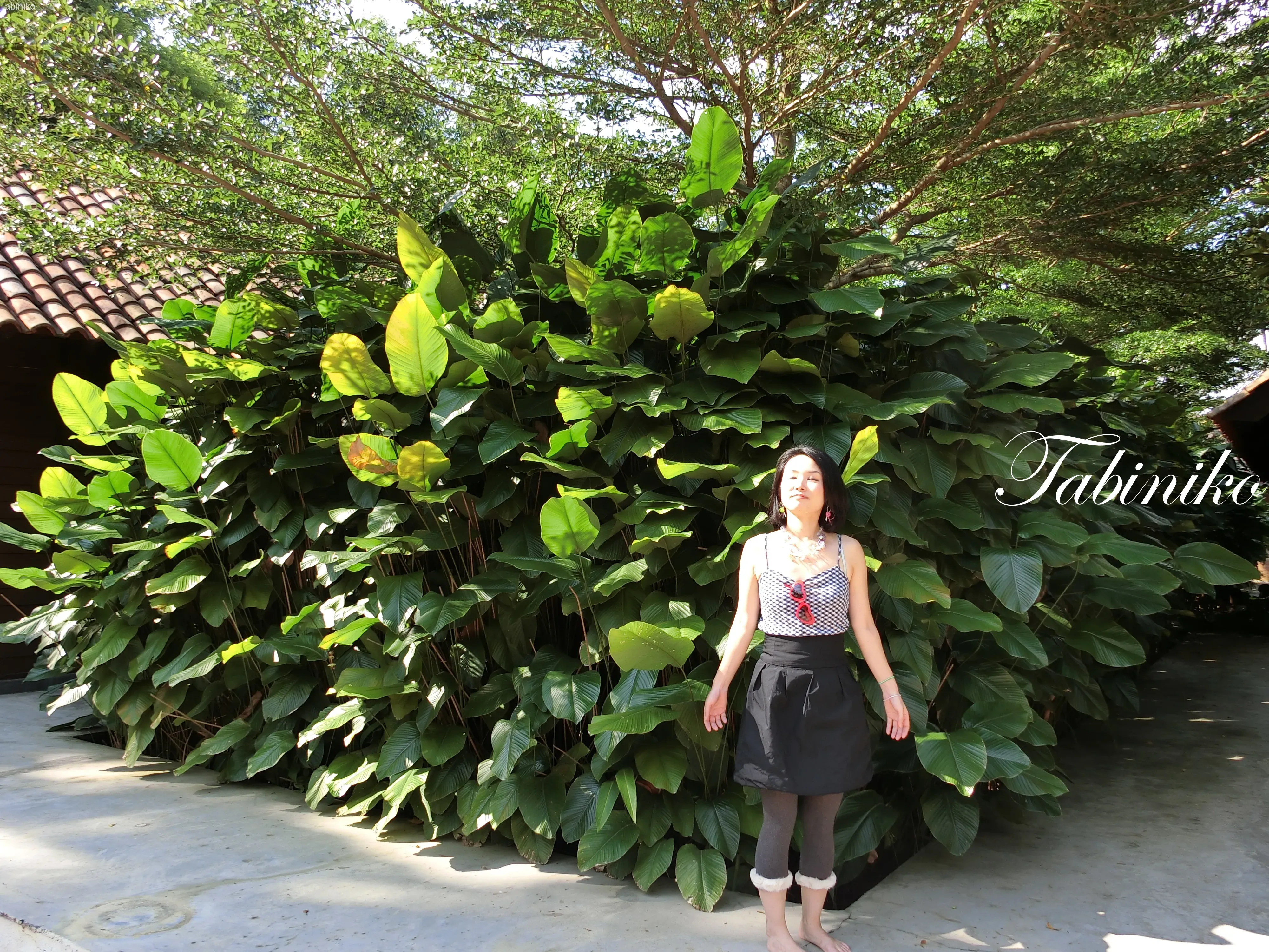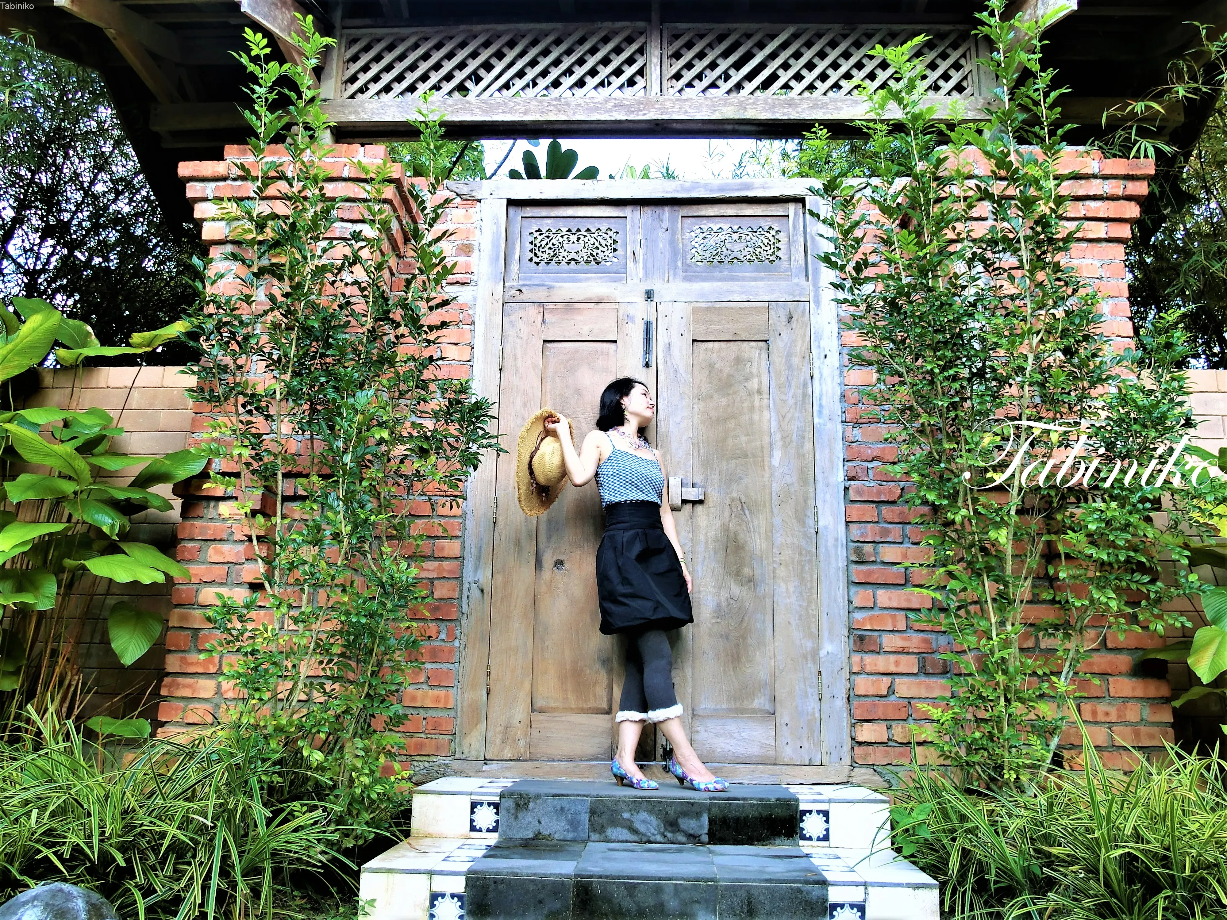 家の門はバリから運んだものなんだそうです。凄い!思わずカンボジアのアンコールワットに行った時に撮った写真のようなポーズをしてみました!この門は超いいショットが取れるんですよ! 是非是非やってみてみて! この扉を超えれば異空間。